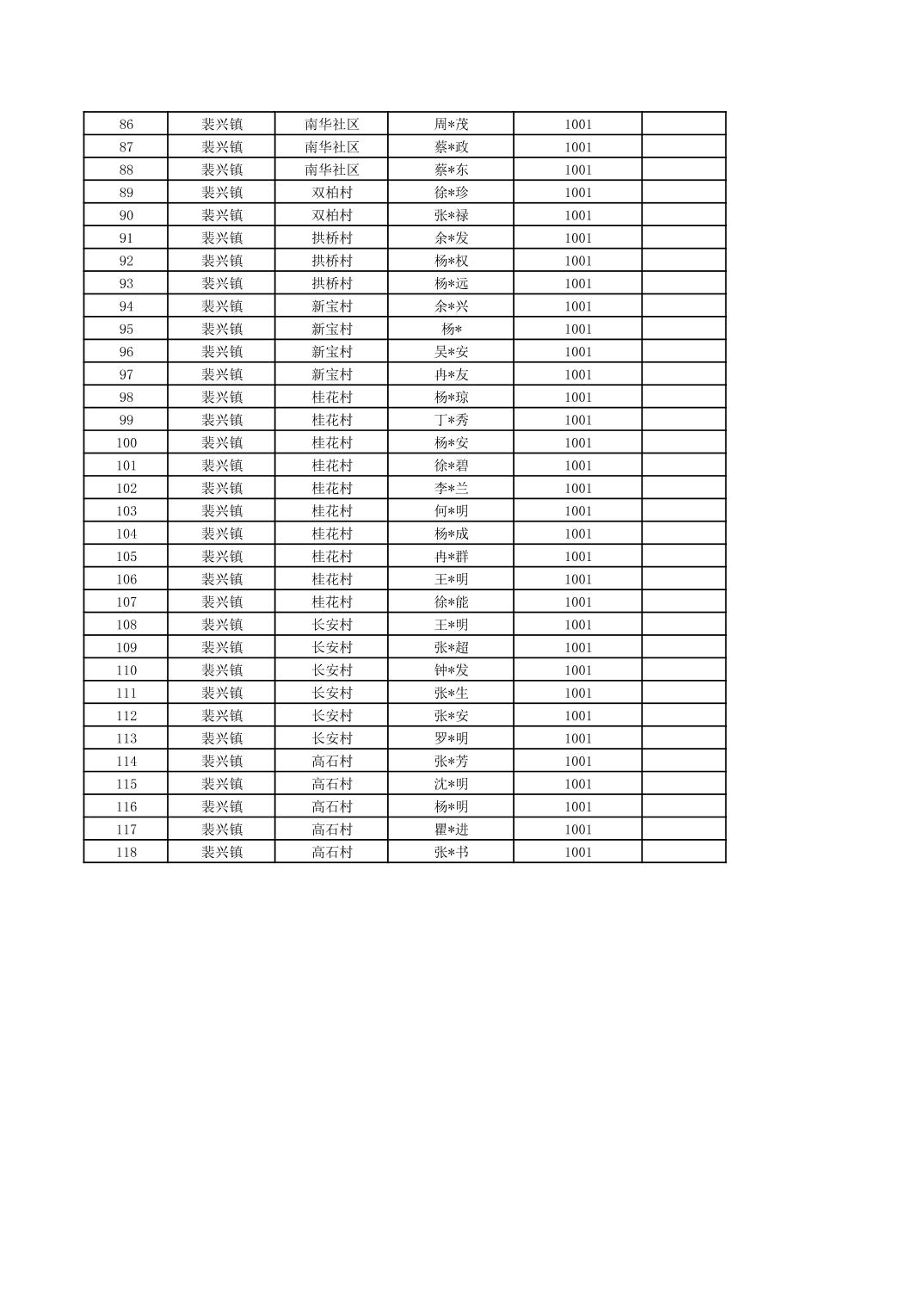 2025年9月裴兴镇城乡特困供养人员信息公示