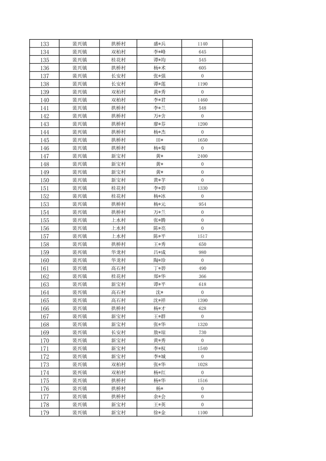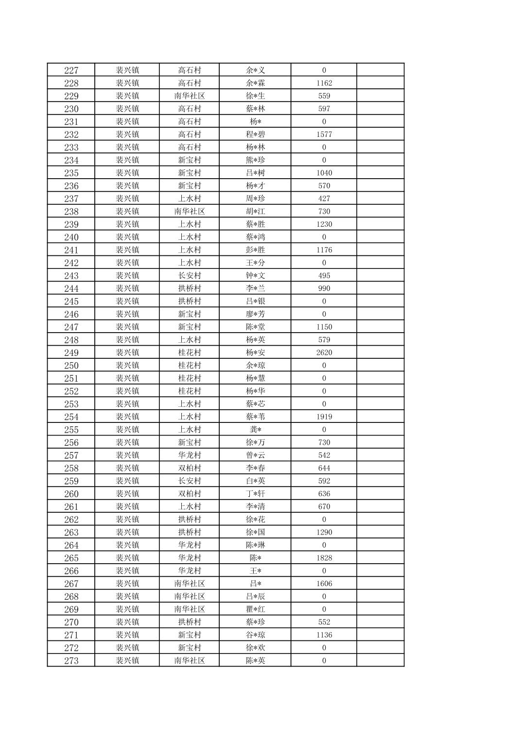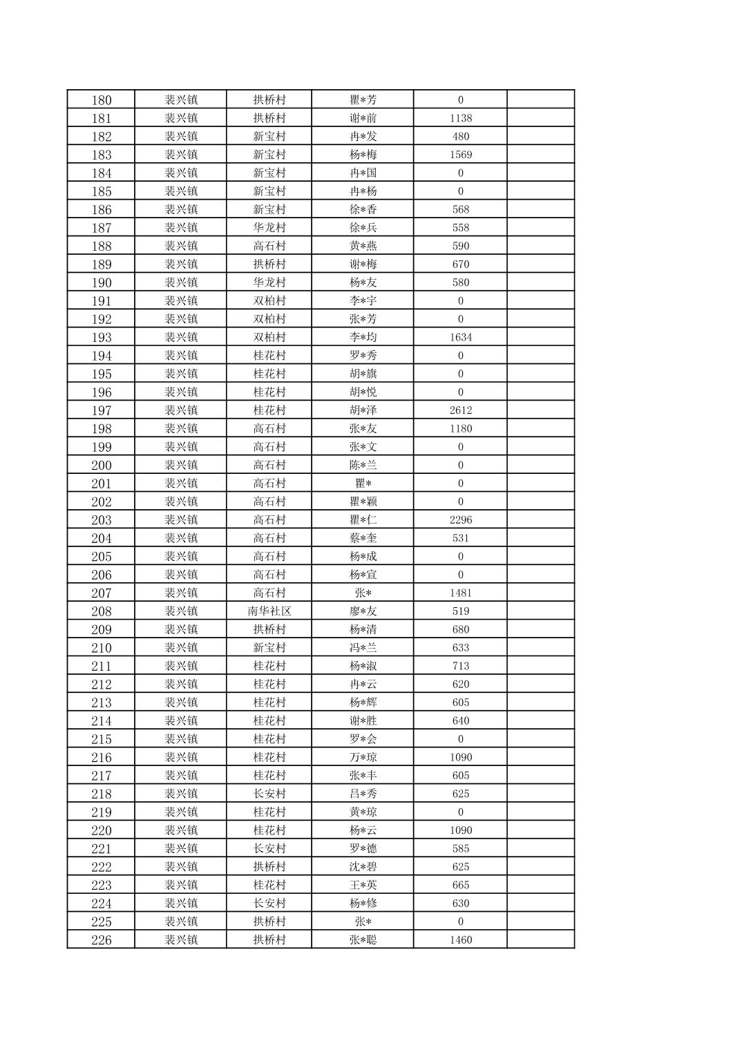 2026年1月裴兴镇城乡低保对象信息公示