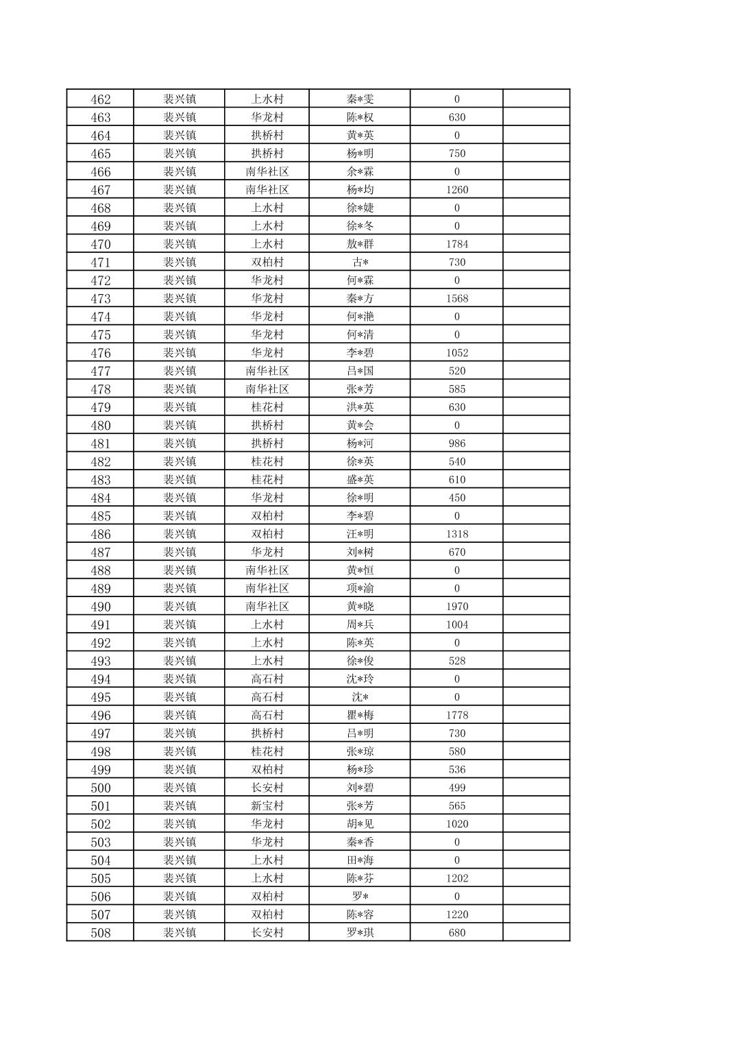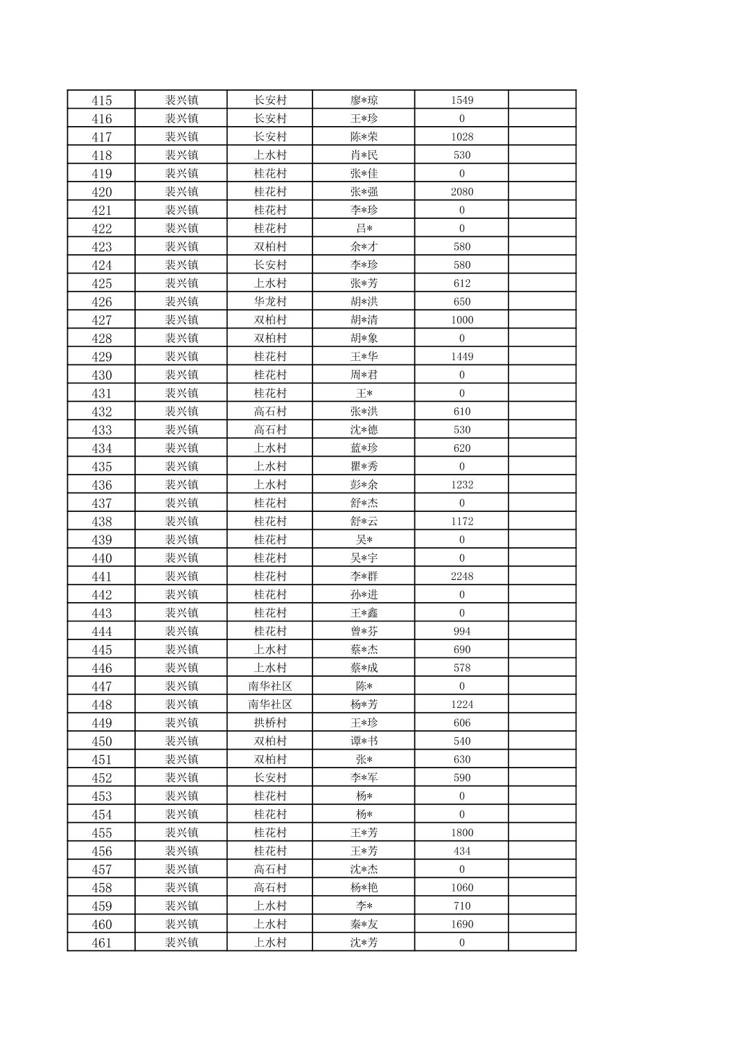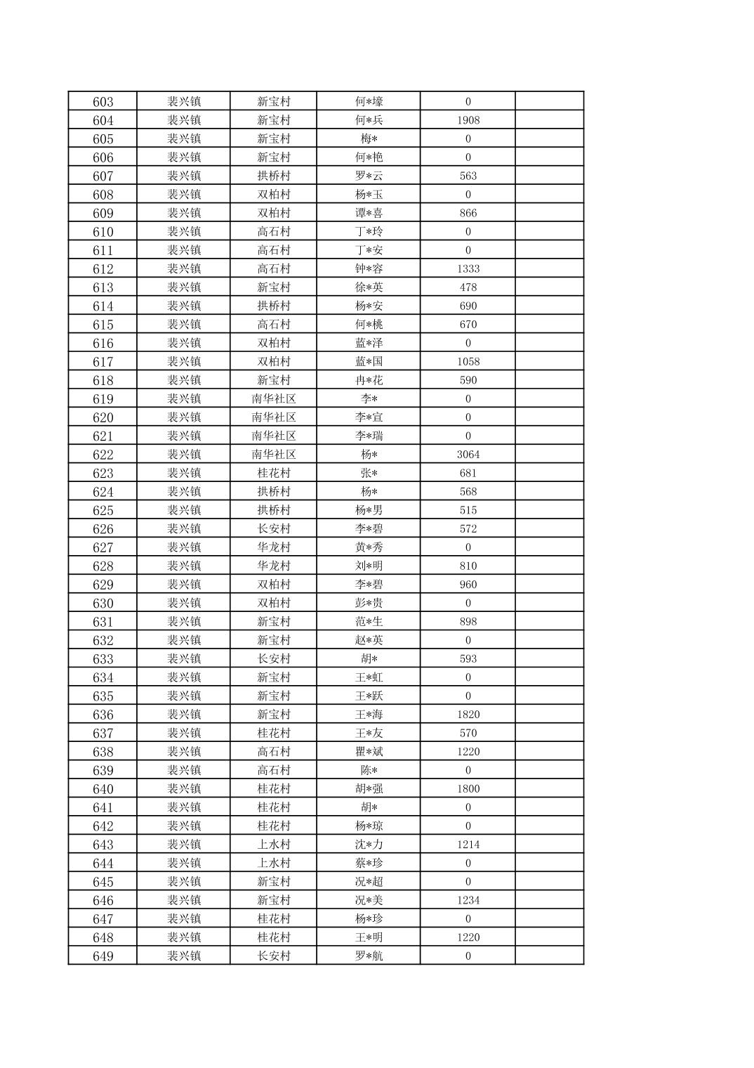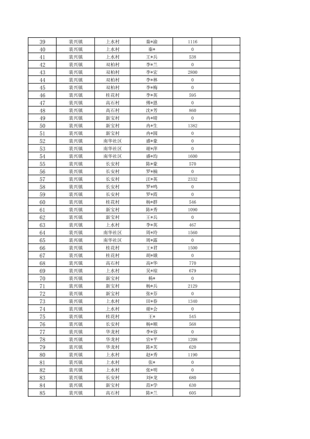 2026年1月裴兴镇城乡低保对象信息公示