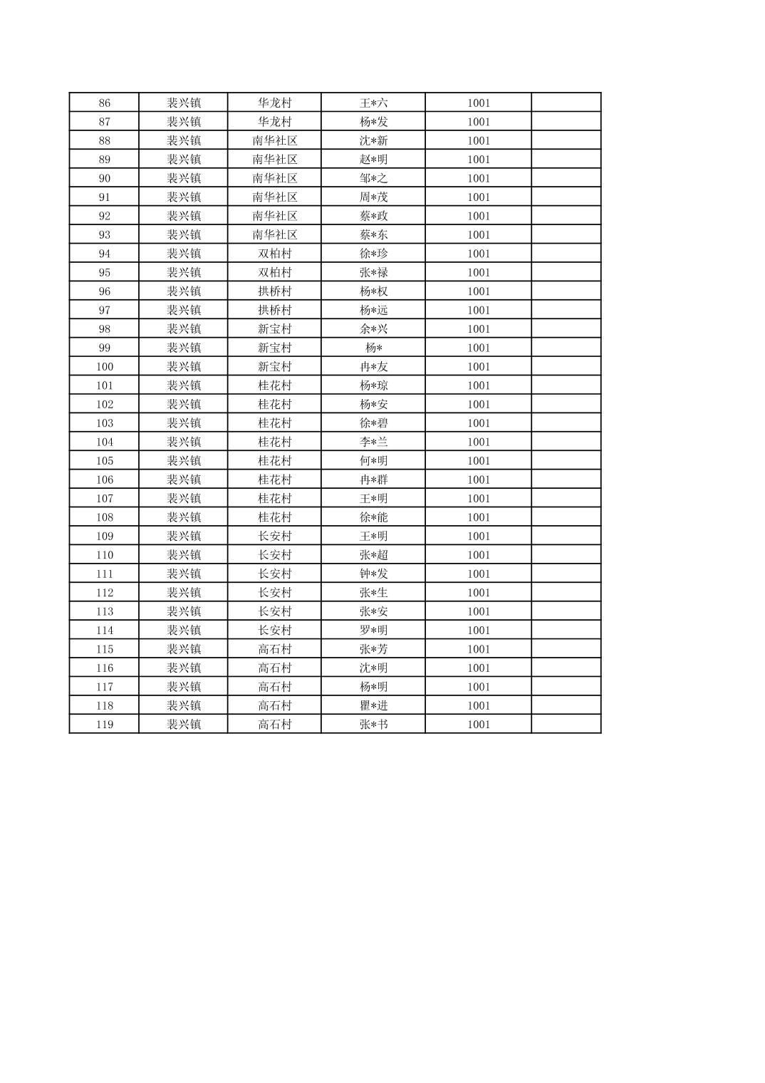 2026年1月裴兴镇城乡特困供养人员信息公示.xls
