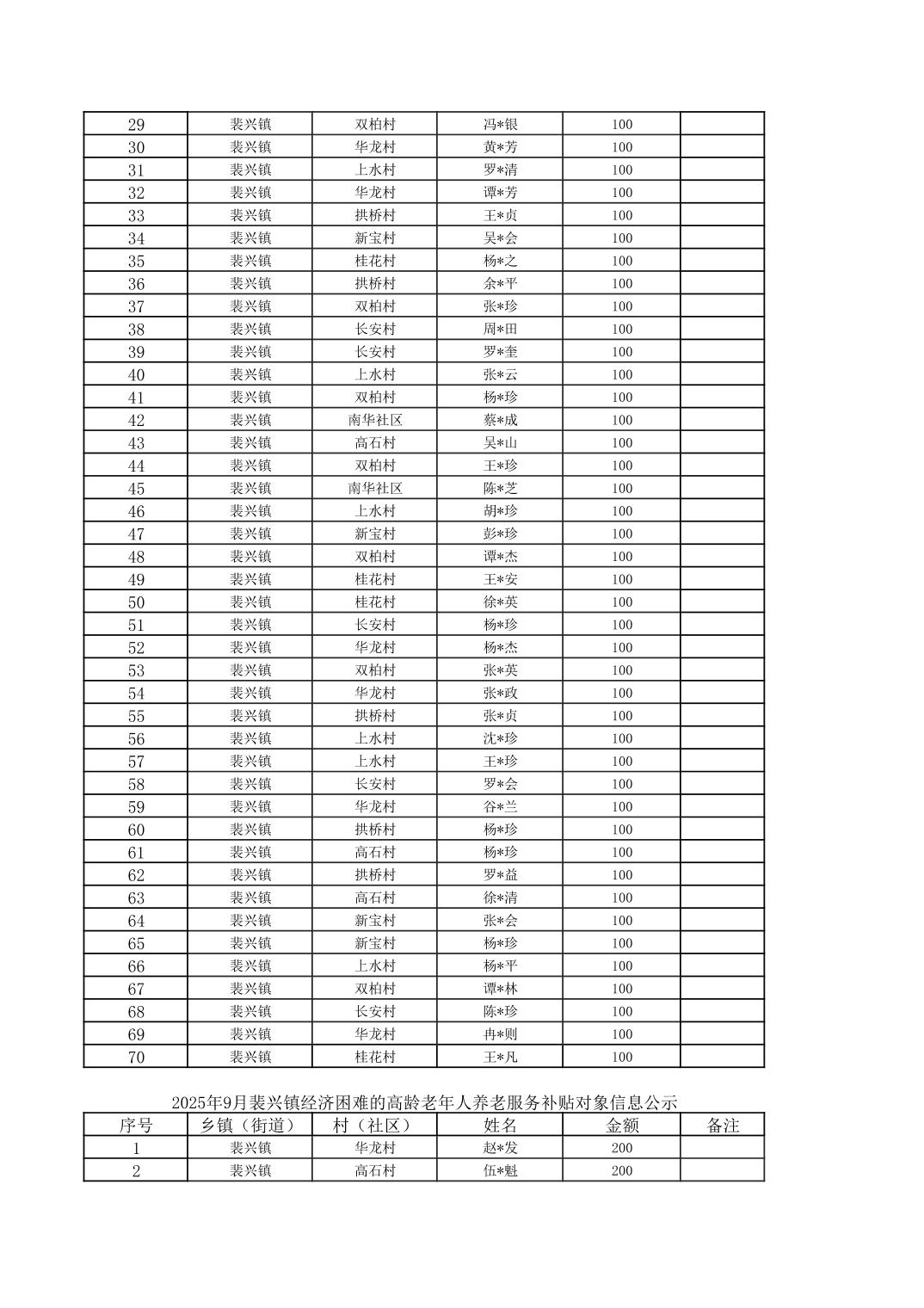 2025年9月裴兴镇高龄三项对象信息公示.xls