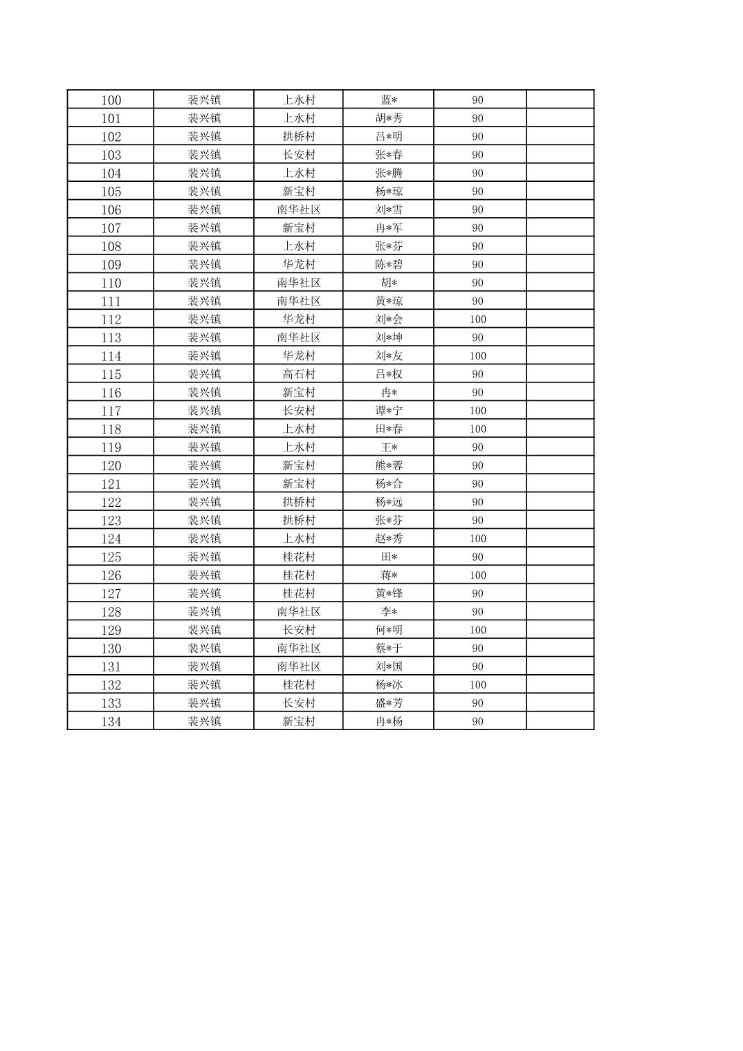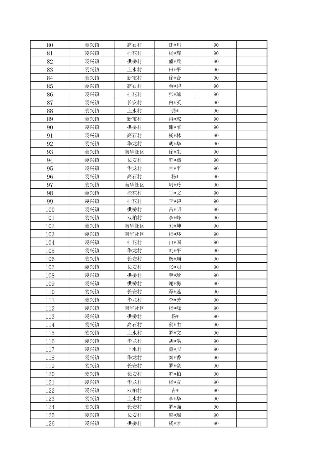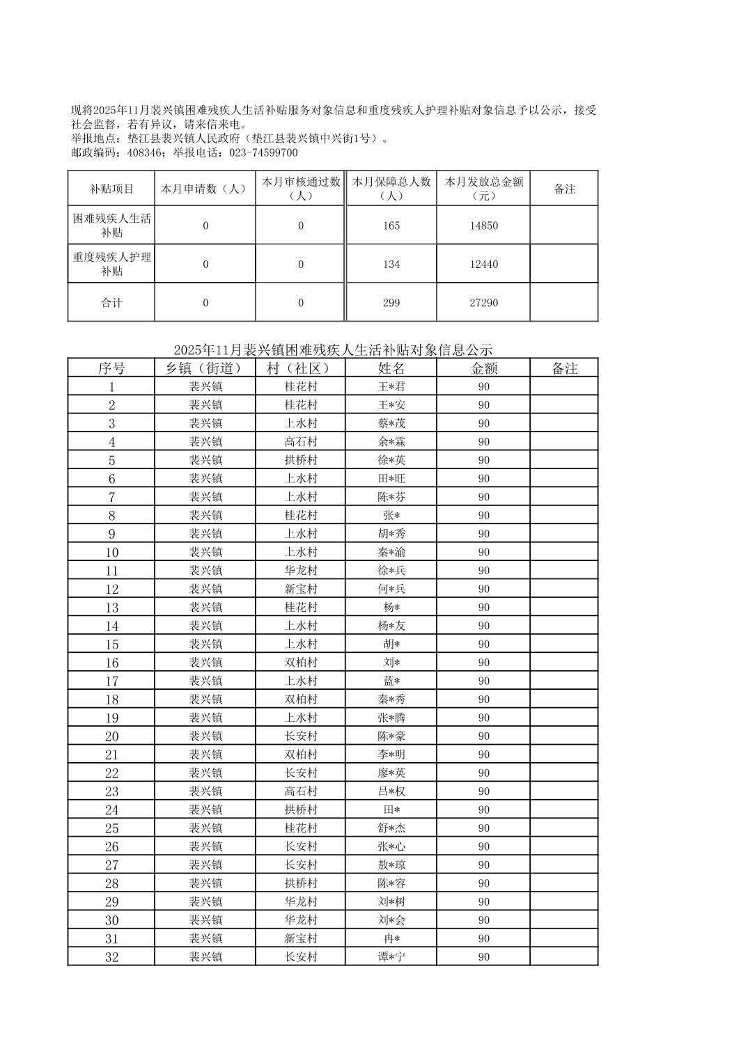 2025年11月裴兴镇残疾人两项补贴对象公示