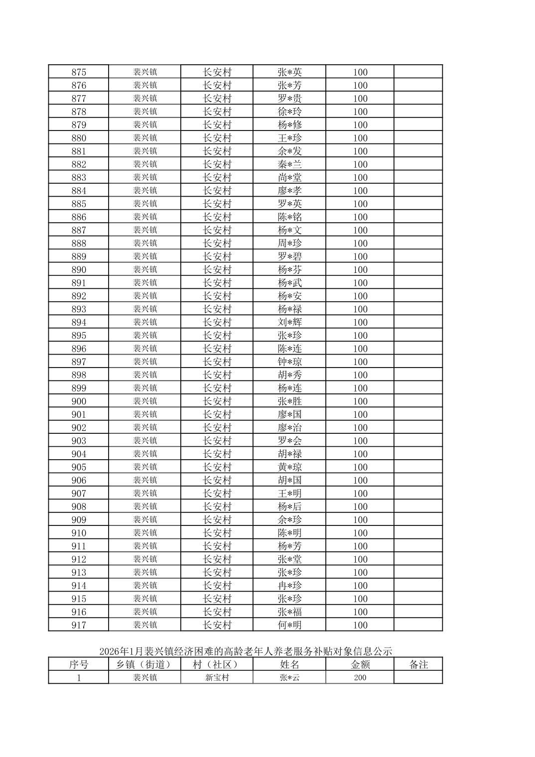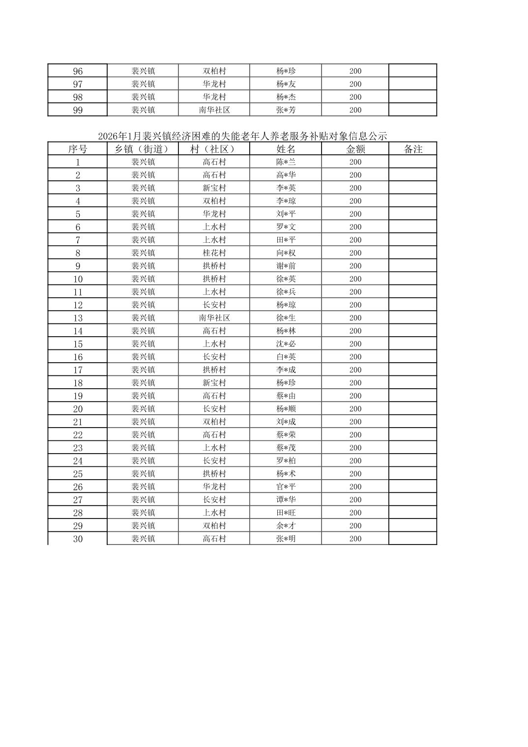 2026年1月裴兴镇高龄三项对象信息公示.xls