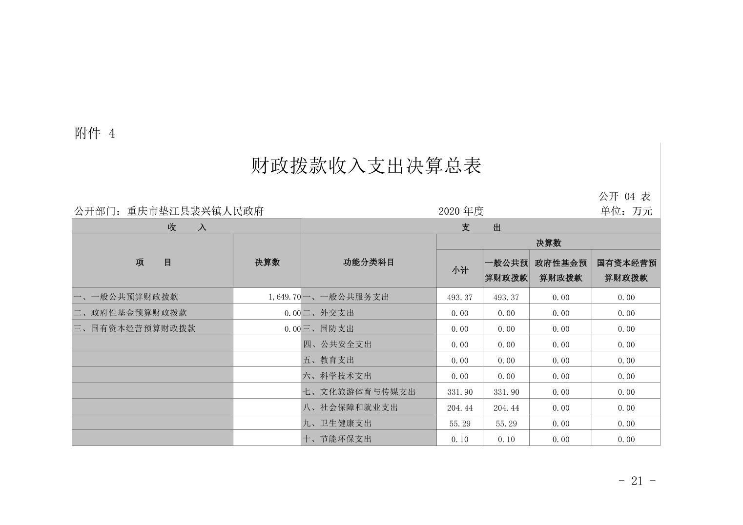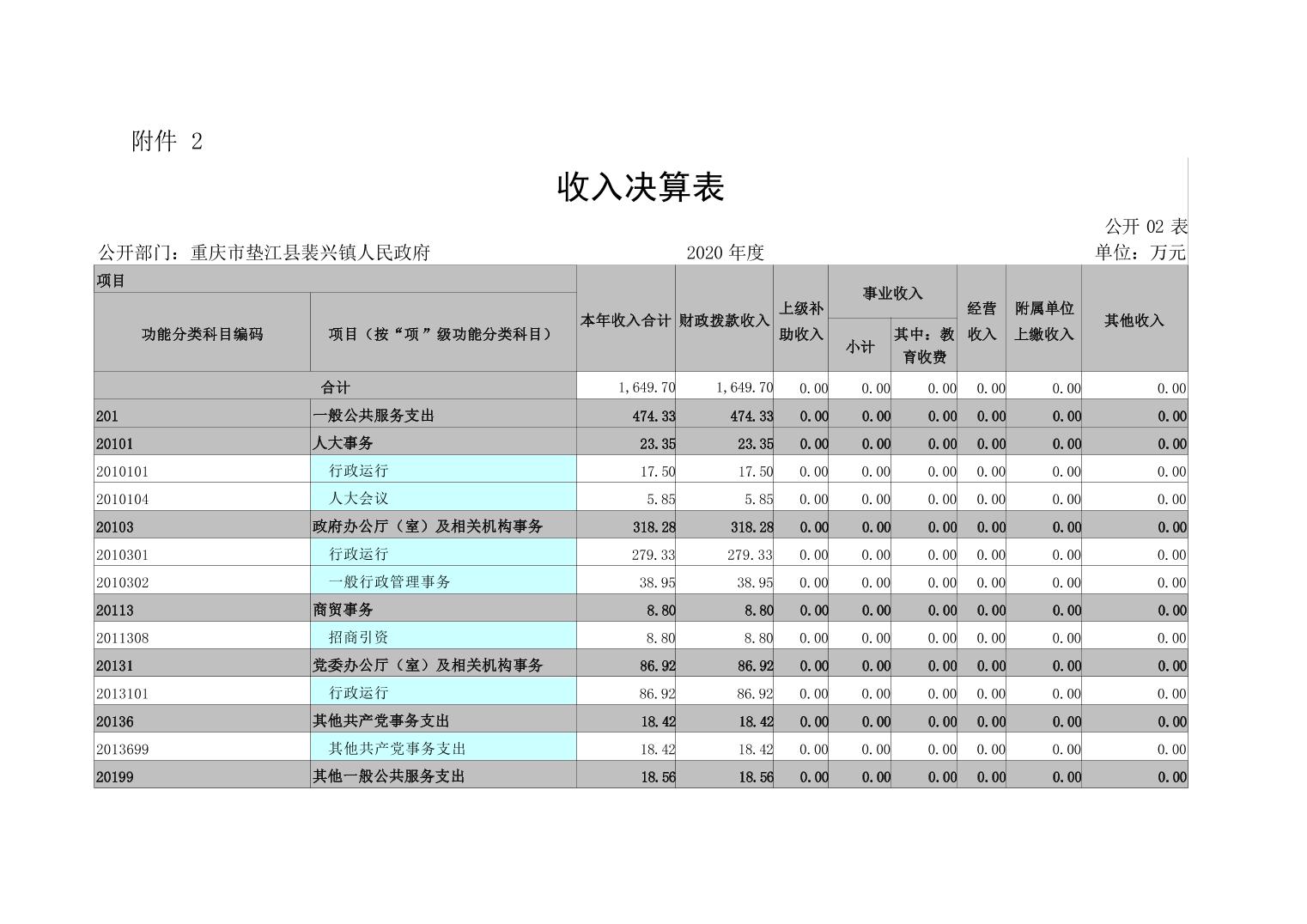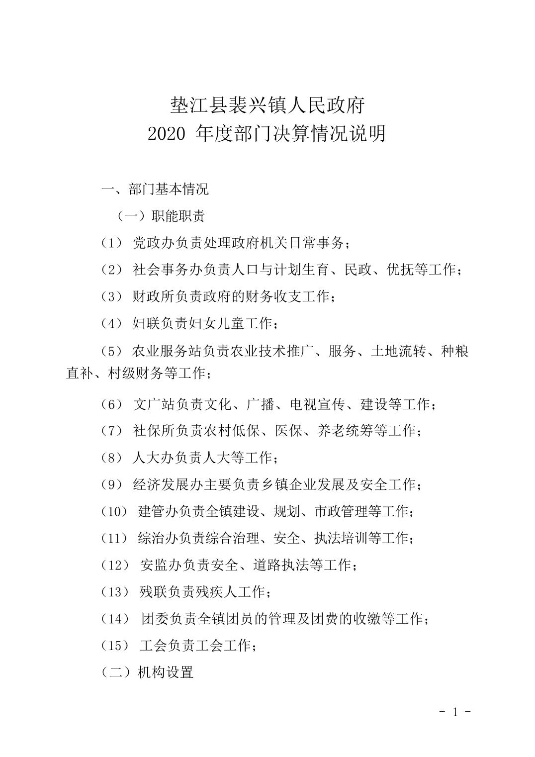 重庆市垫江县裴兴镇人民政府2020年度部门决算情况说明