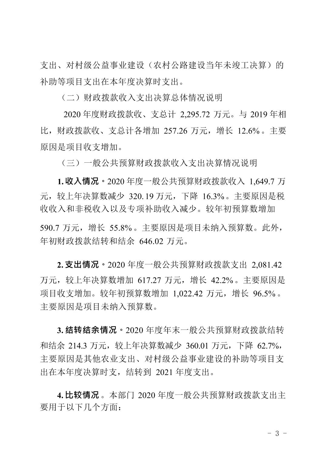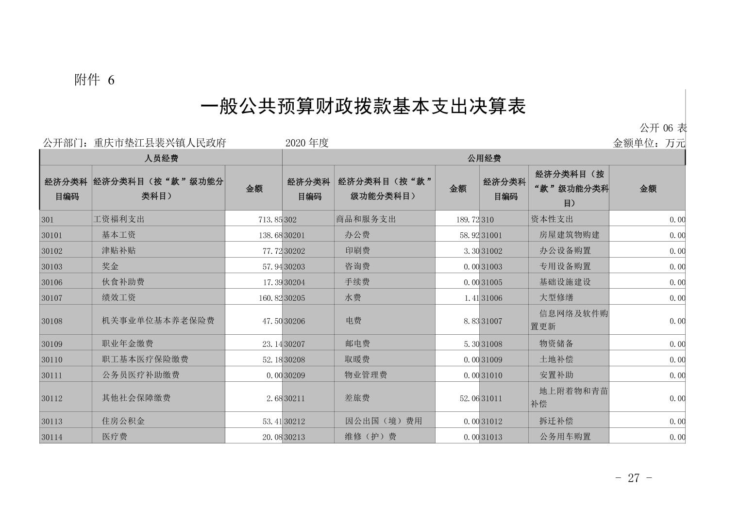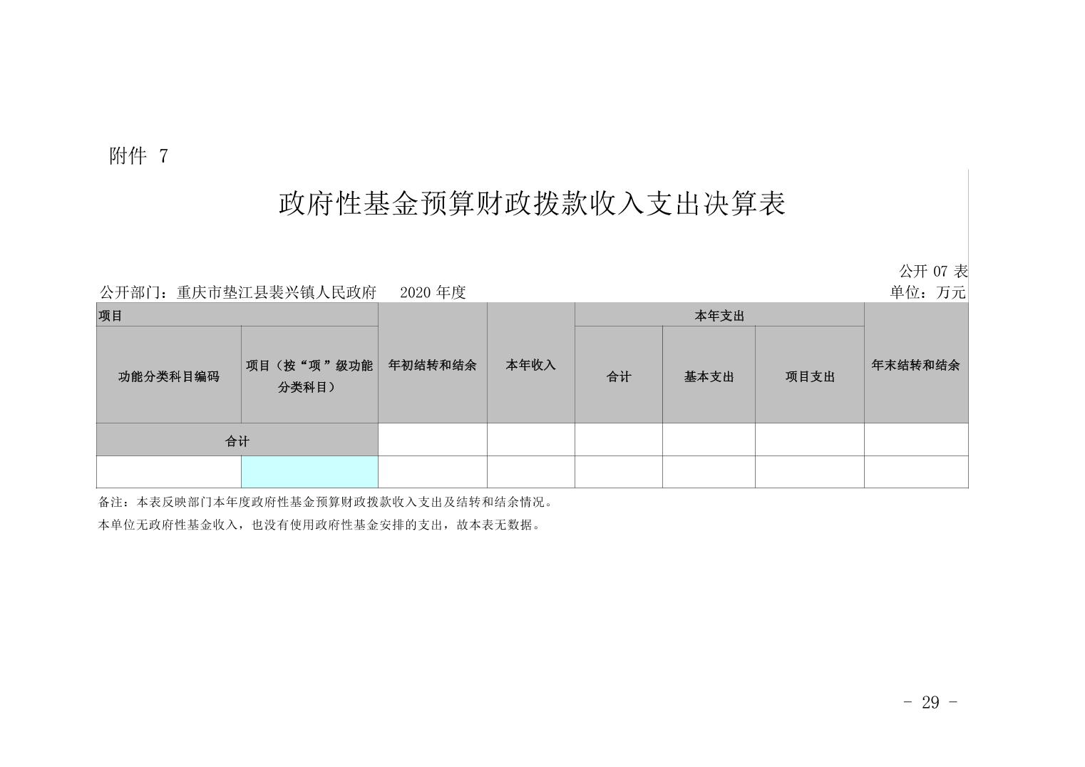 重庆市垫江县裴兴镇人民政府2020年度部门决算情况说明