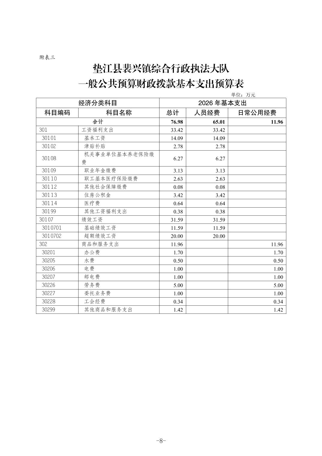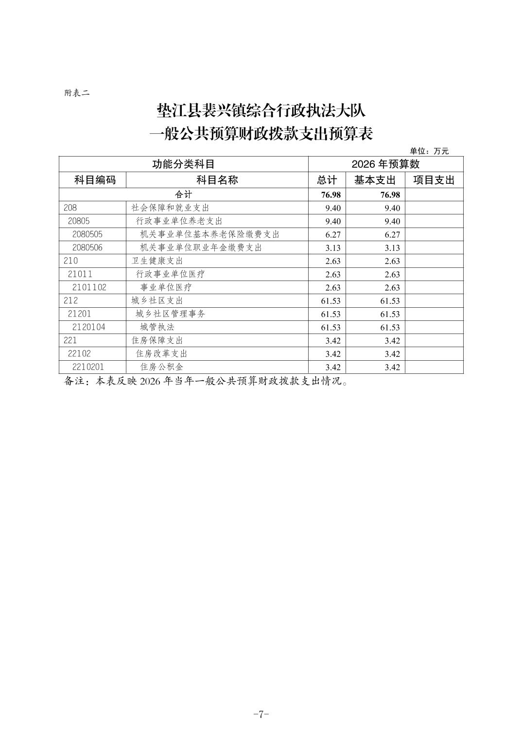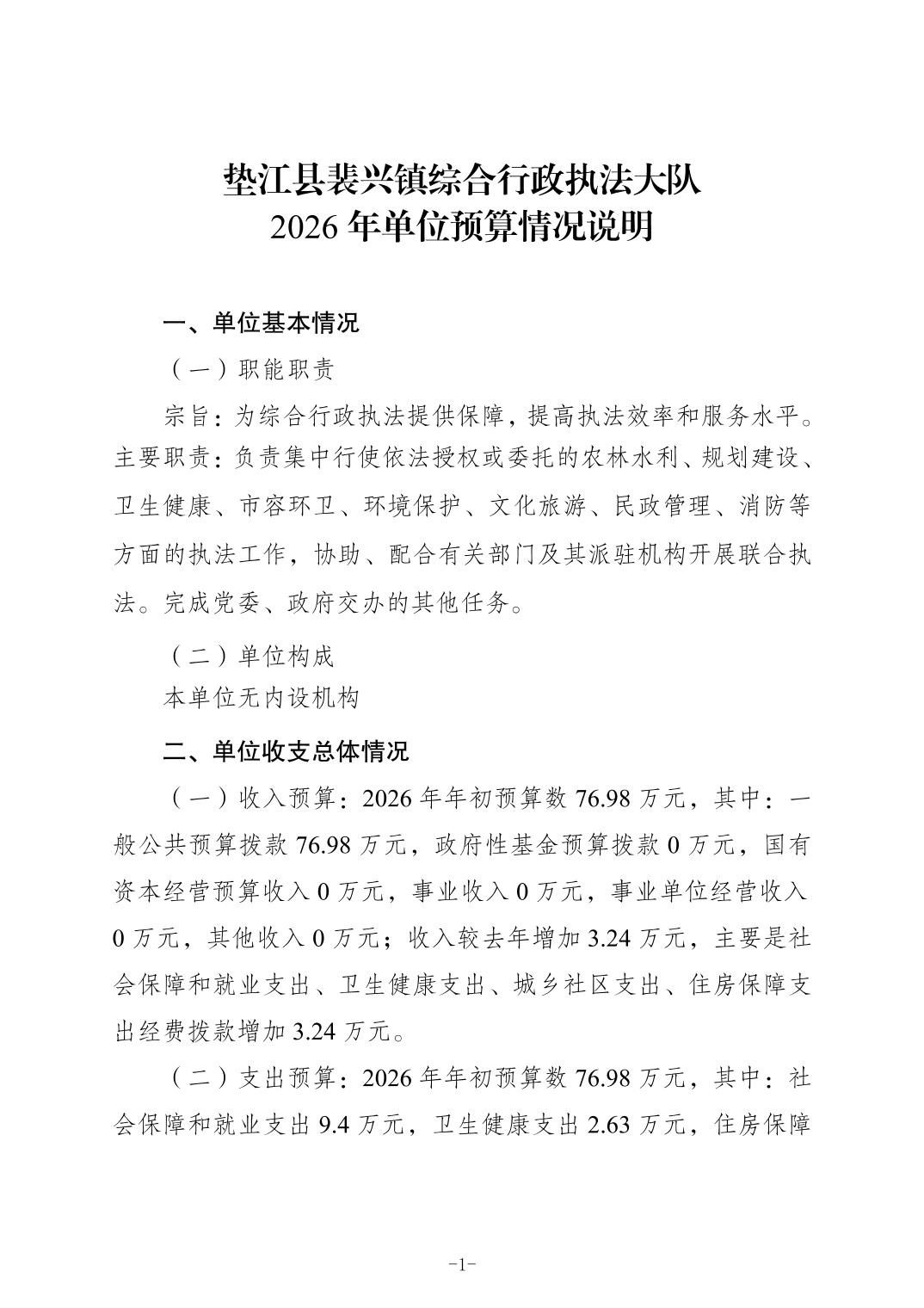 垫江县裴兴镇综合行政执法大队2026年单位预算情况说明.doc
