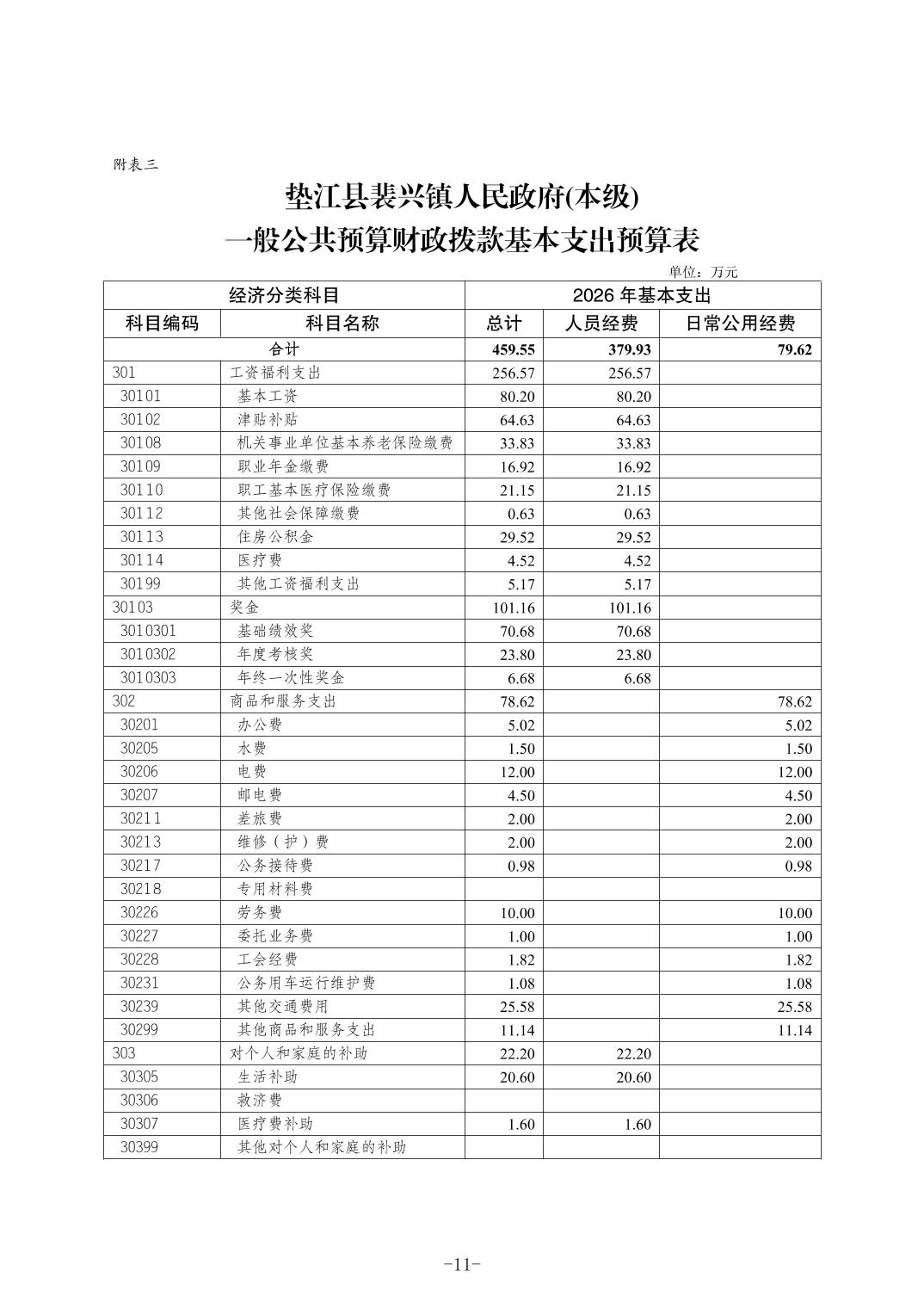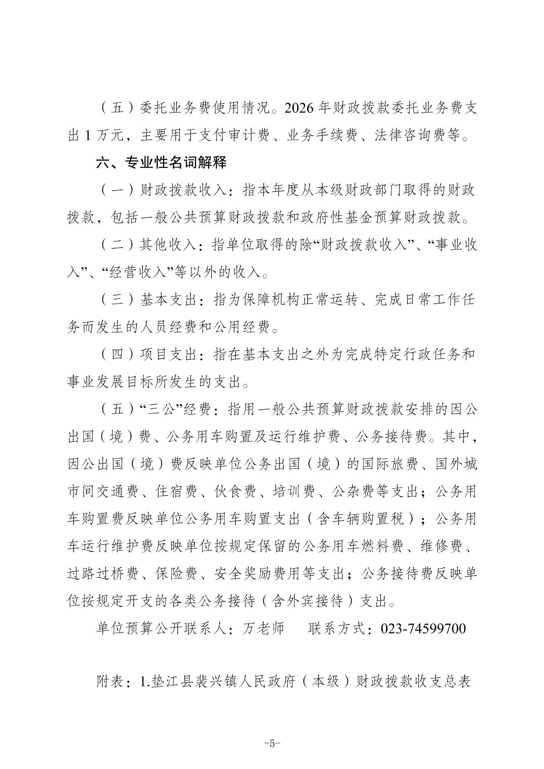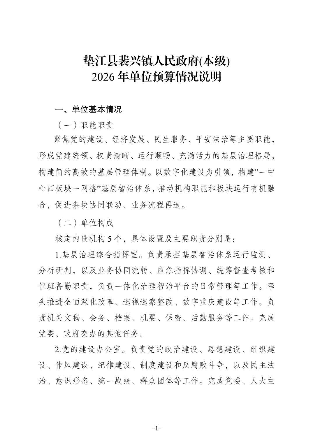 垫江县裴兴镇人民政府(本级)2026年单位预算情况说明(1).doc
