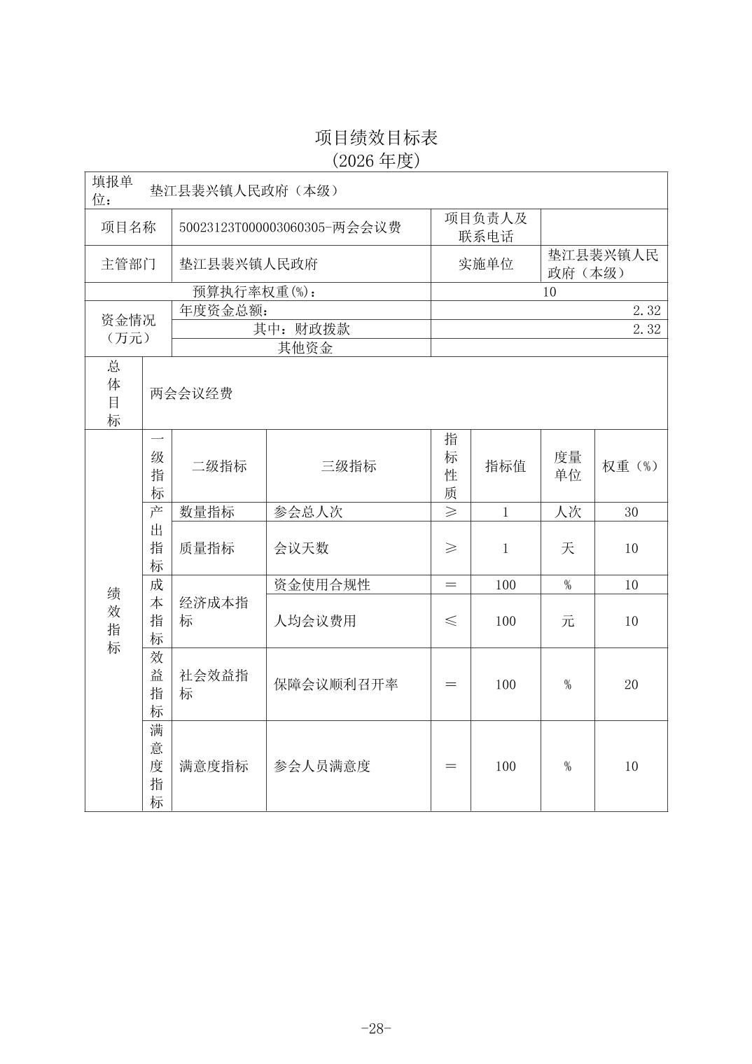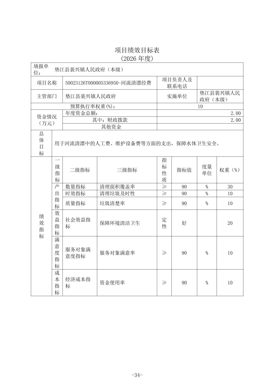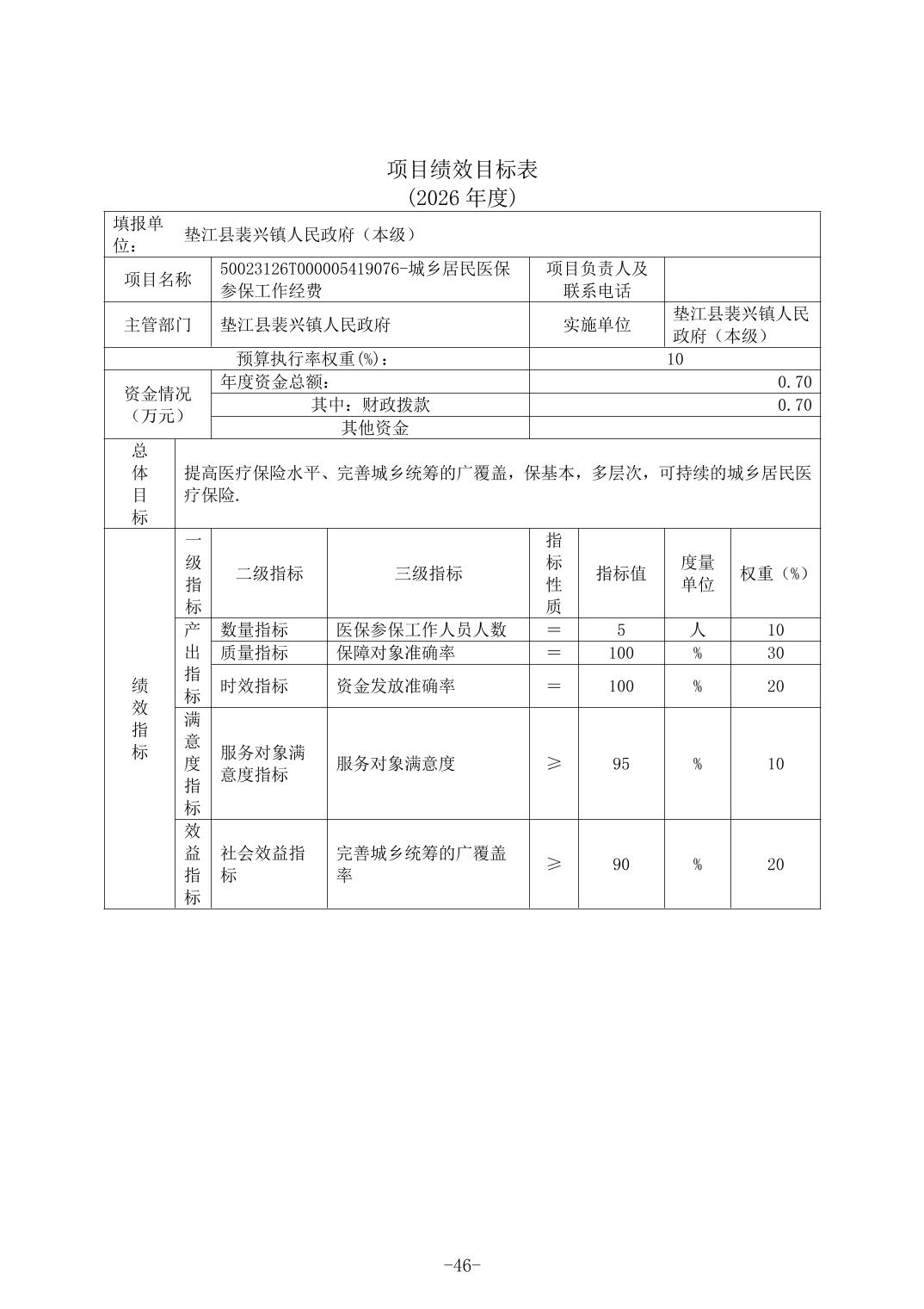 垫江县裴兴镇人民政府(本级)2026年单位预算情况说明(1).doc