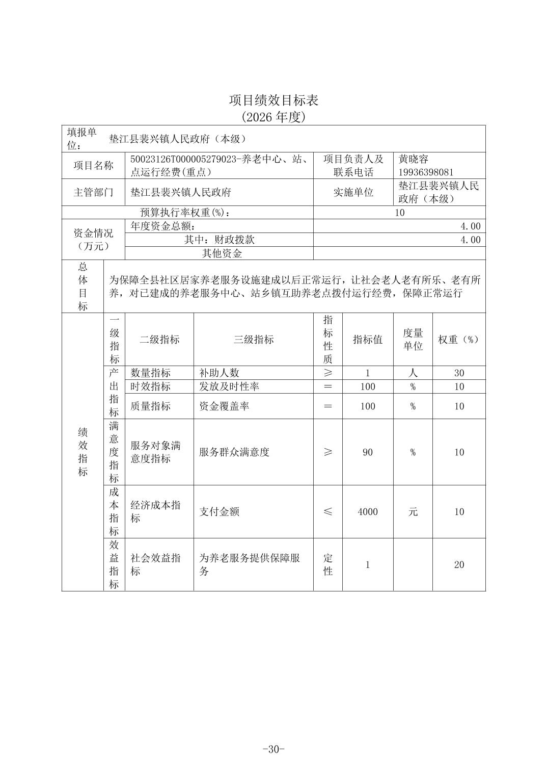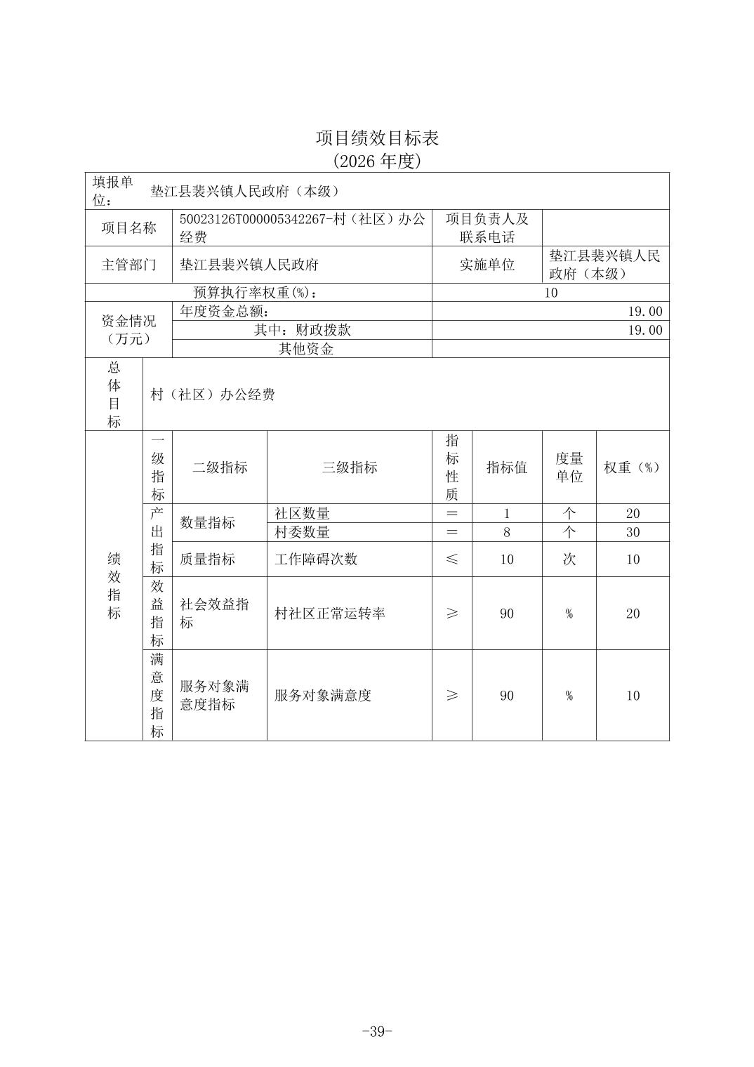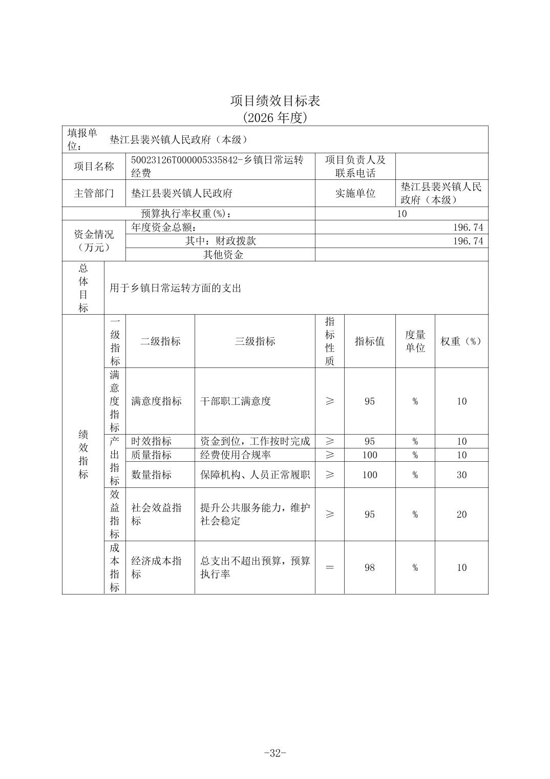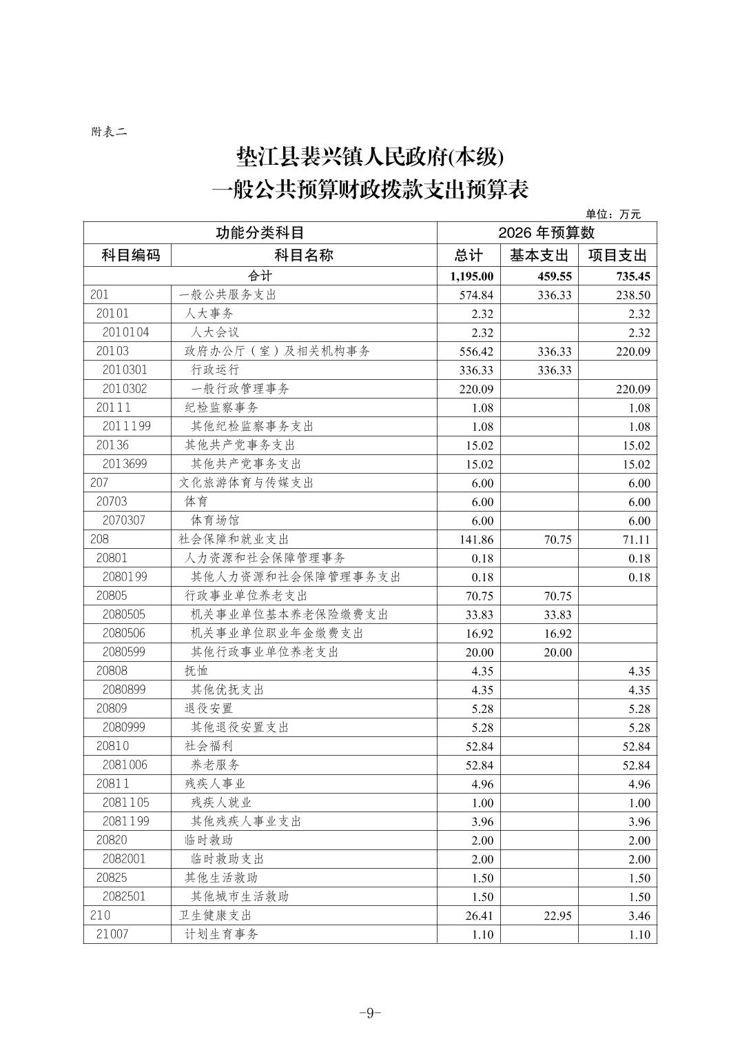 垫江县裴兴镇人民政府(本级)2026年单位预算情况说明