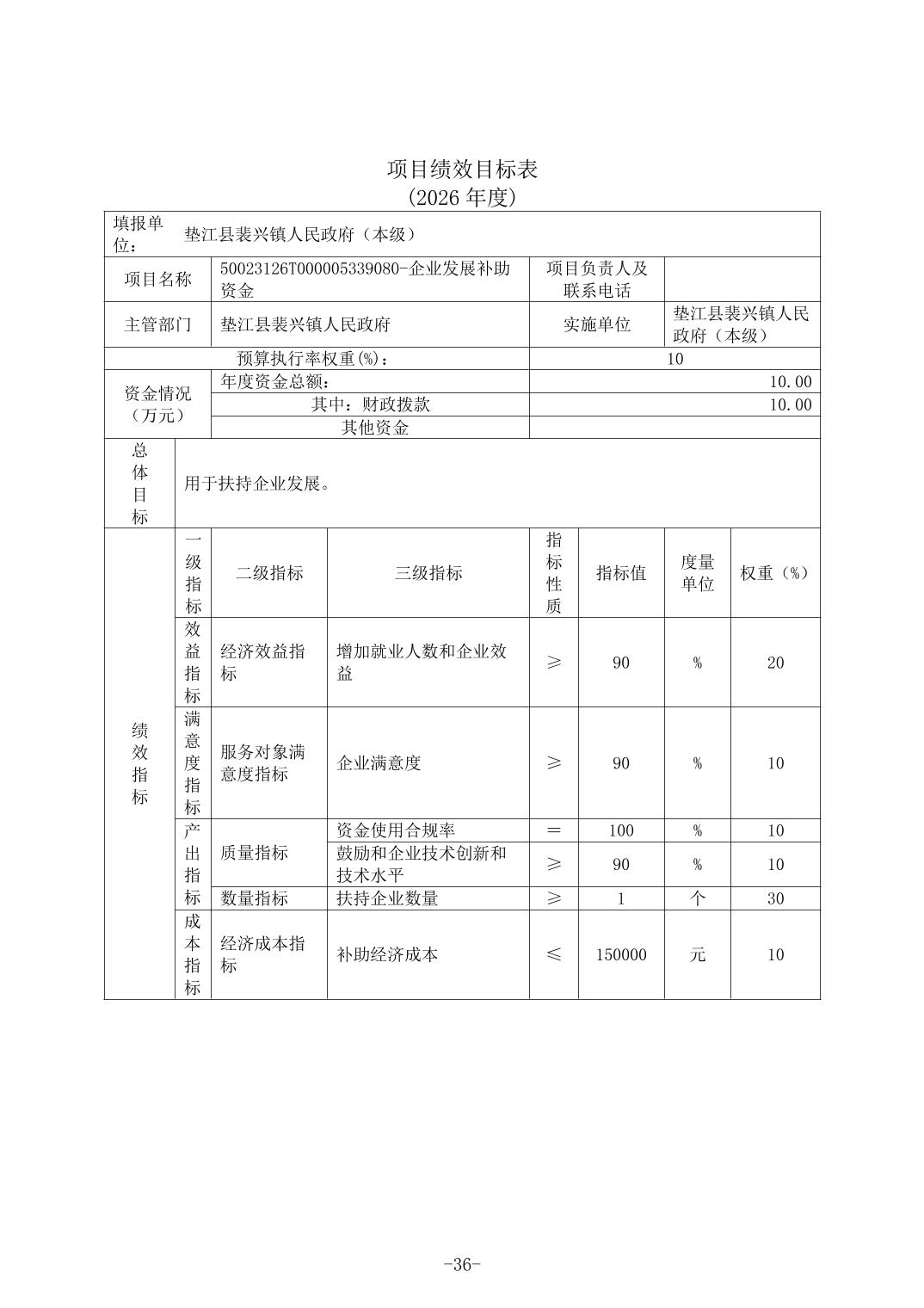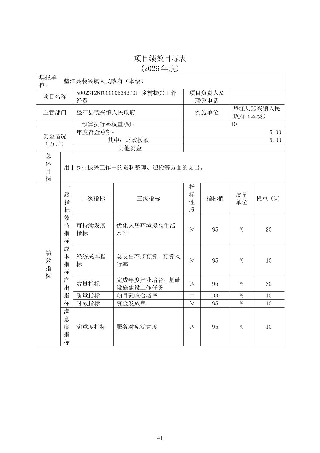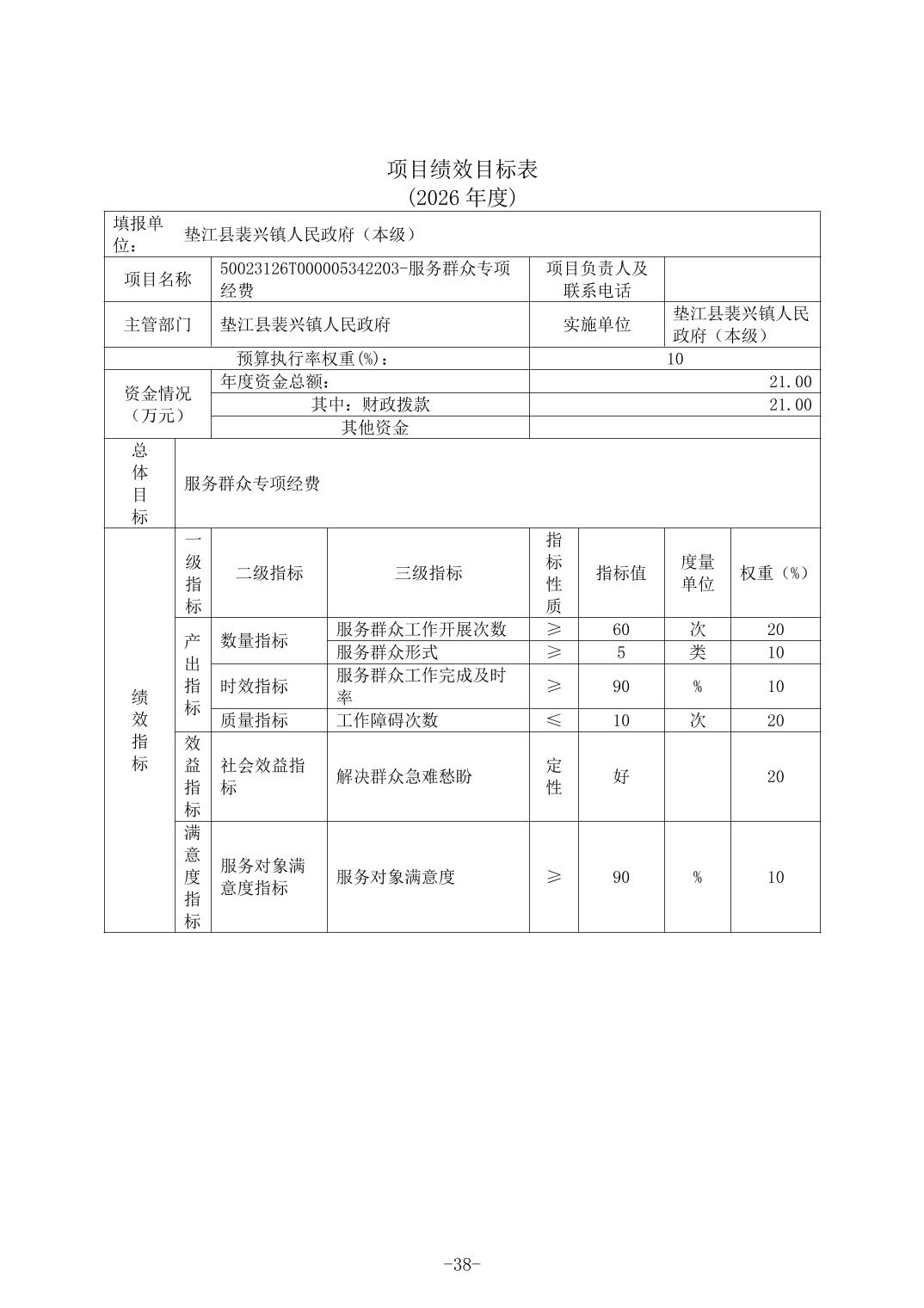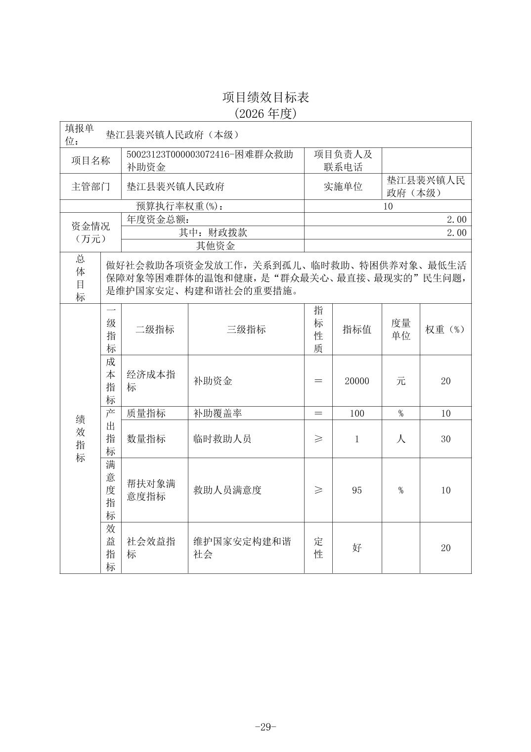 垫江县裴兴镇人民政府(本级)2026年单位预算情况说明