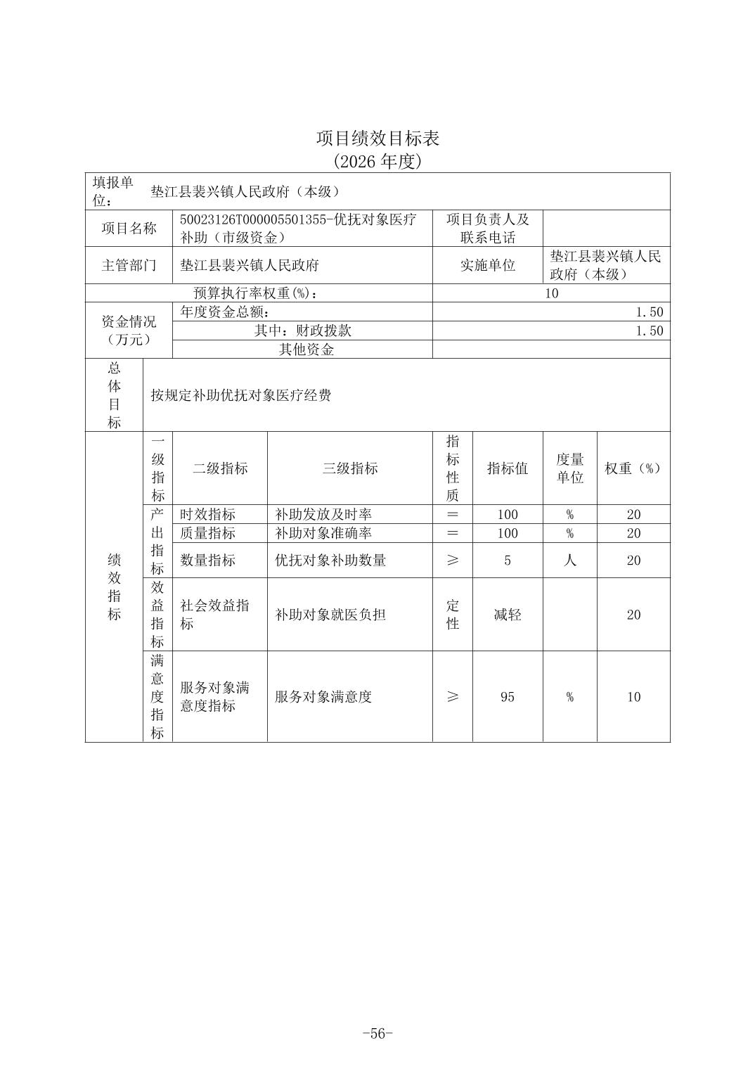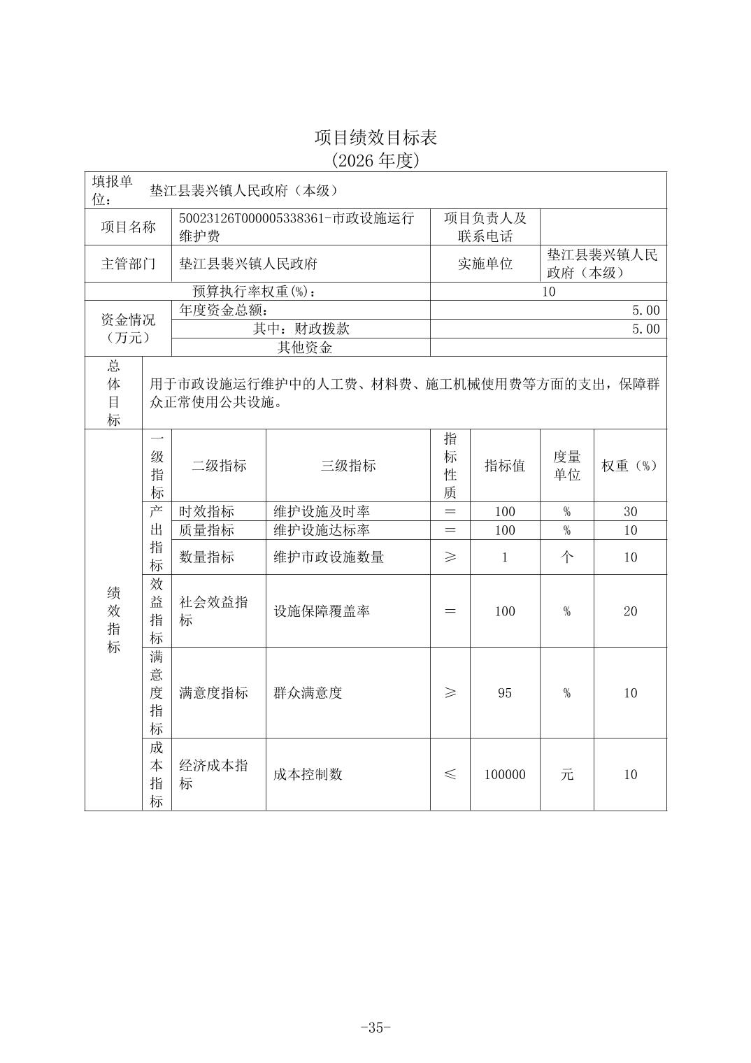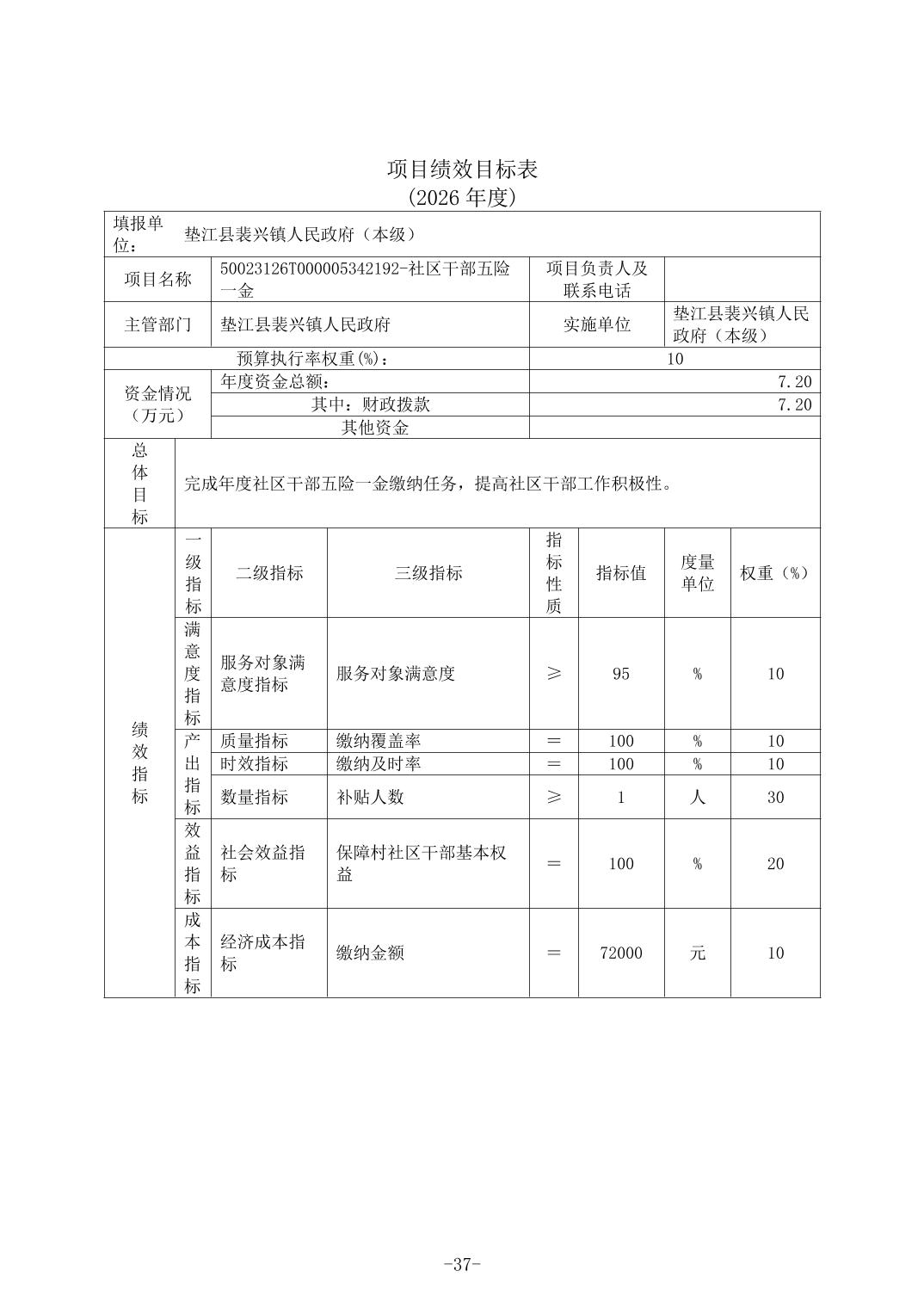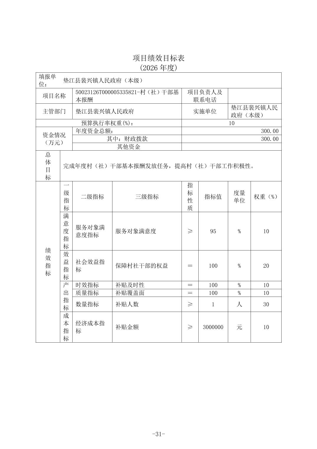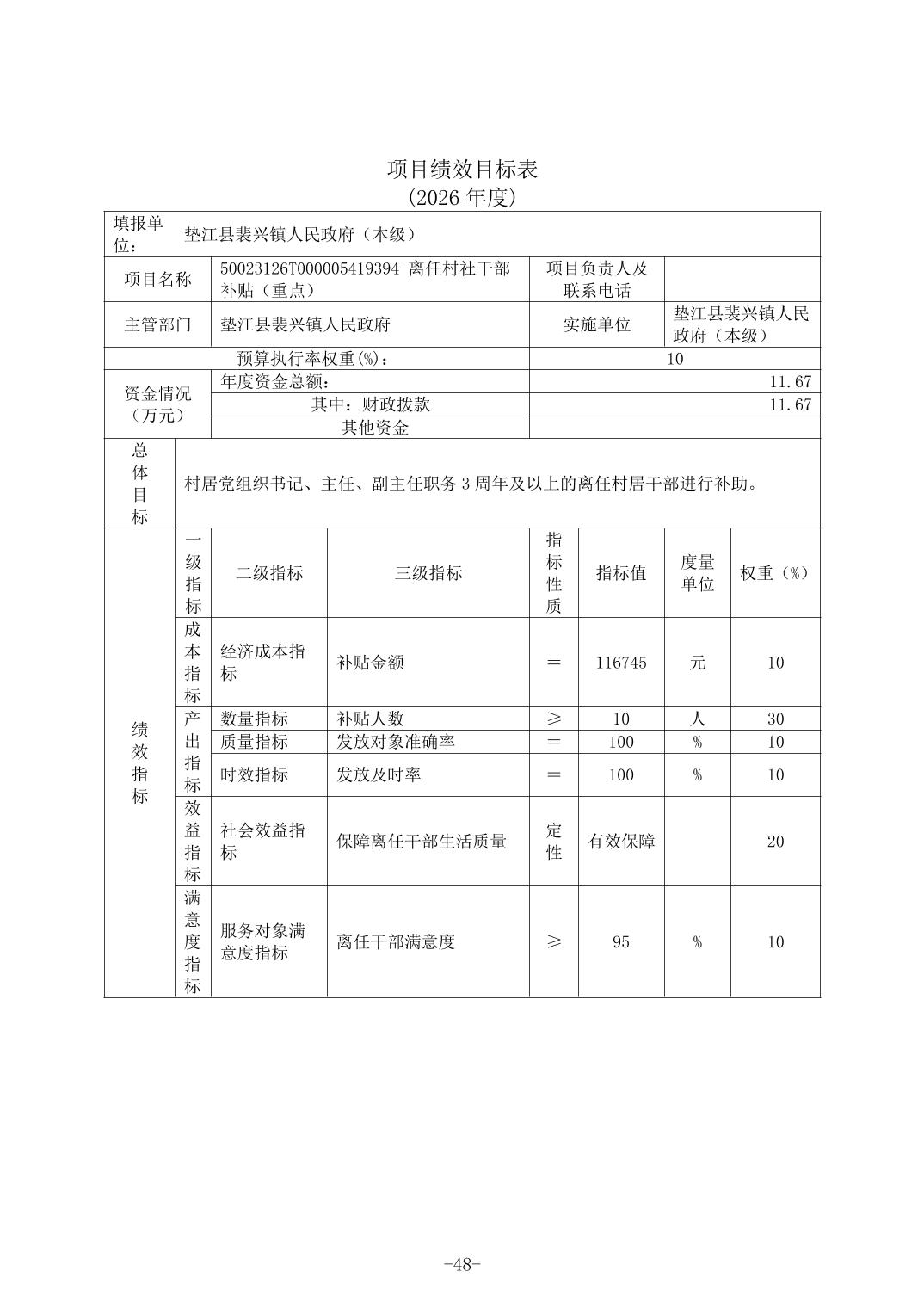 垫江县裴兴镇人民政府(本级)2026年单位预算情况说明