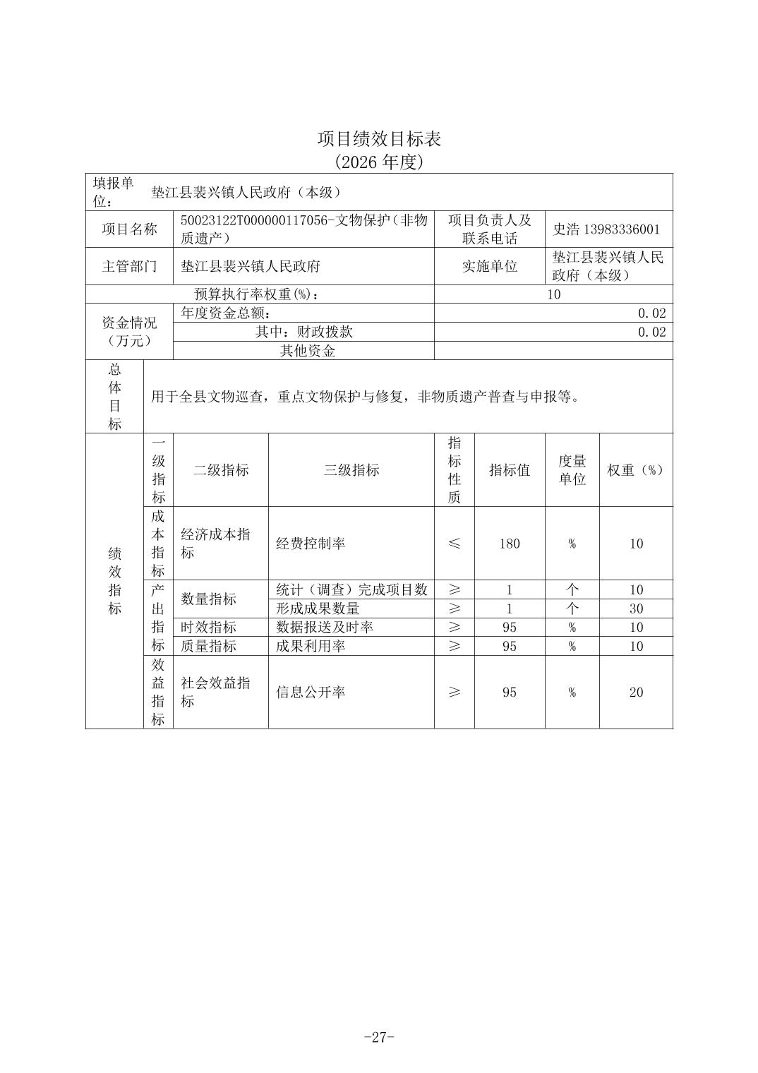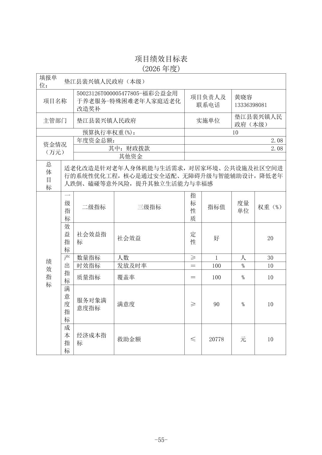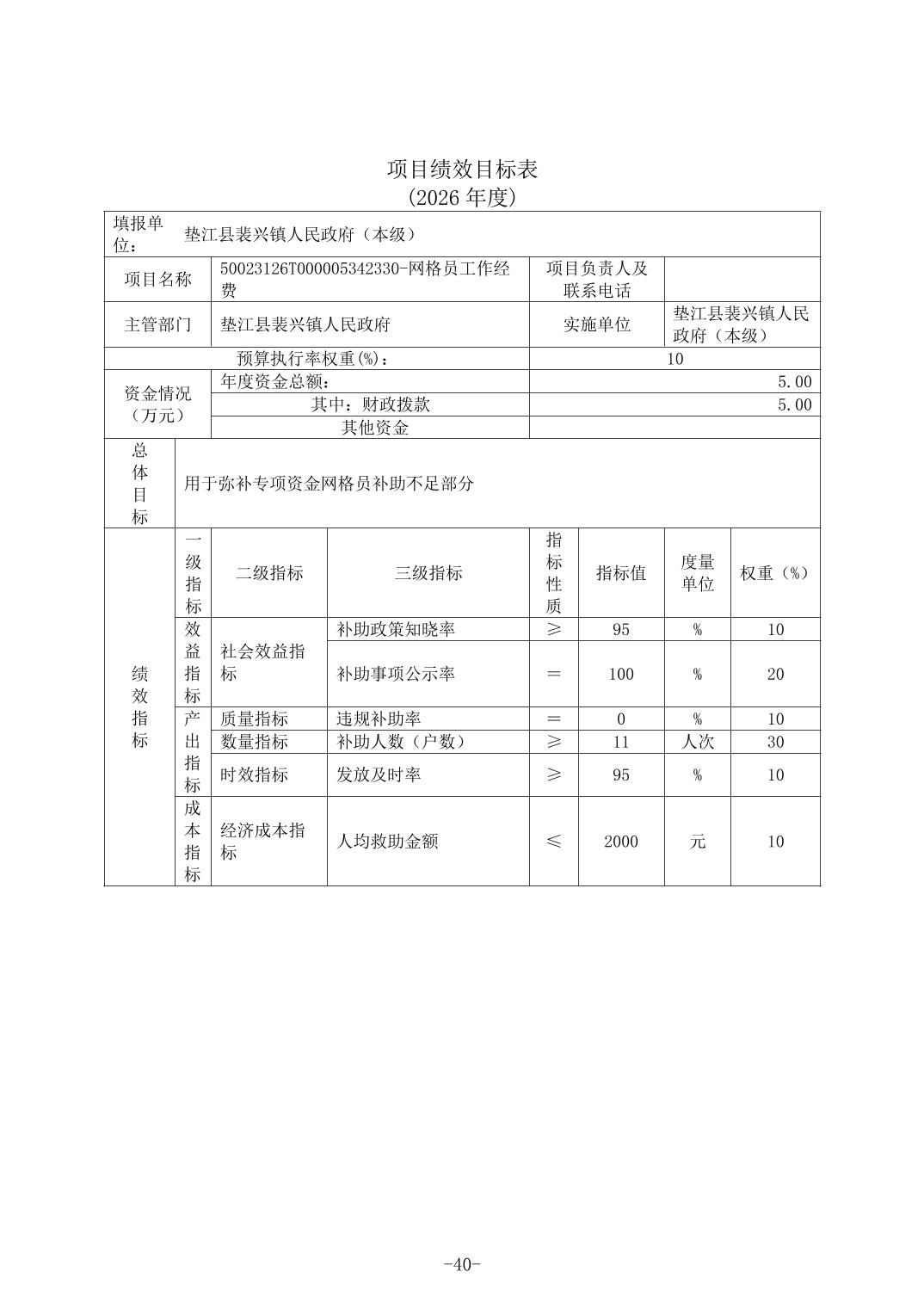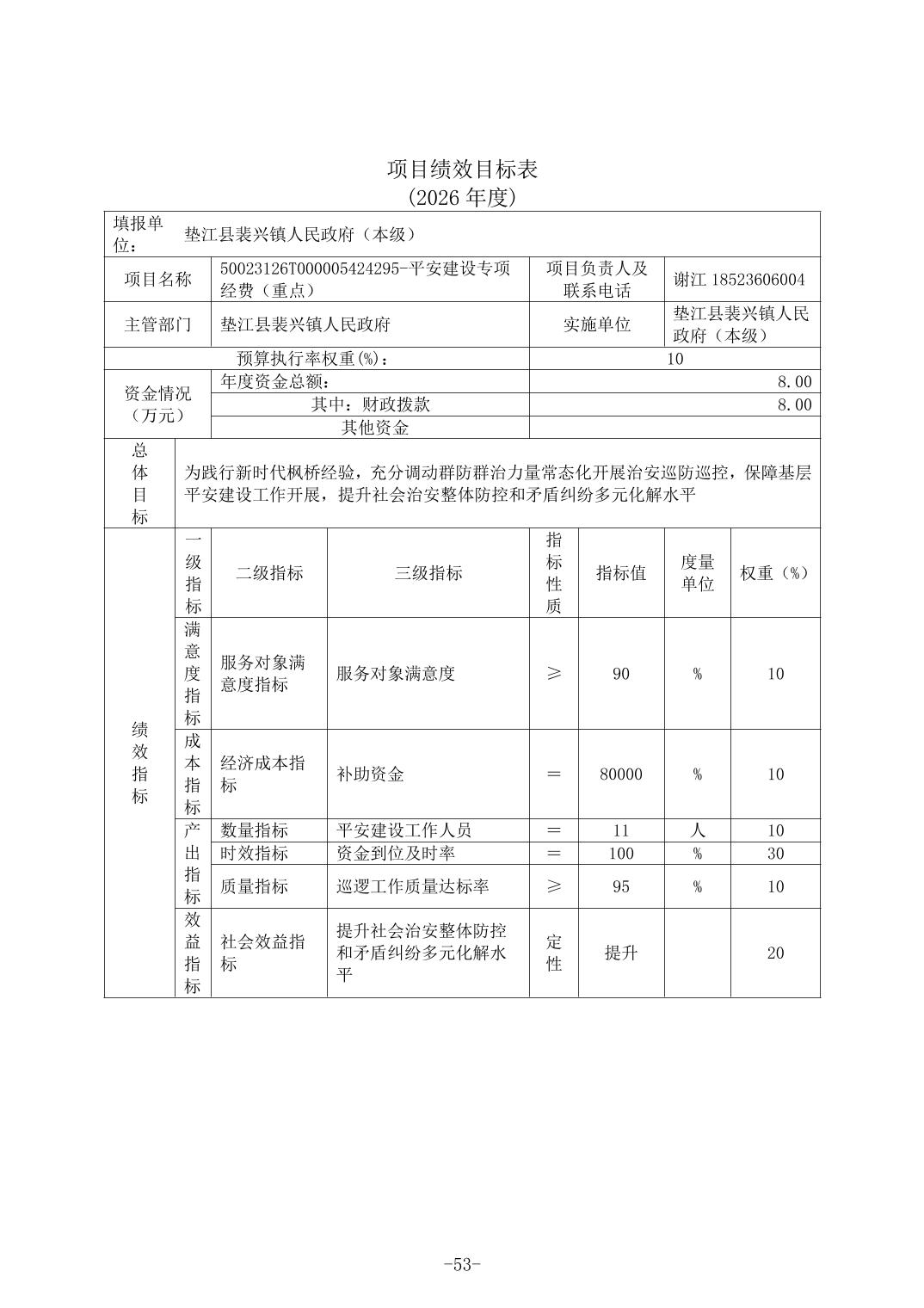 垫江县裴兴镇人民政府(本级)2026年单位预算情况说明