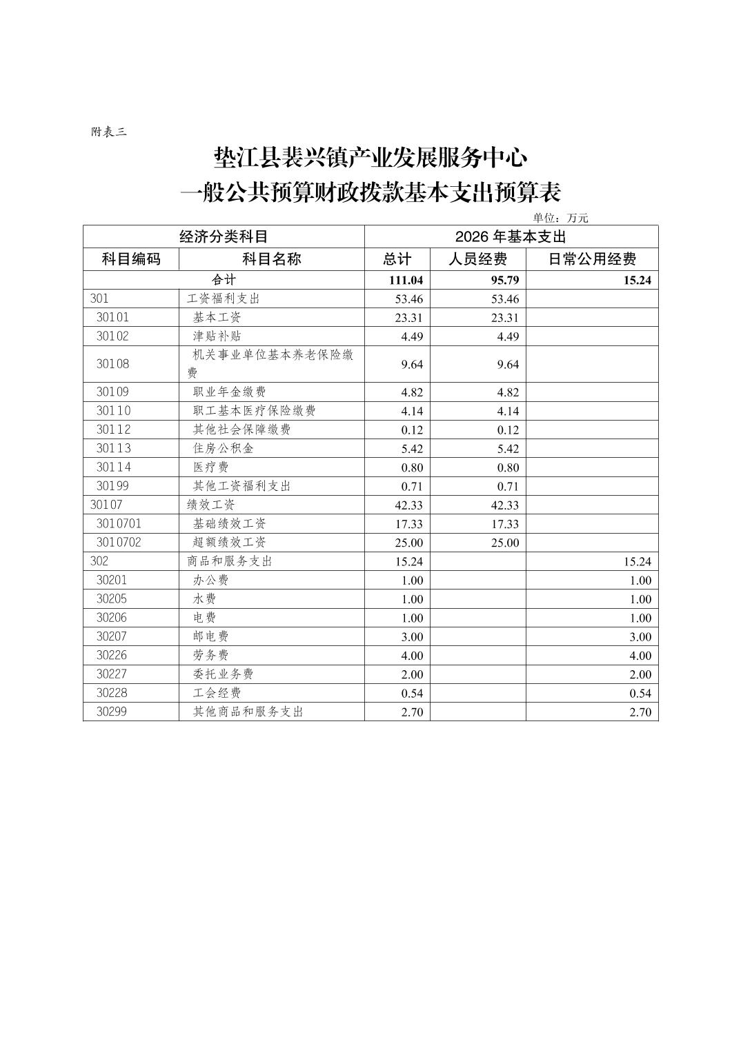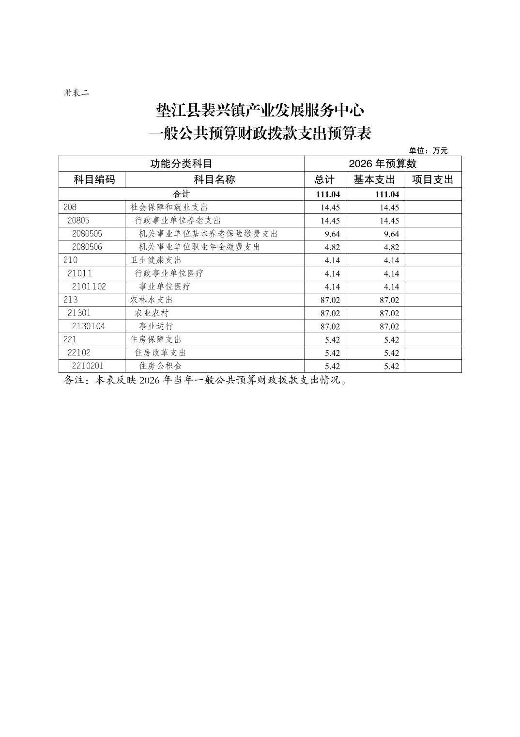 垫江县裴兴镇产业发展服务中心2026年单位预算情况说明.doc