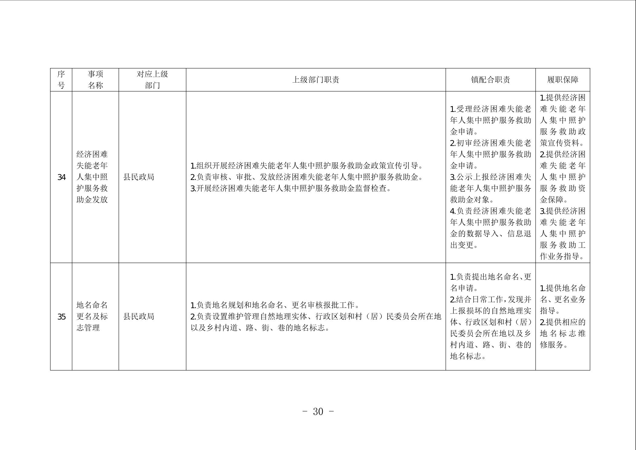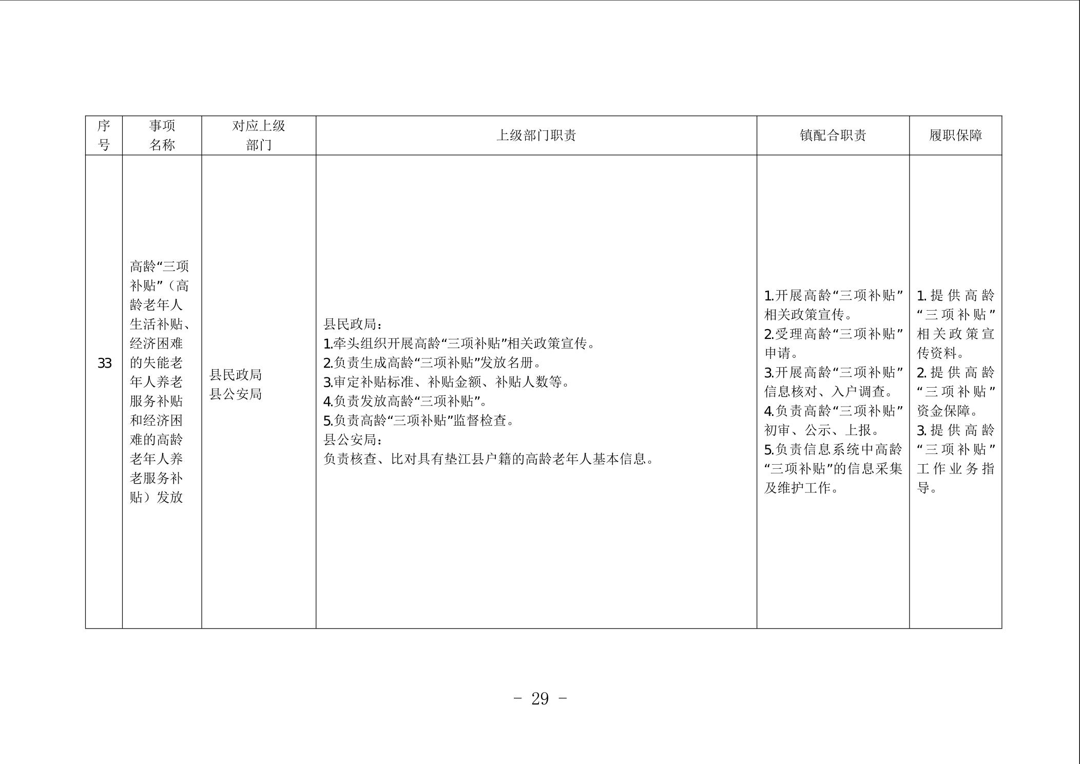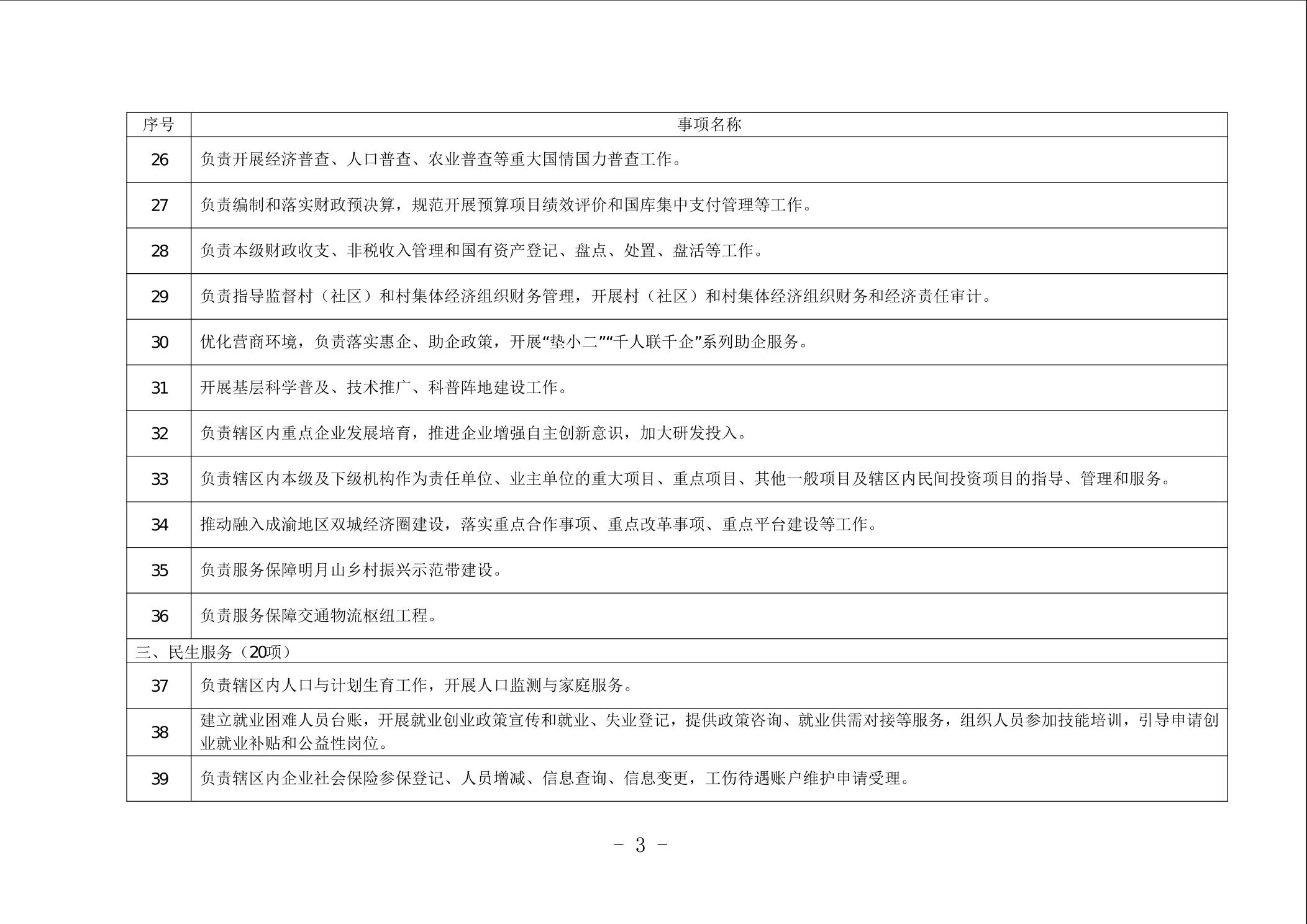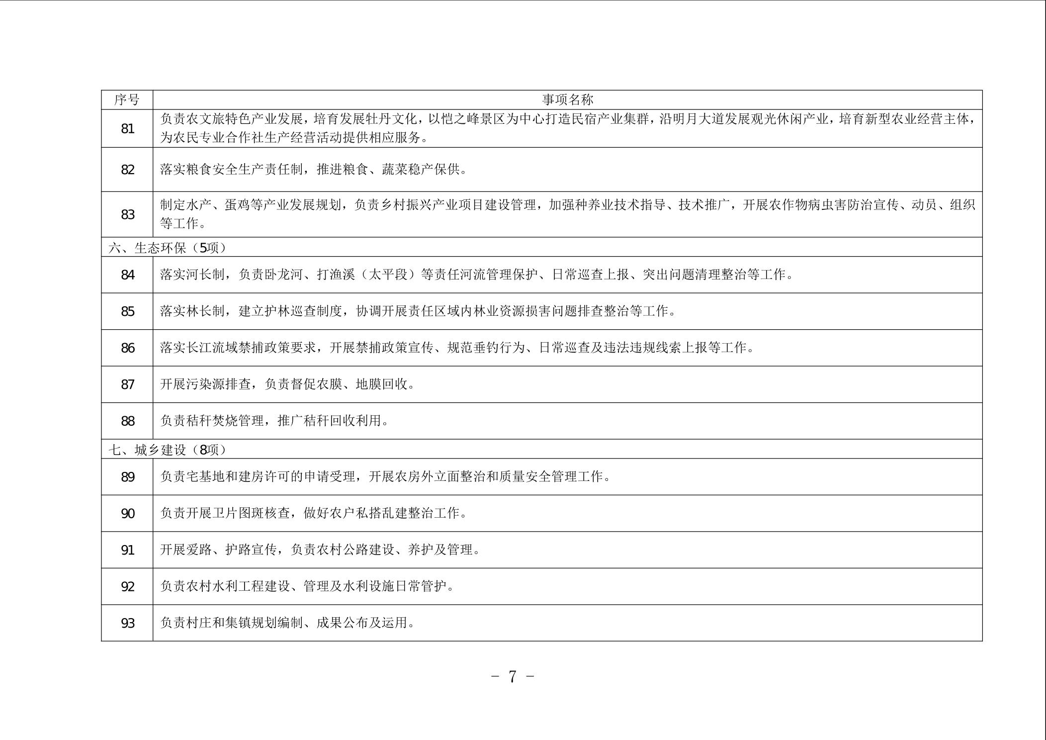 重庆市垫江县太平镇履行职责事项清单