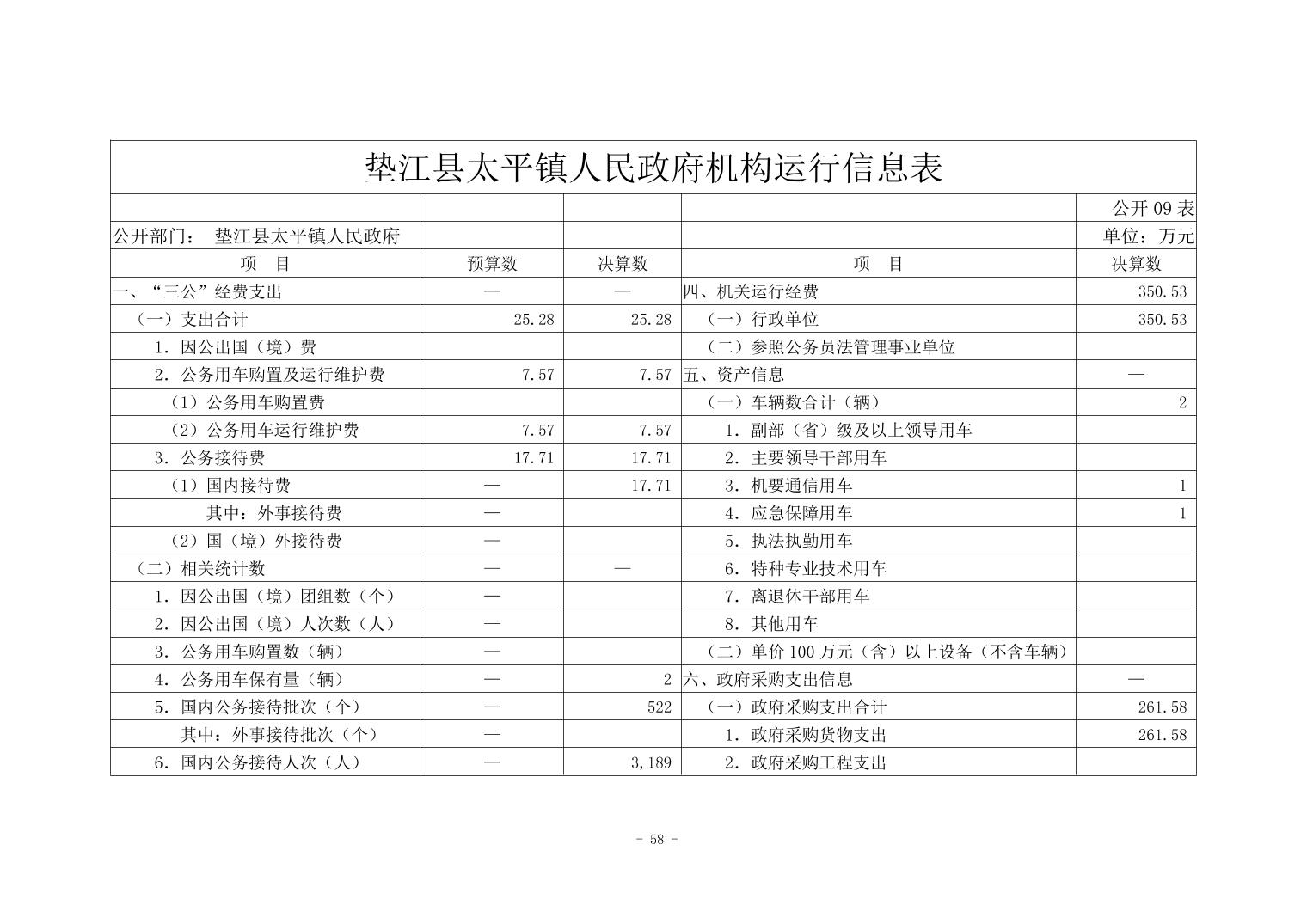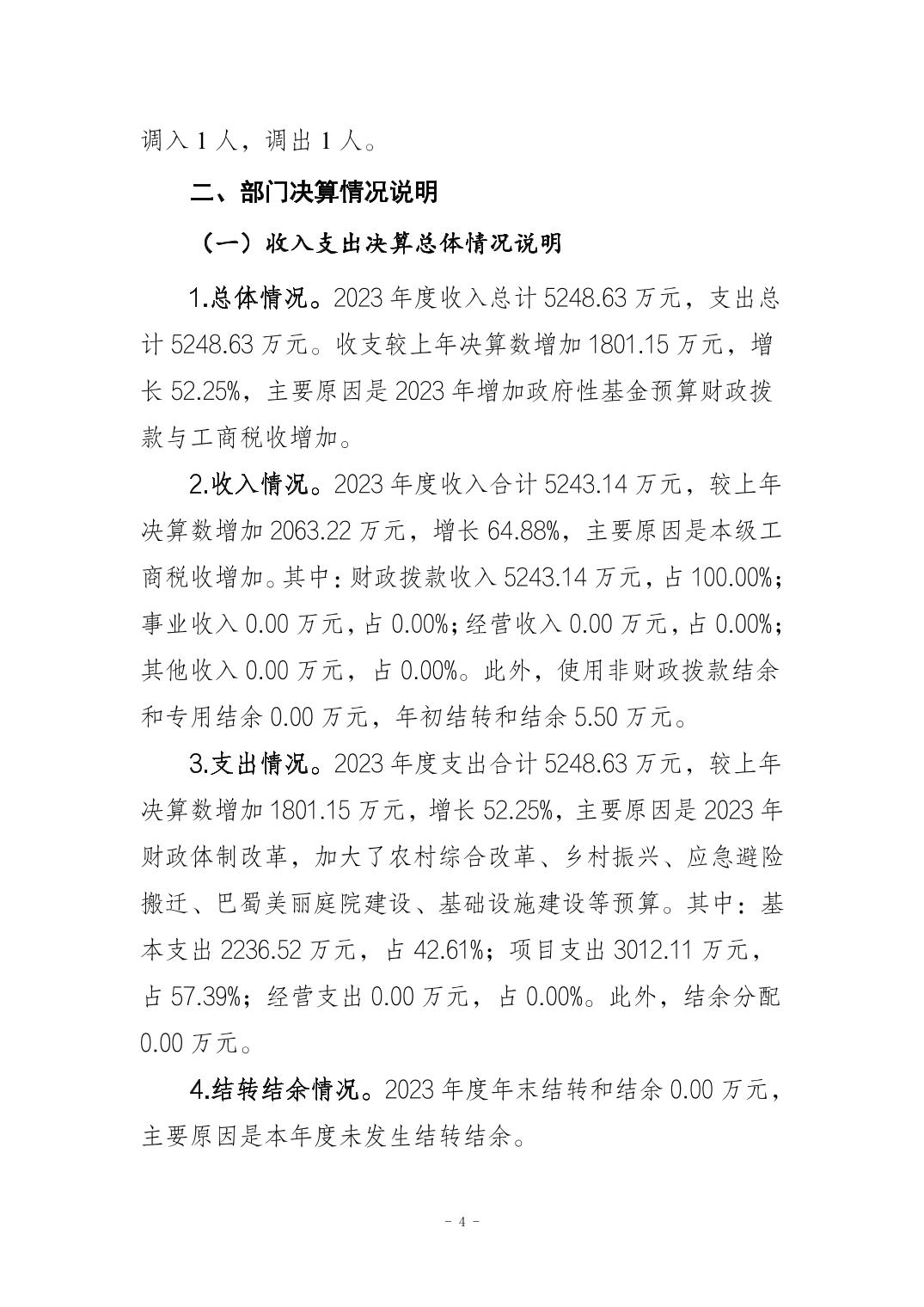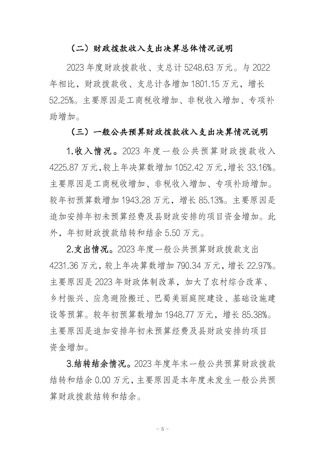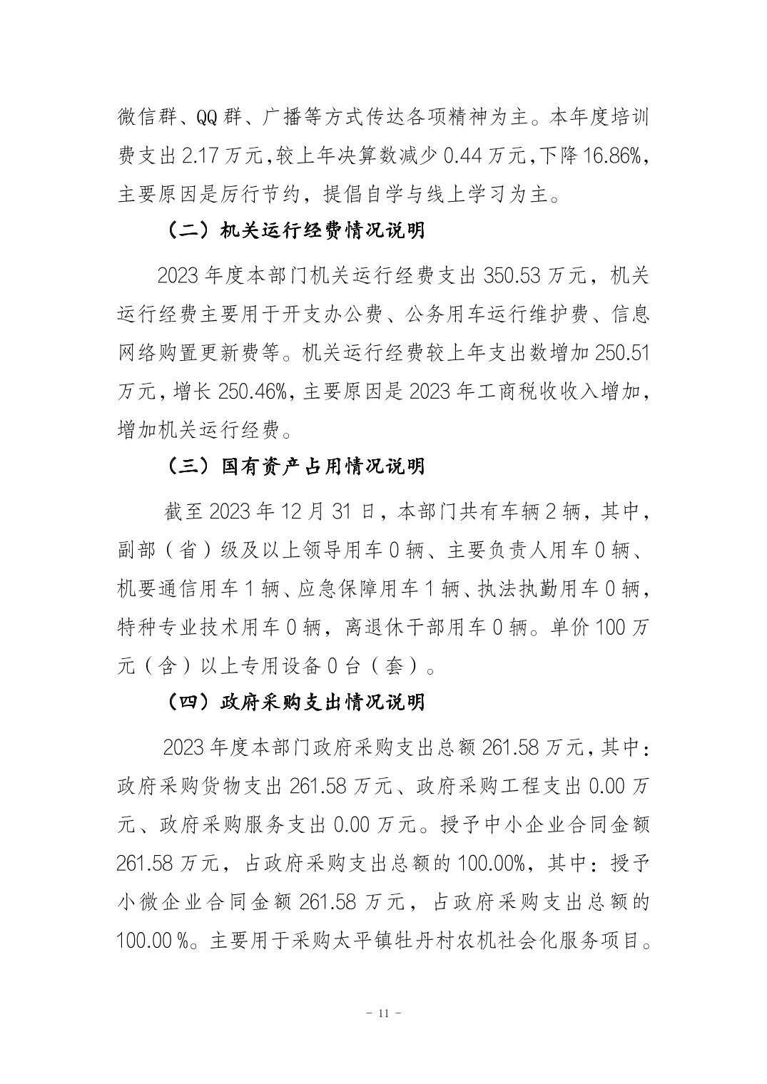 垫江县太平镇人民政府2023年度决算公开说明及公开报表(部门)