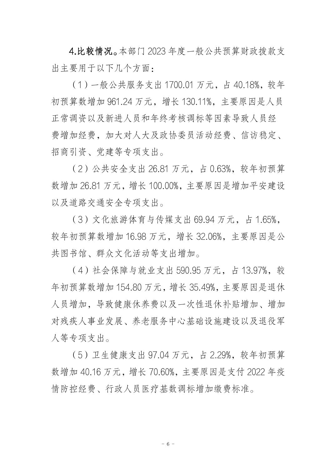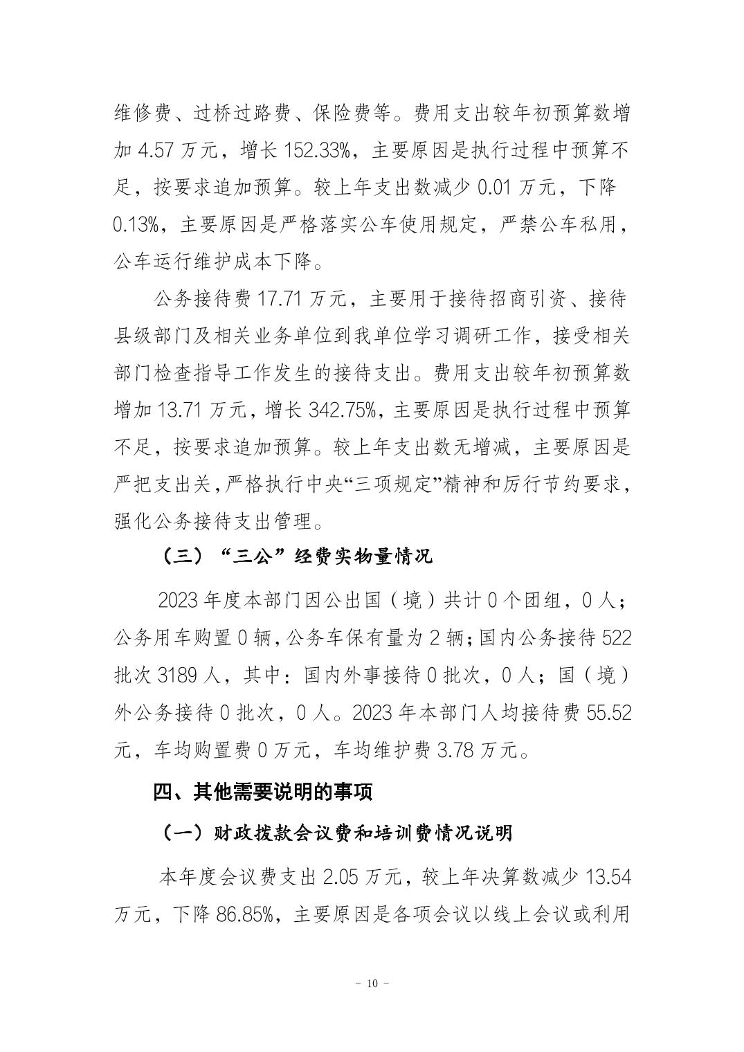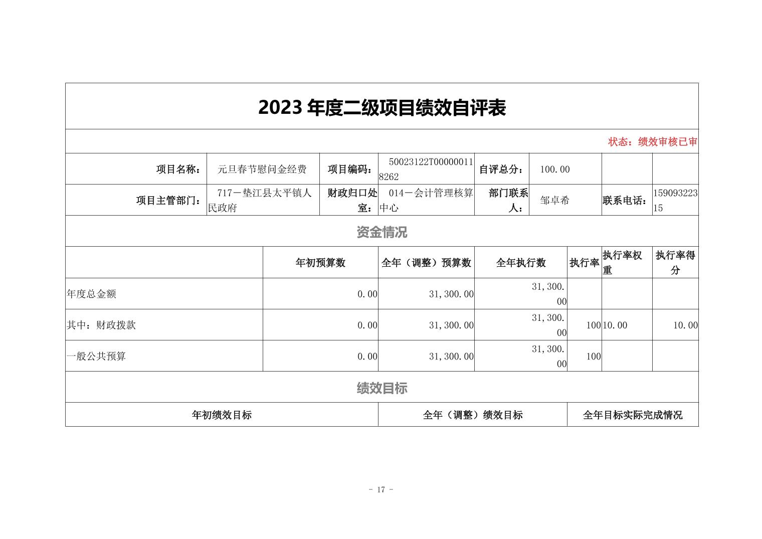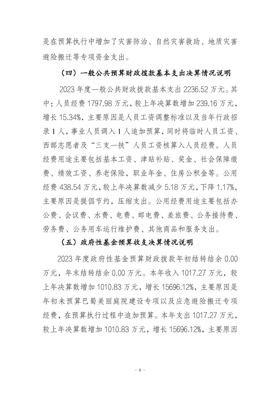 垫江县太平镇人民政府2023年度决算公开说明及公开报表(部门)