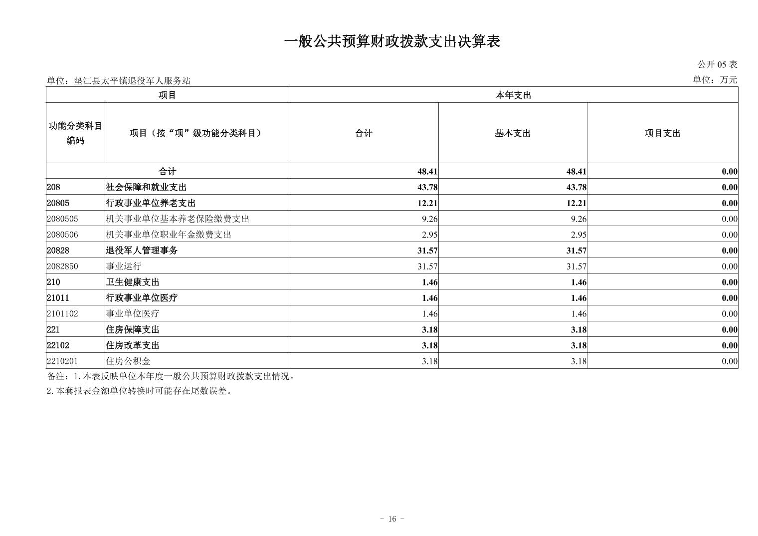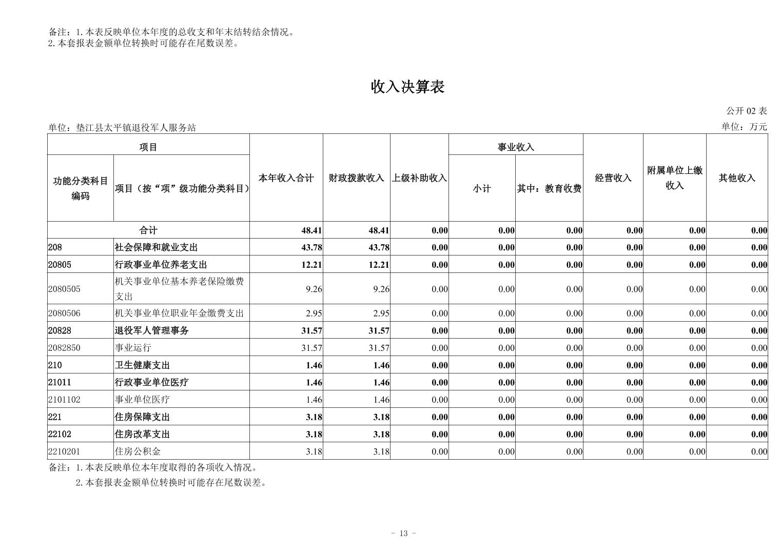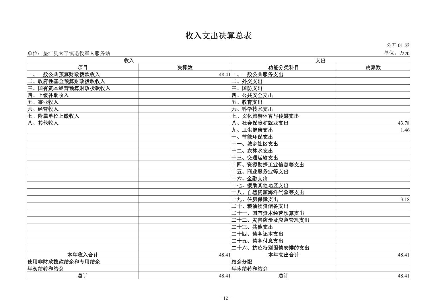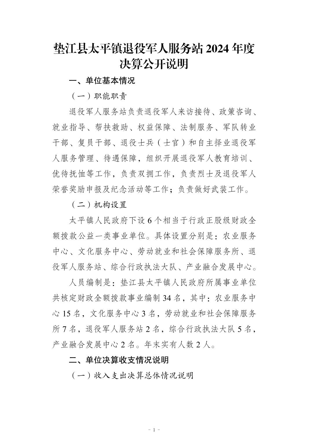 垫江县太平镇退役军人服务站2024年度决算公开说明.docx垫江县太平镇退役军人服务站2024年度决算公开说明.pdf