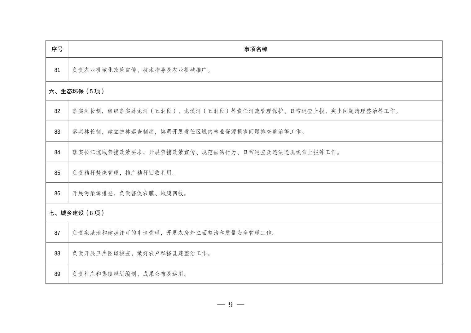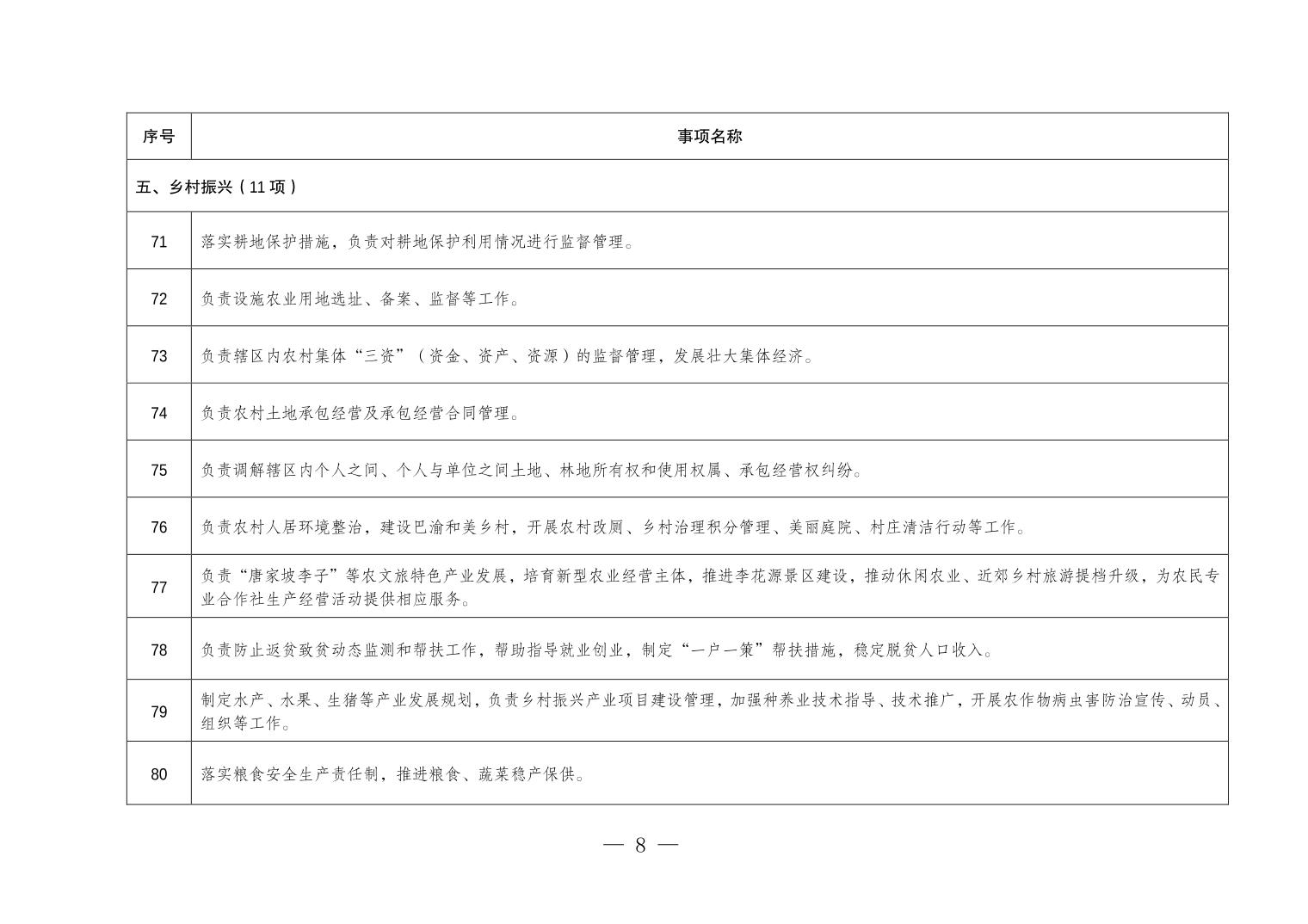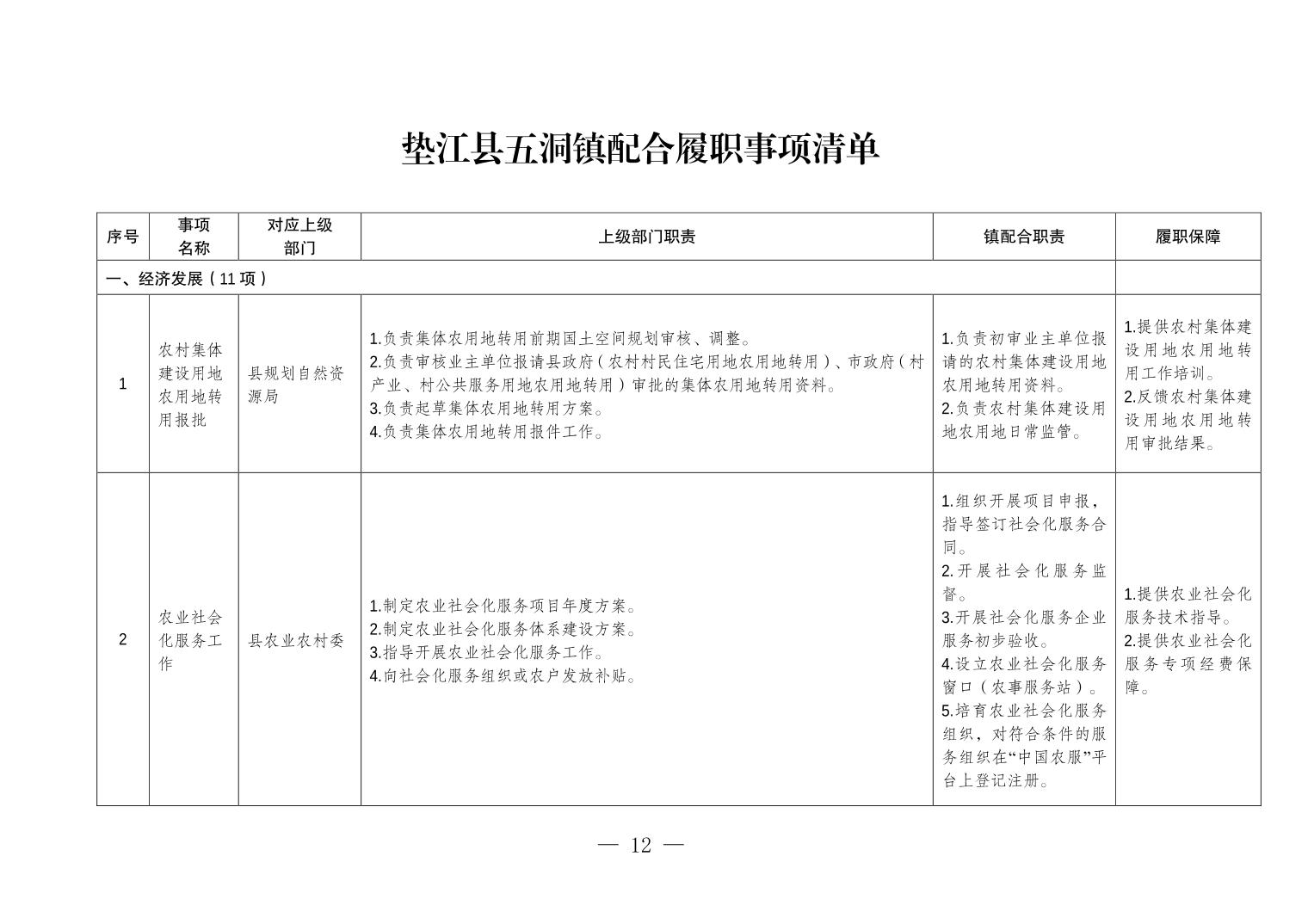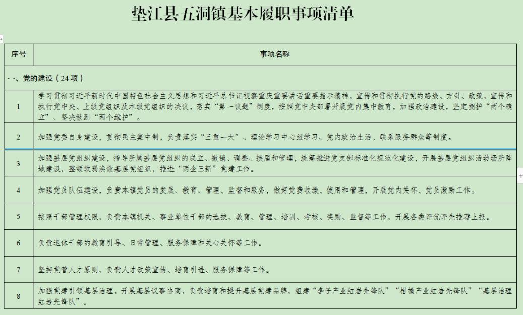 重庆市垫江县五洞镇履行职责事项清单