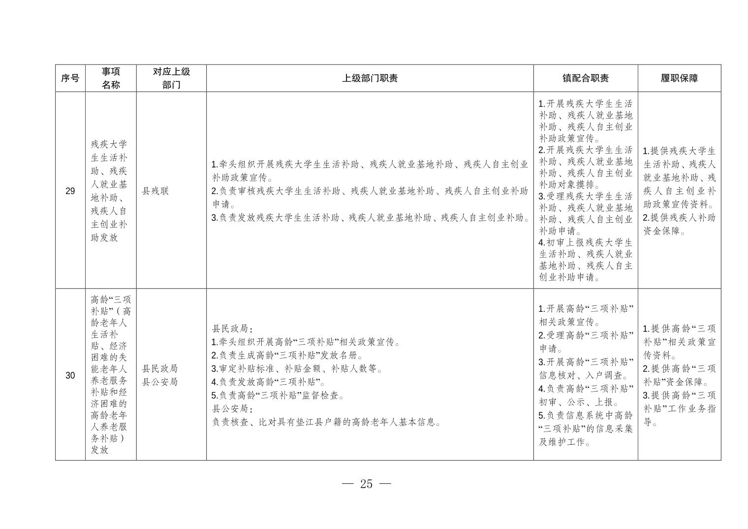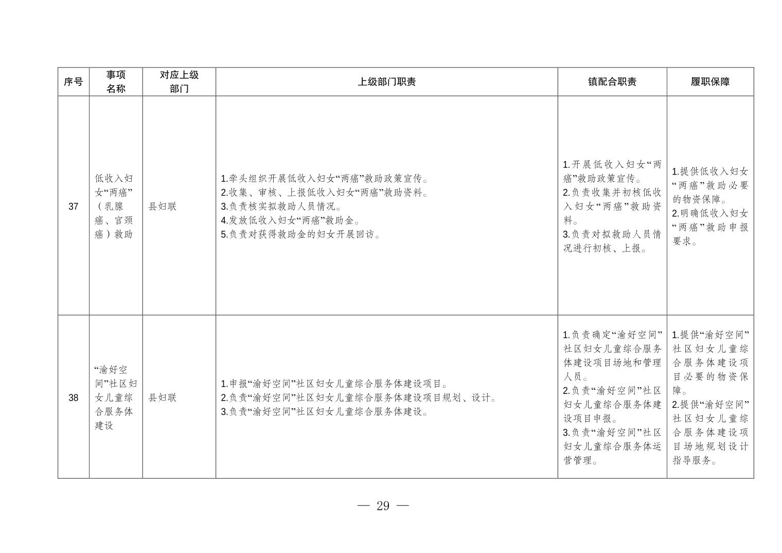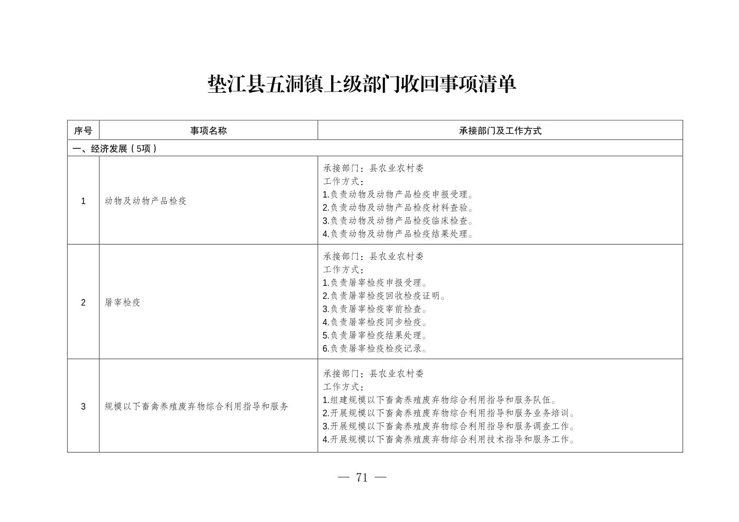 重庆市垫江县五洞镇履行职责事项清单