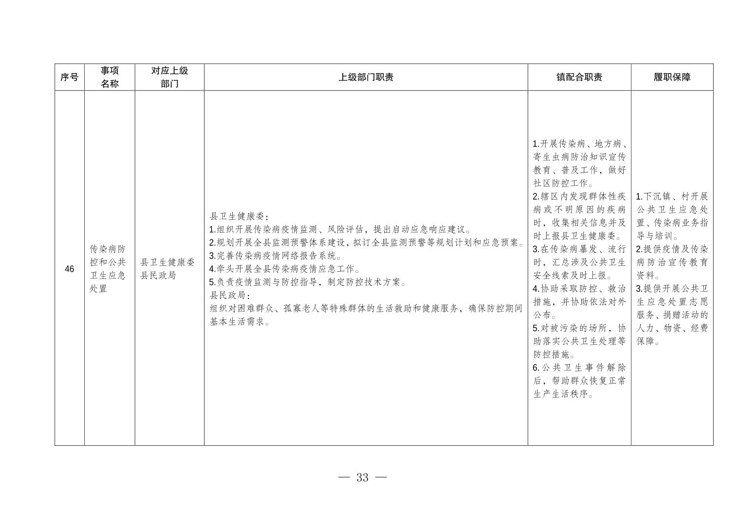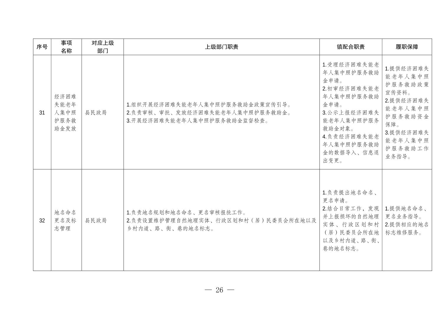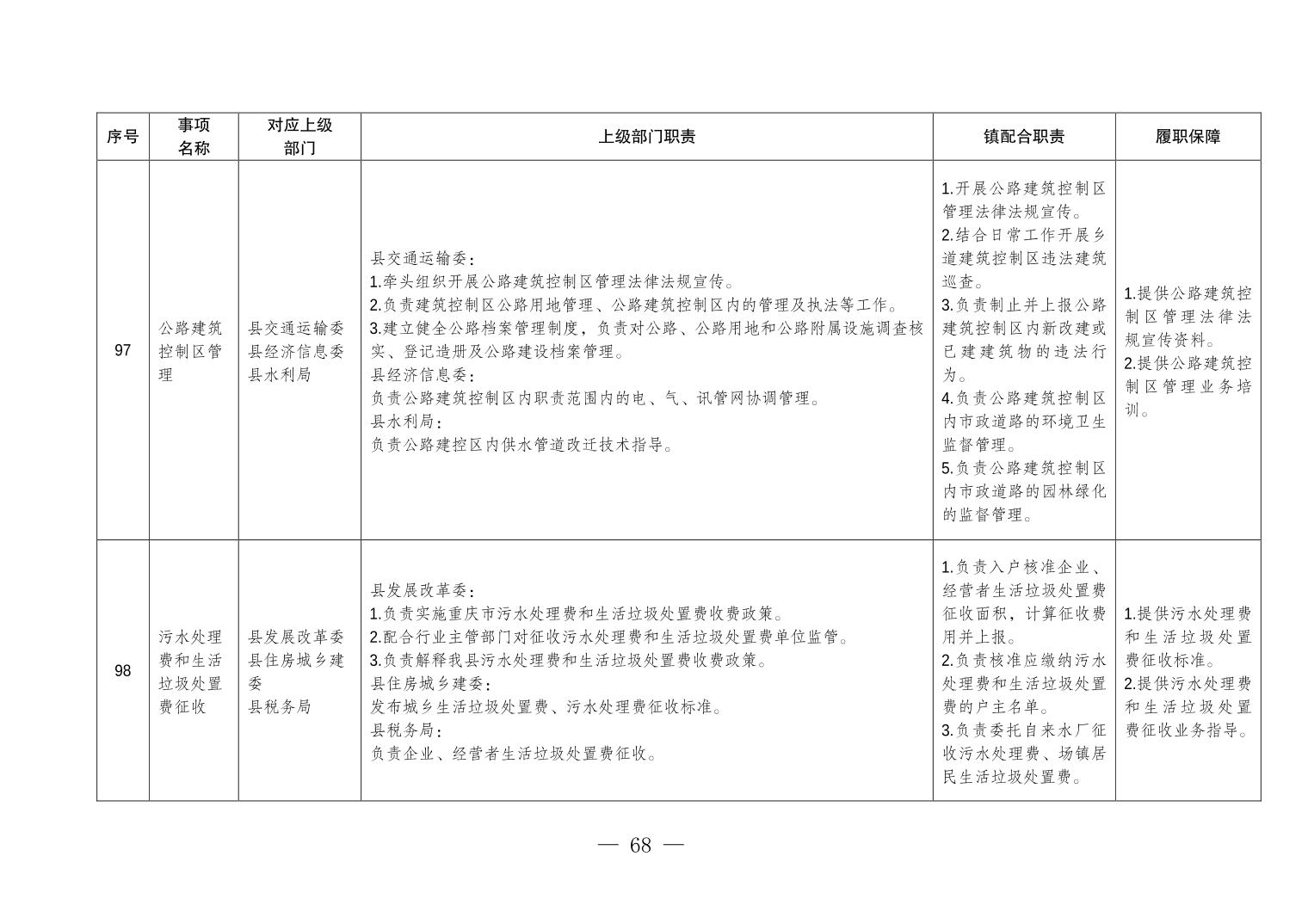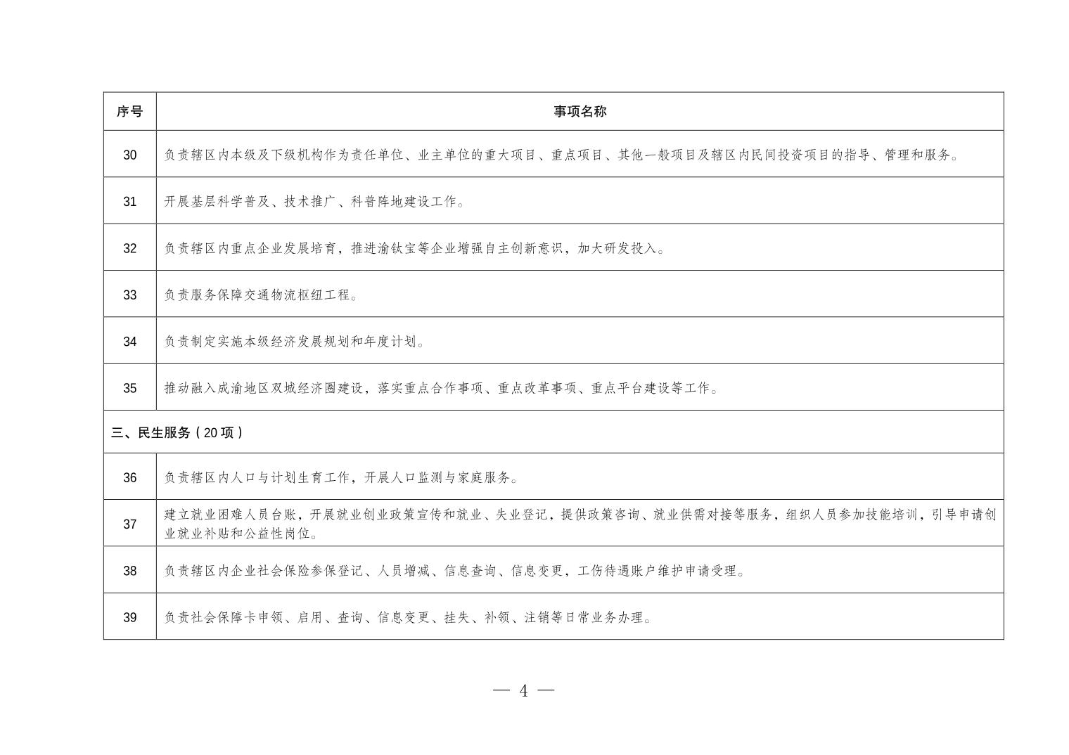 重庆市垫江县五洞镇履行职责事项清单