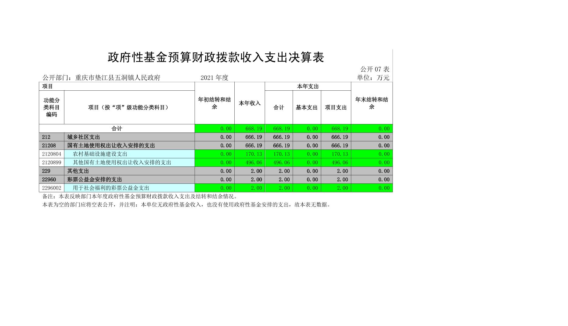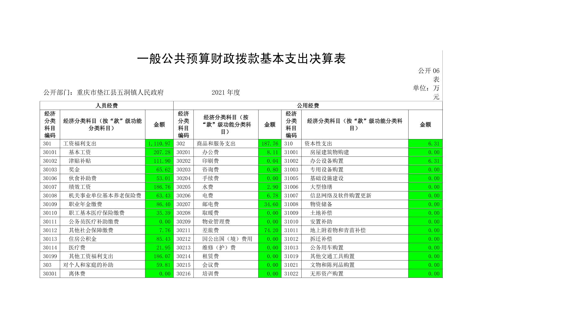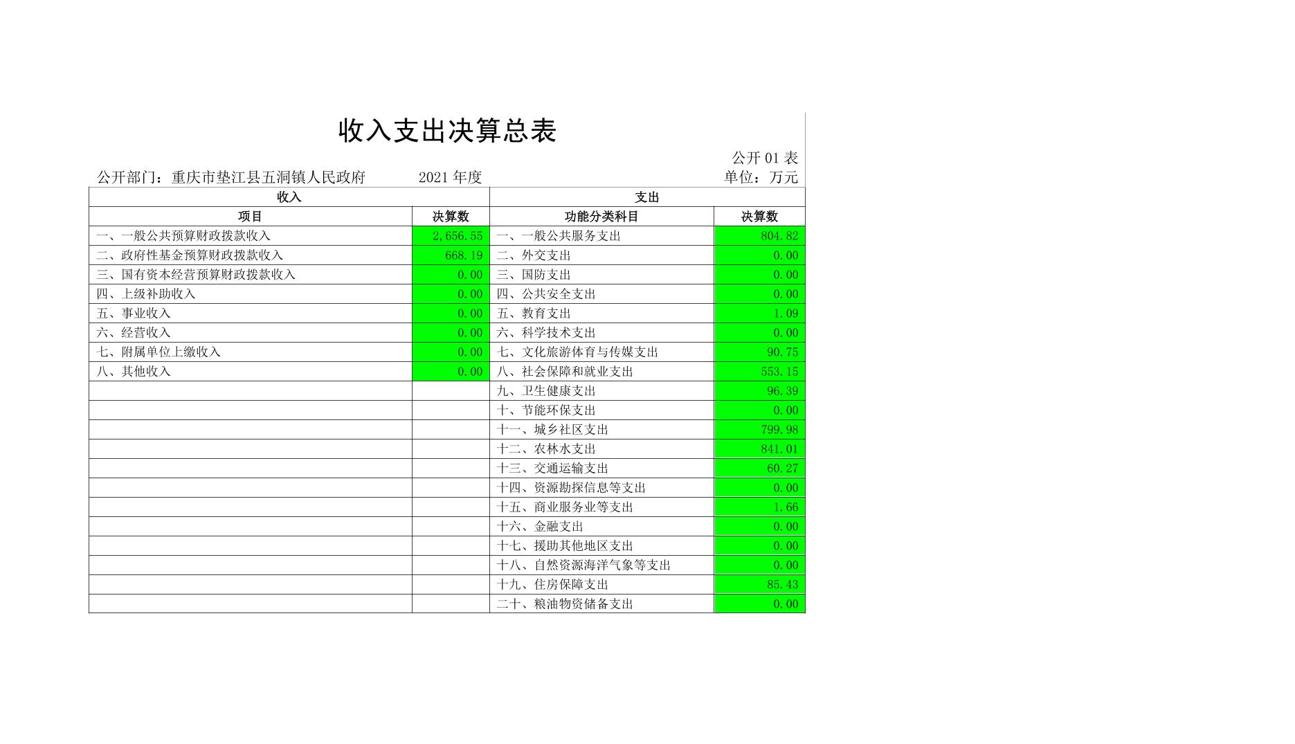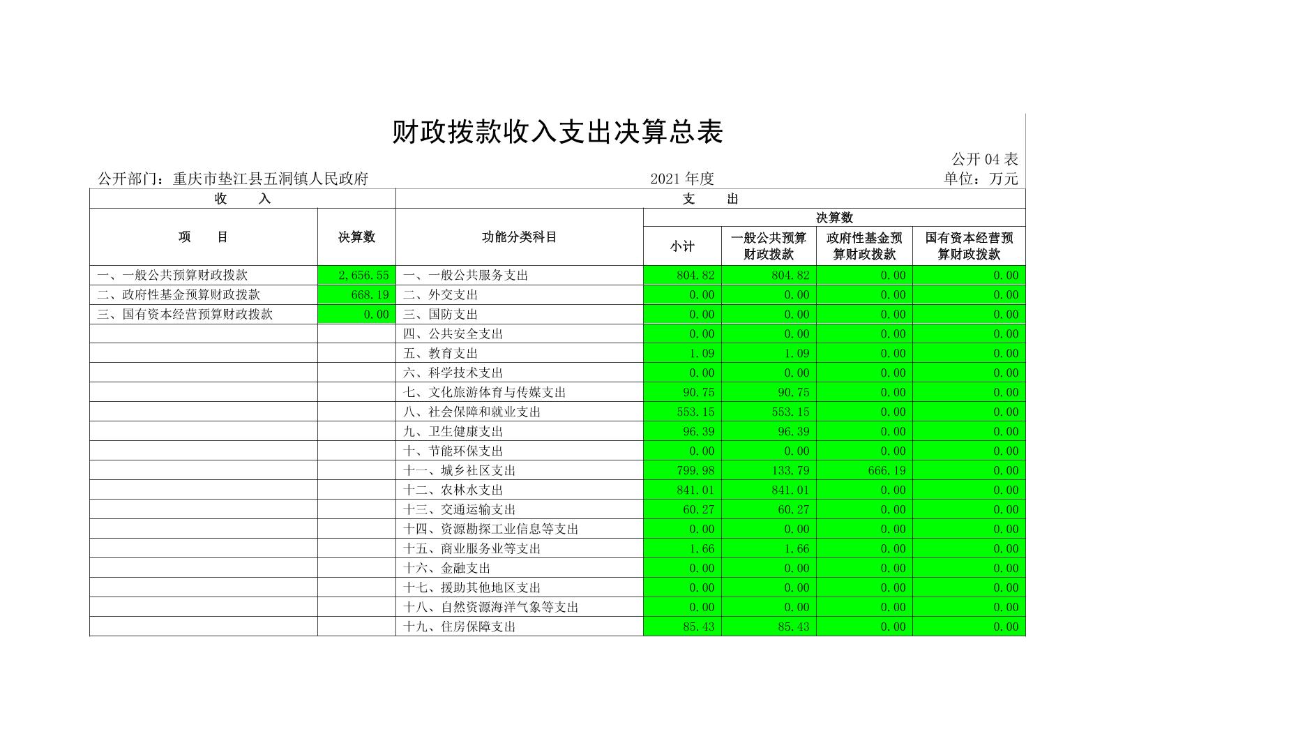 重庆市垫江县五洞镇人民政府2021年度部门决算公开