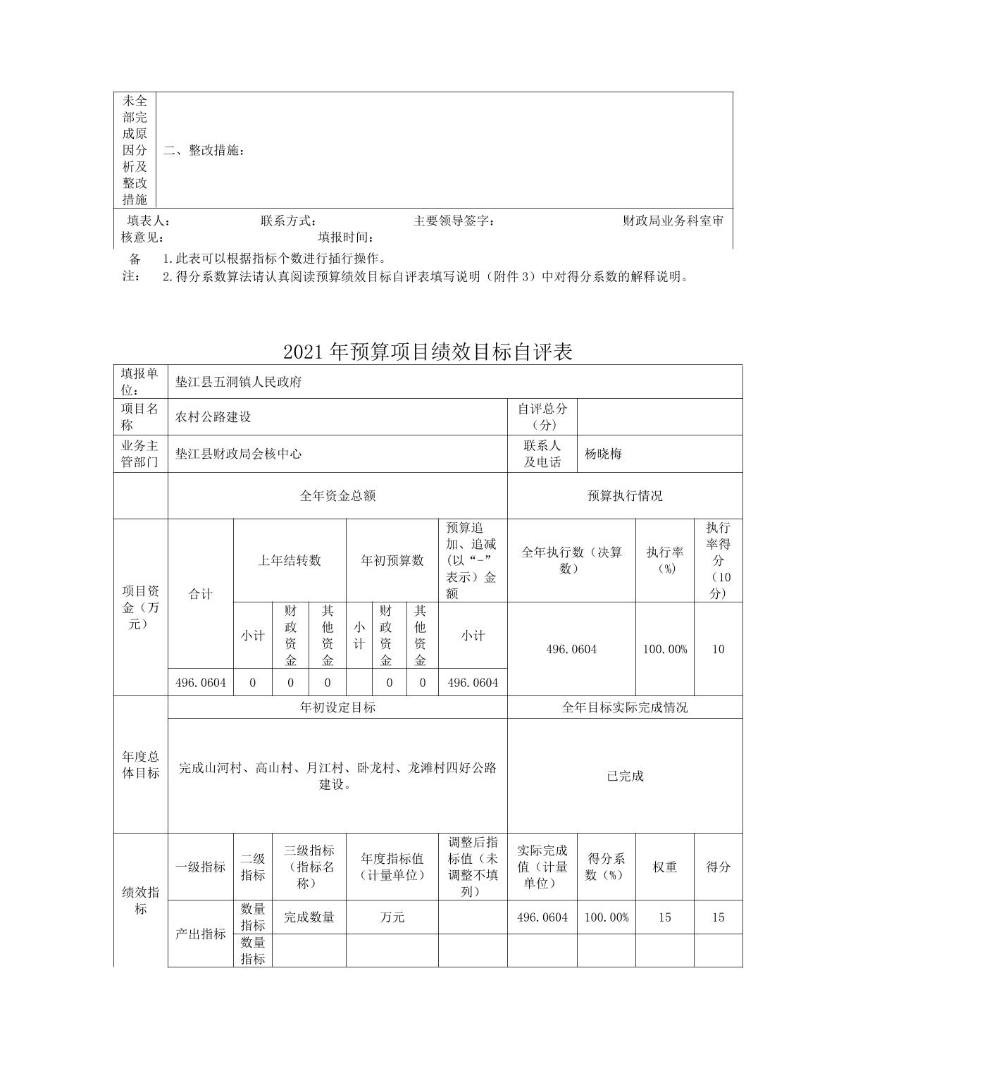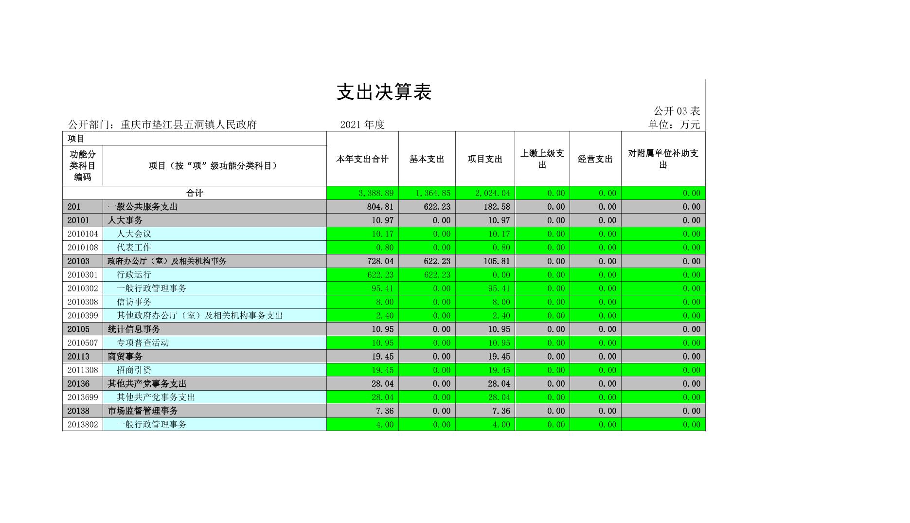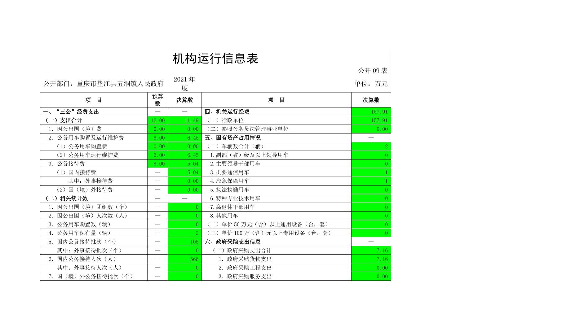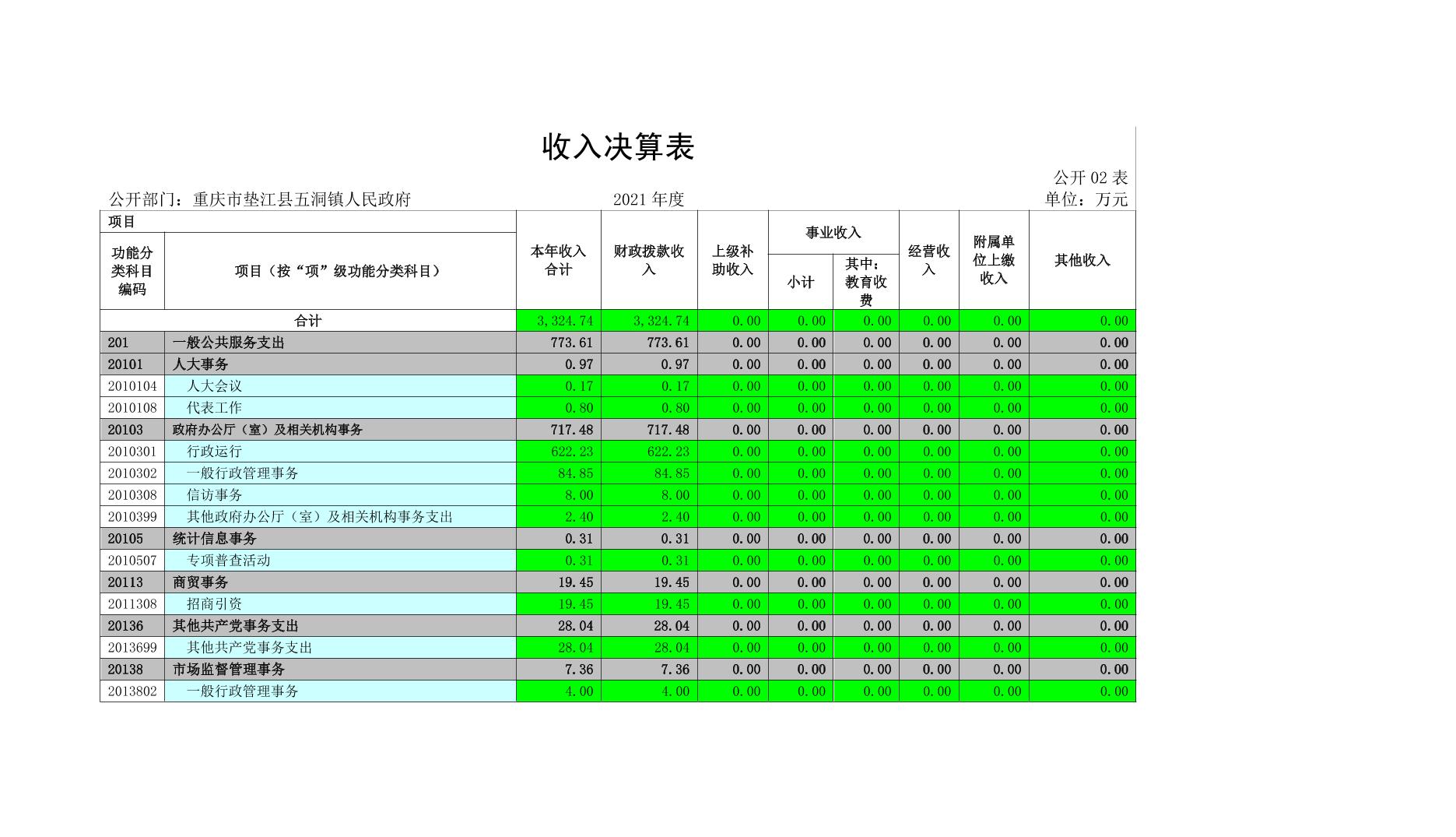 重庆市垫江县五洞镇人民政府2021年度部门决算公开