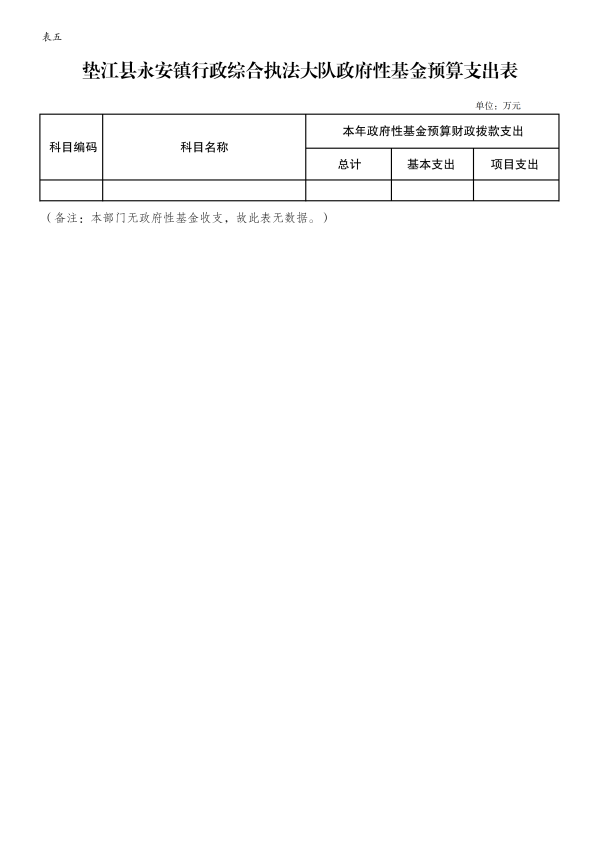 5. 垫江县永安镇综合行政执法大队政府性基金预算支出表