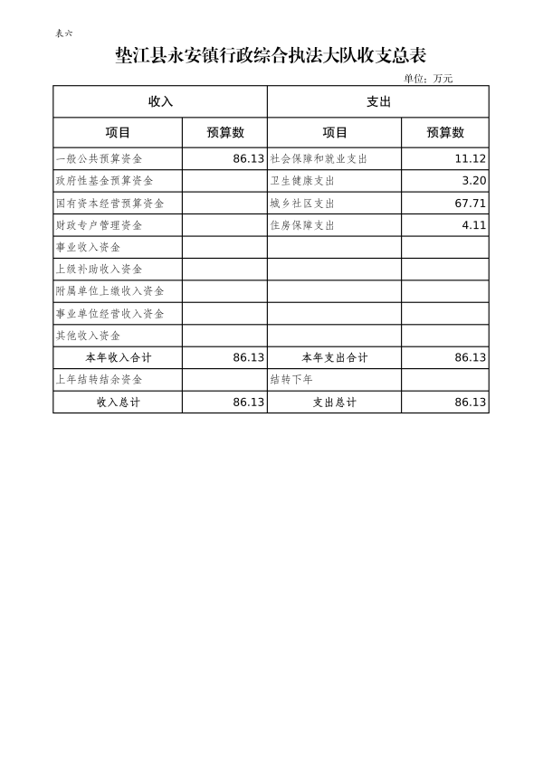 6. 垫江县永安镇综合行政执法大队部门收支总表