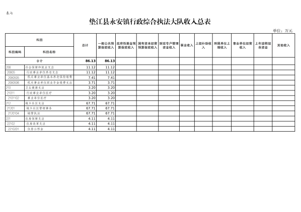 7. 垫江县永安镇综合行政执法大队部门收入总表