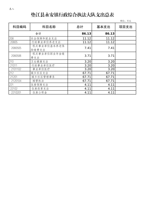 8. 垫江县永安镇综合行政执法大队部门支出总表