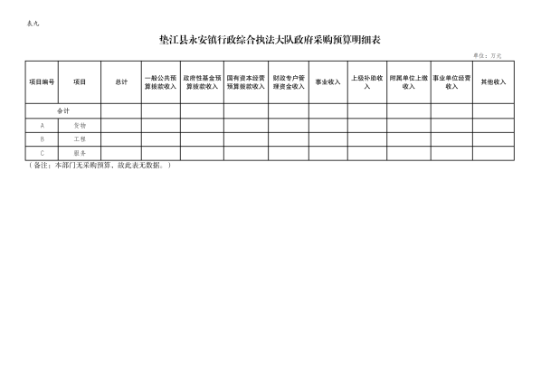 9. 垫江县永安镇综合行政执法大队政府采购明细表