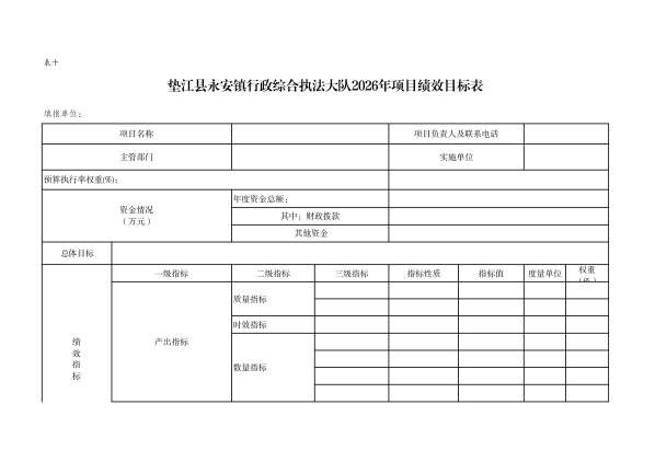 10. 垫江县永安镇综合行政执法大队2026年项目绩效目标表