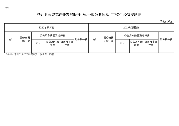 4. 垫江县永安镇产业发展服务中心一般公共预算“三公”经费支出表