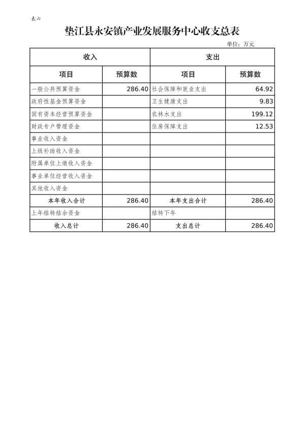 6. 垫江县永安镇产业发展服务中心部门收支总表