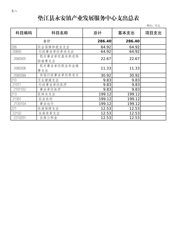 8. 垫江县永安镇产业发展服务中心部门支出总表