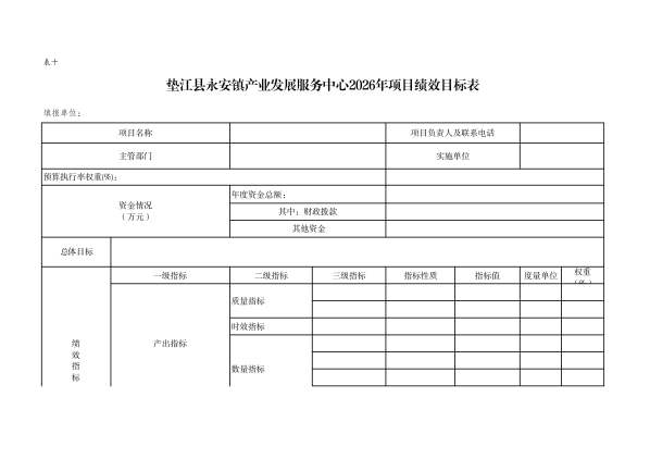10. 垫江县永安镇产业发展服务中心2026年项目绩效目标表
