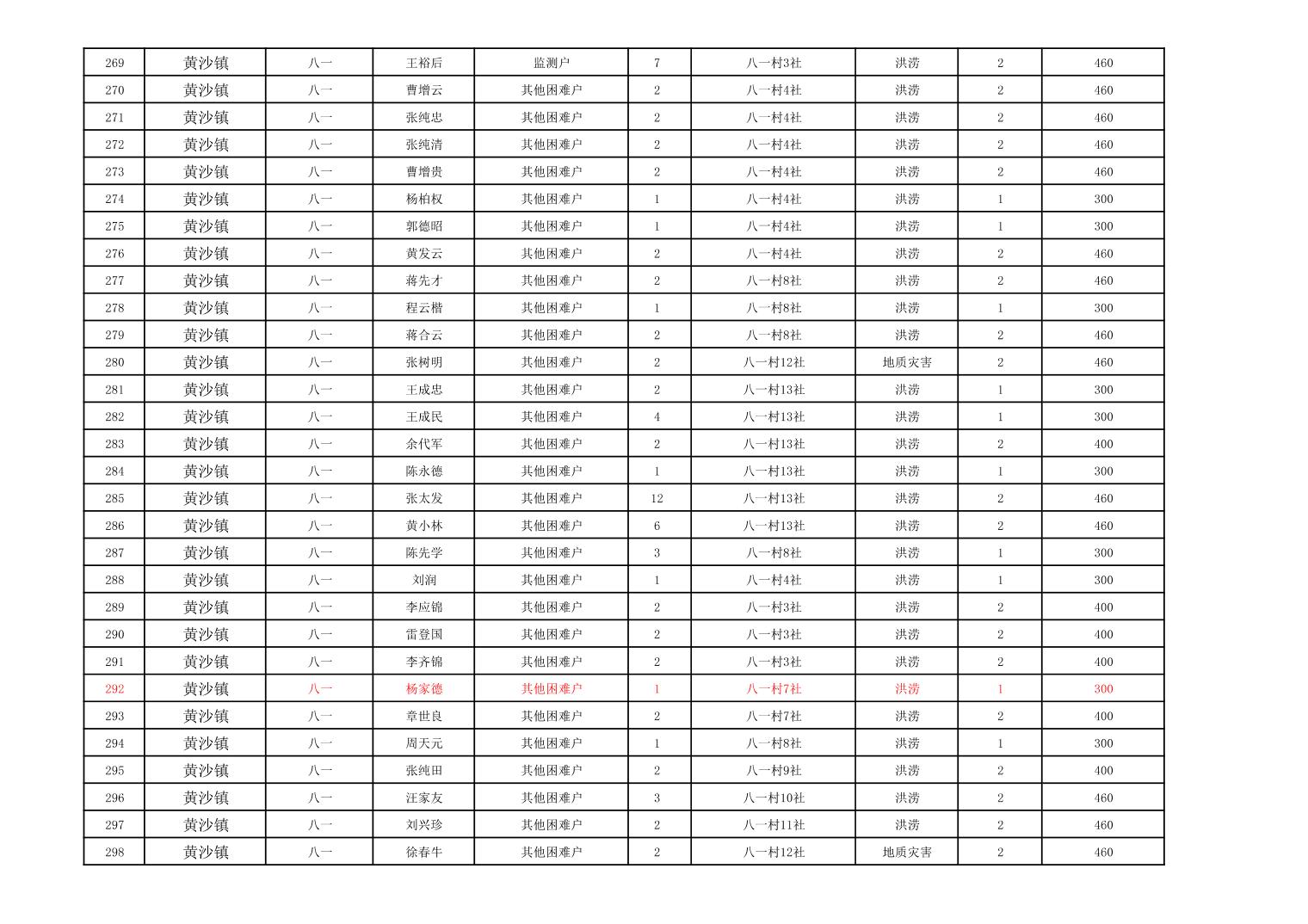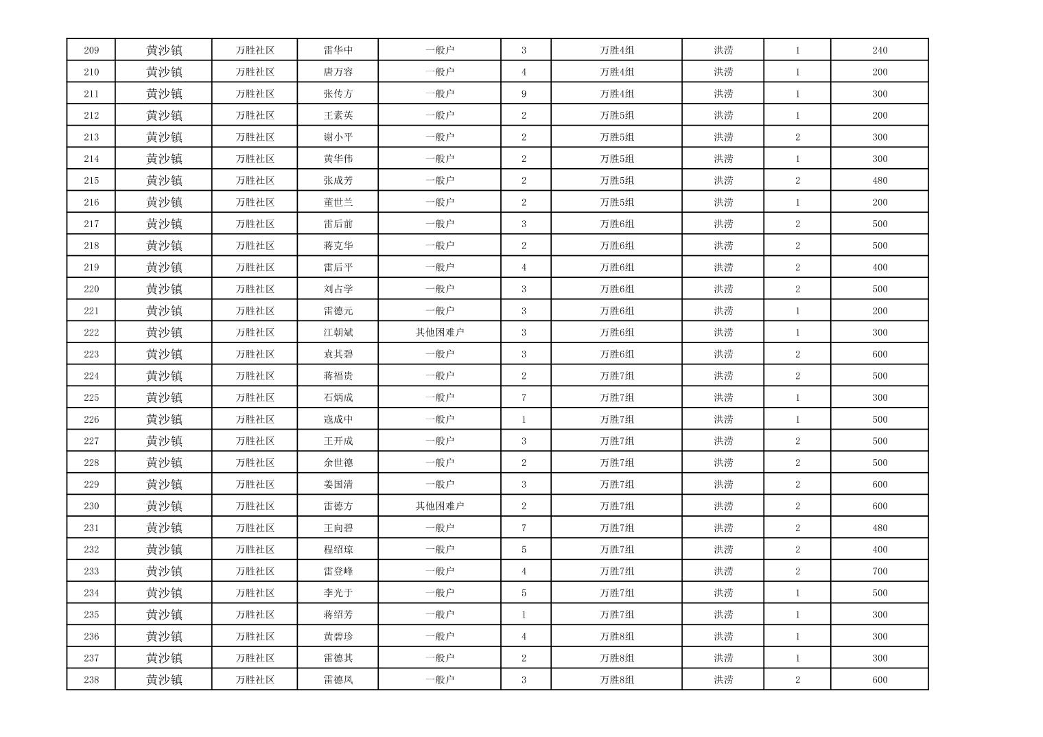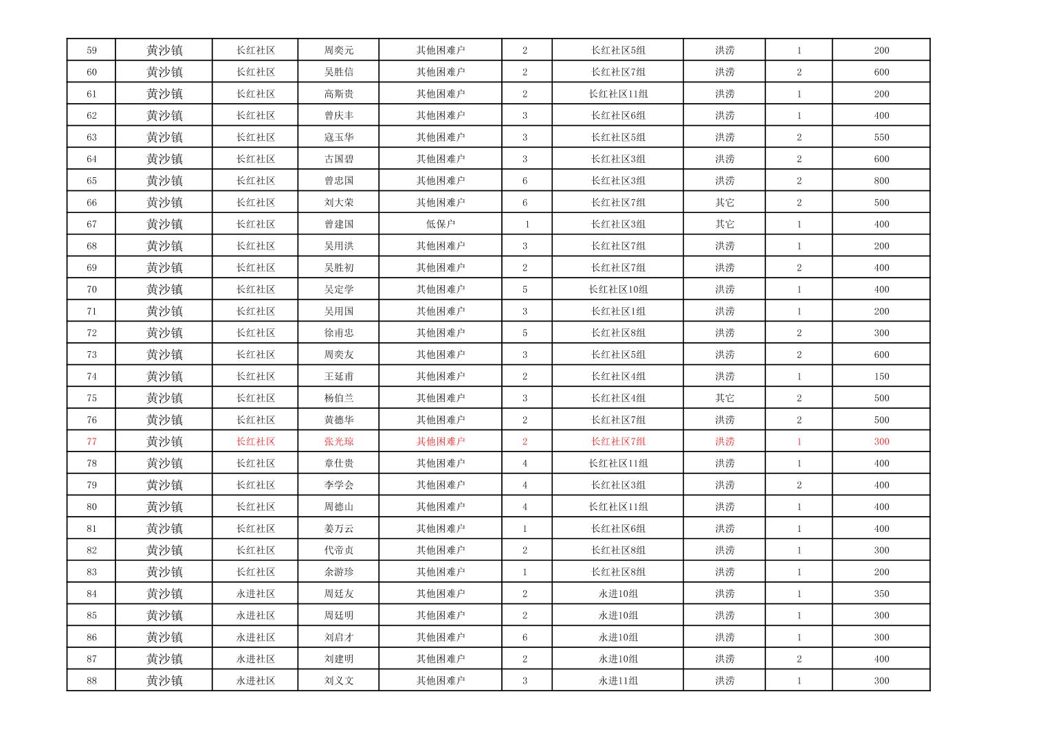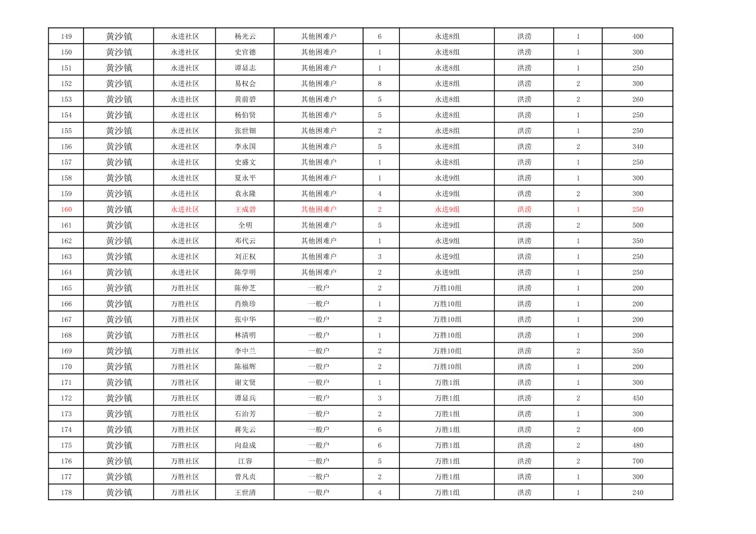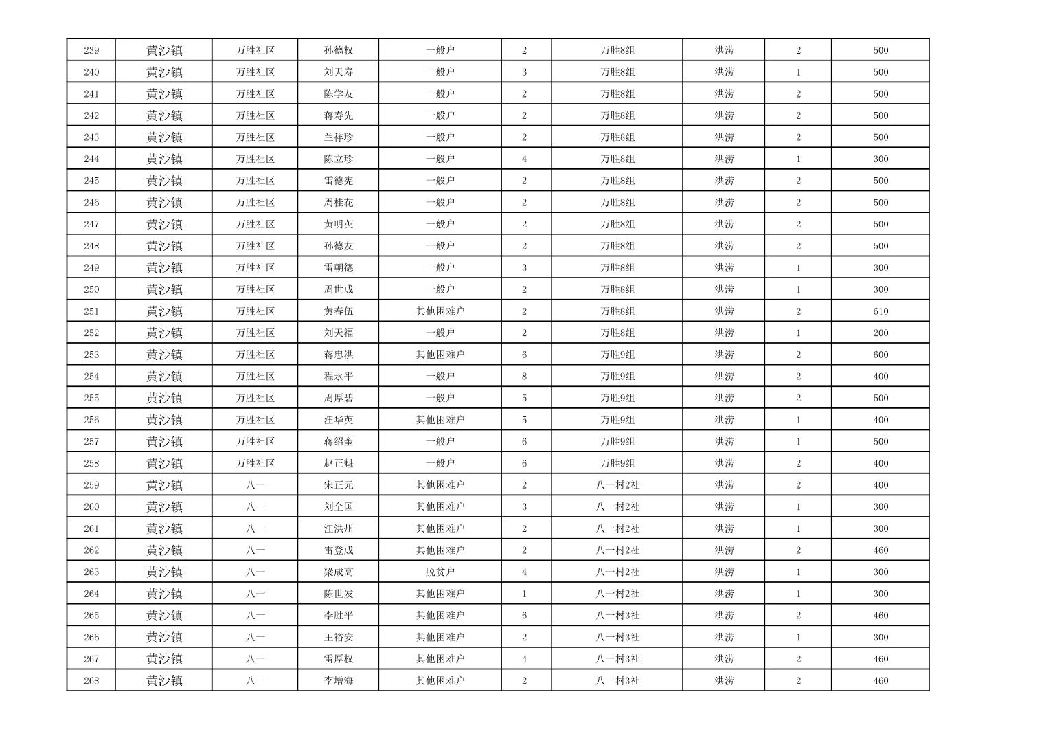 黄沙镇2023年冬春临时生活困难救助资金公示表