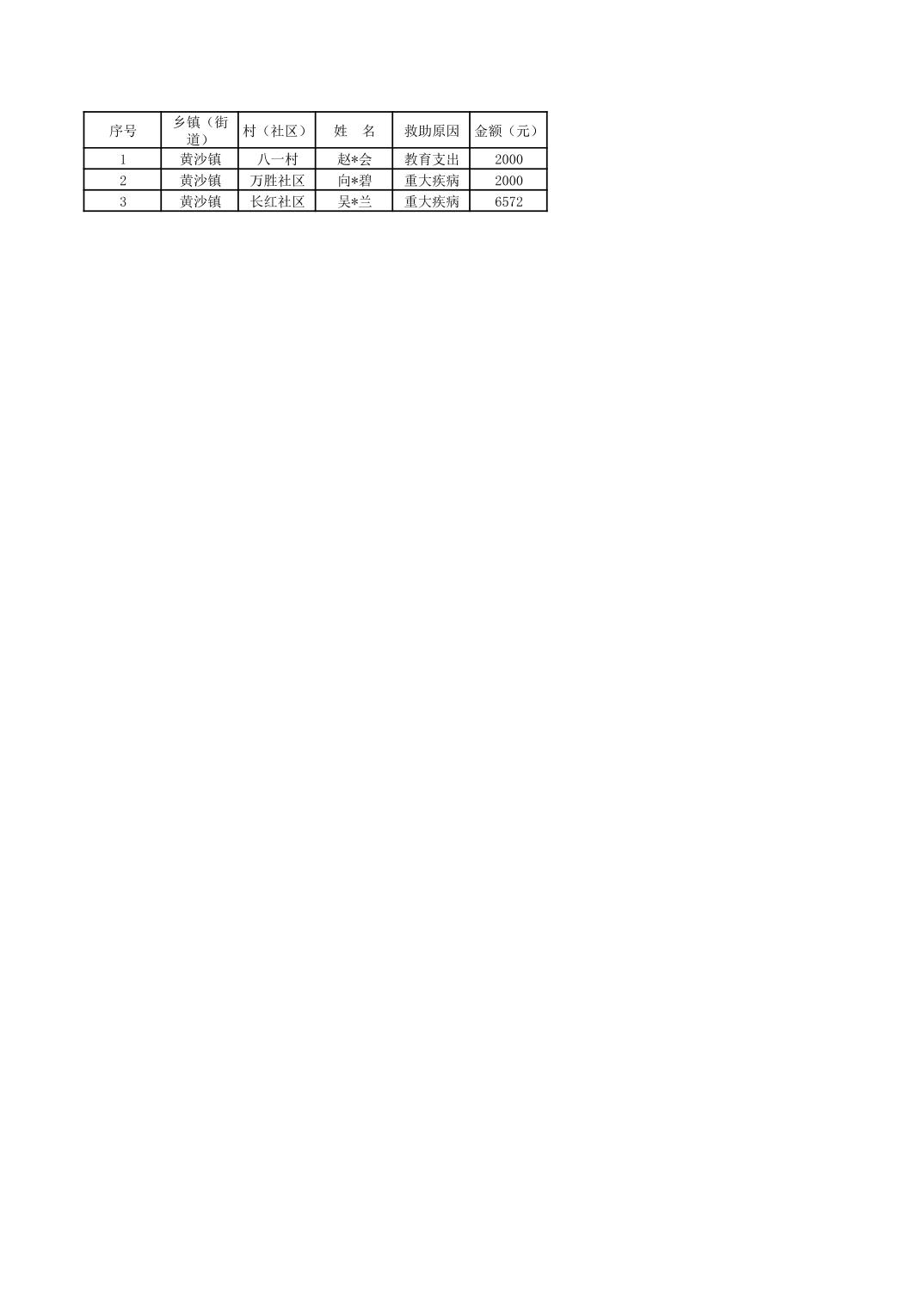 垫江县黄沙镇2025年10月县民政局临时困难救助花名册