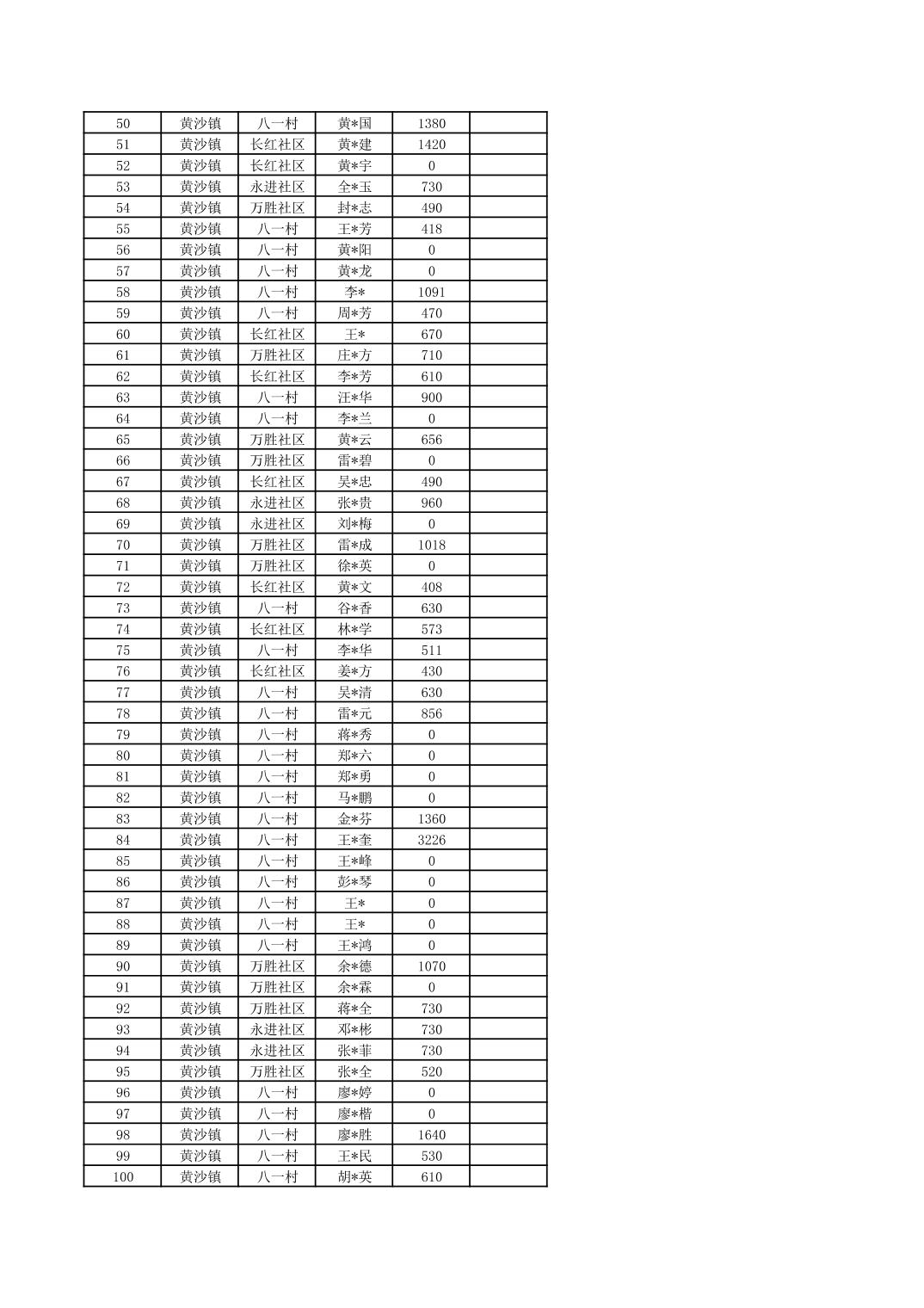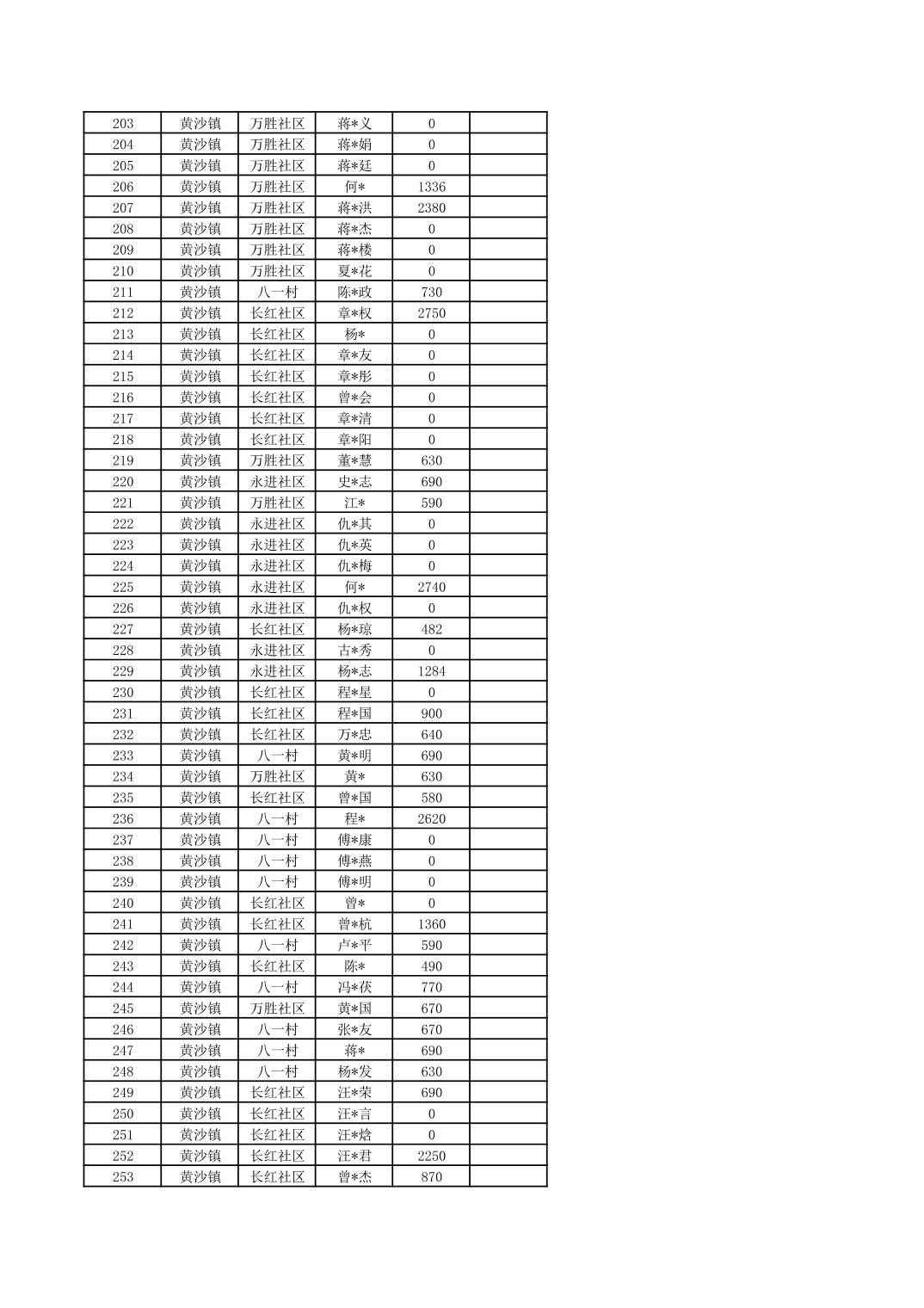 垫江县黄沙镇2025年10月城市、农村低保公示表