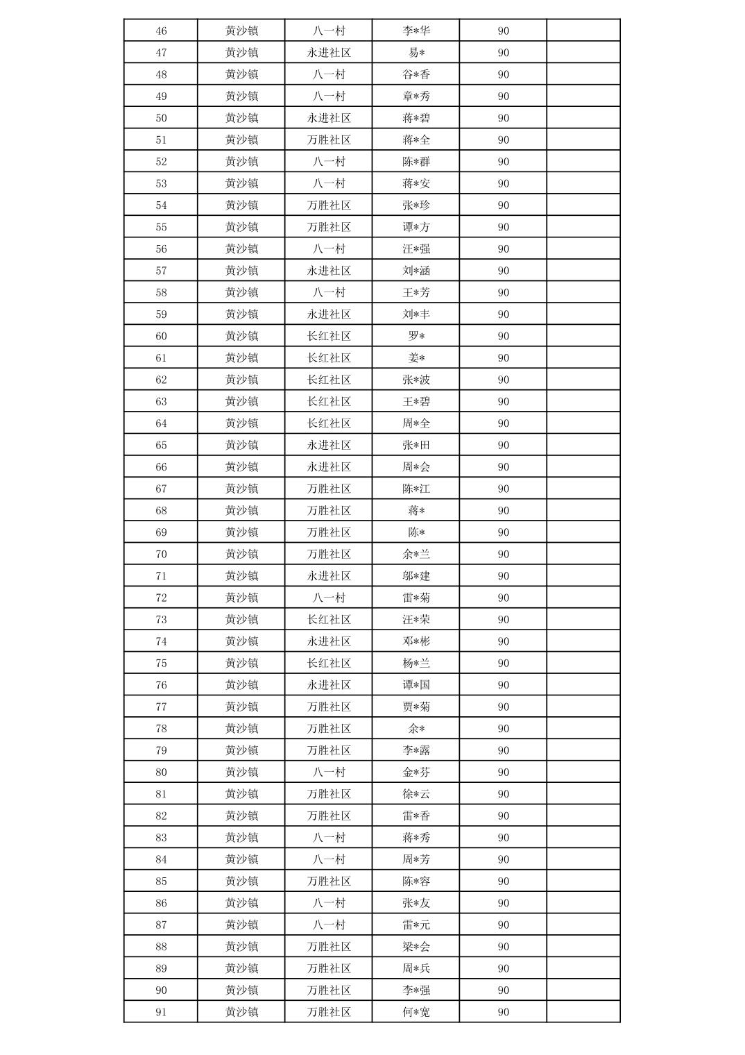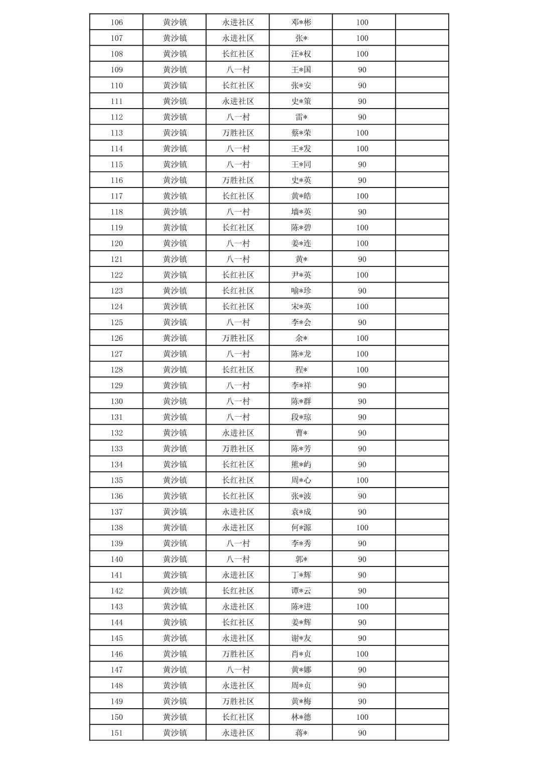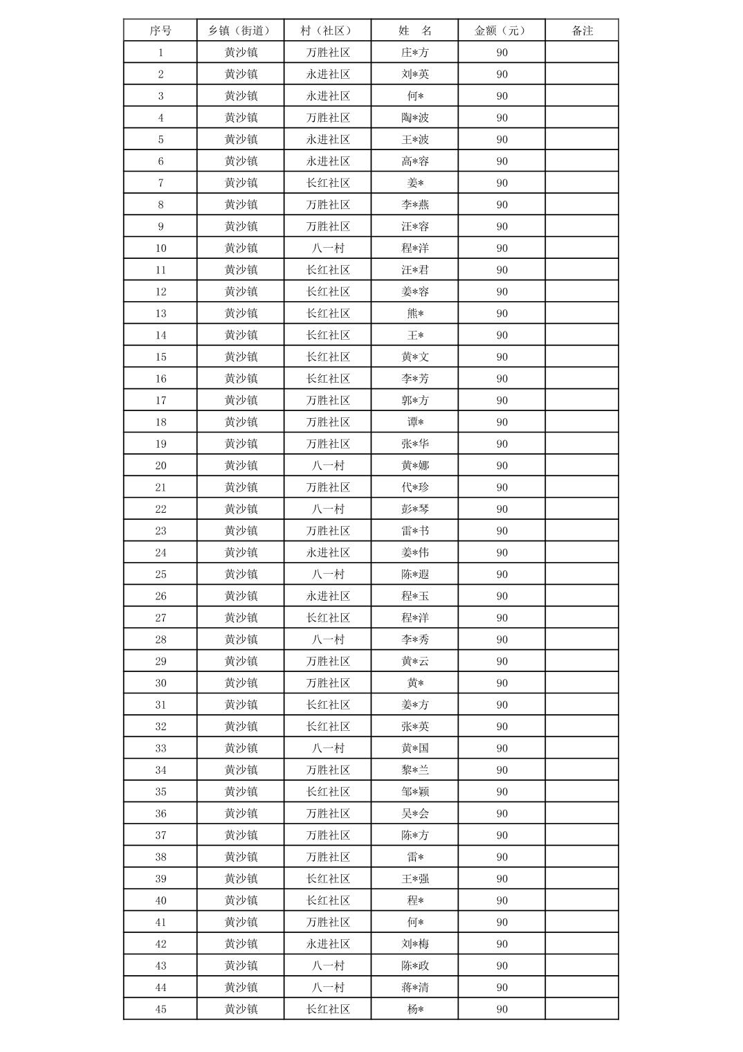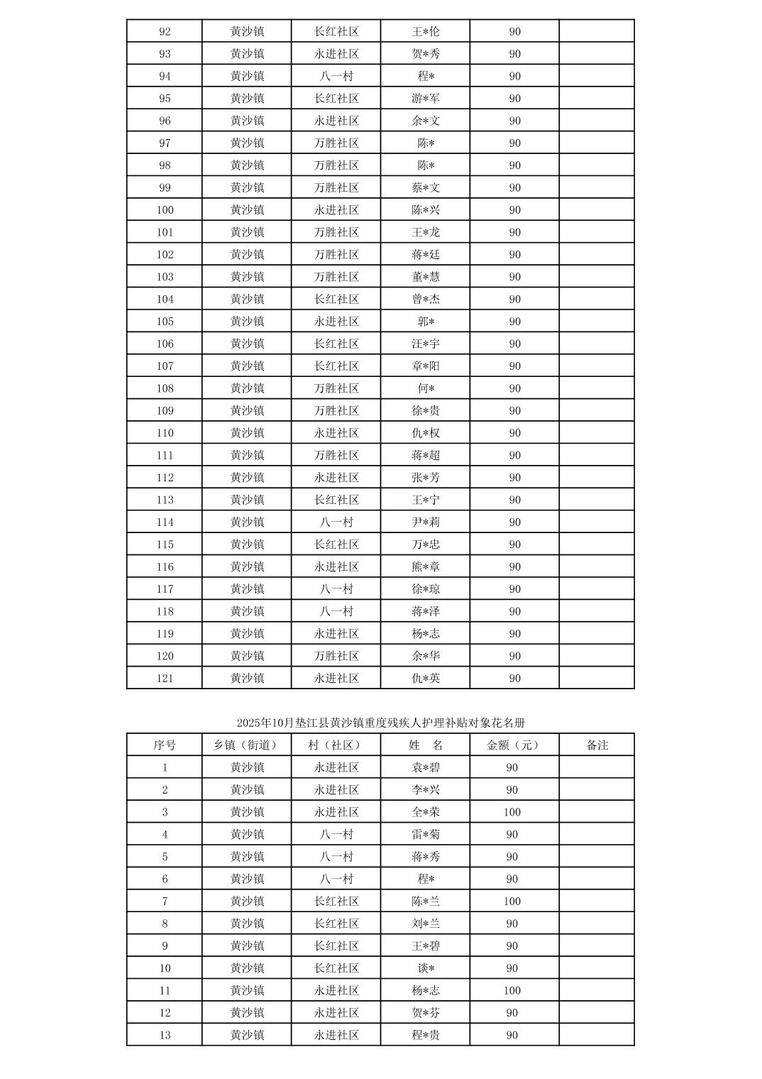 垫江县黄沙镇2025年10月贫困残疾人补贴信息公示