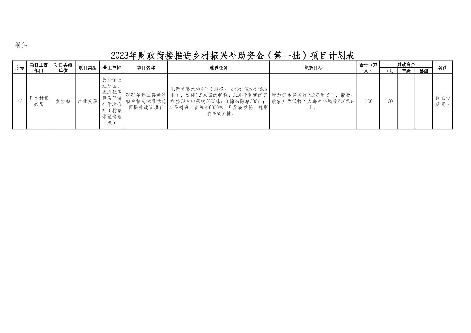 2023年财政衔接推进乡村振兴补助资金(第一批)项目计划表