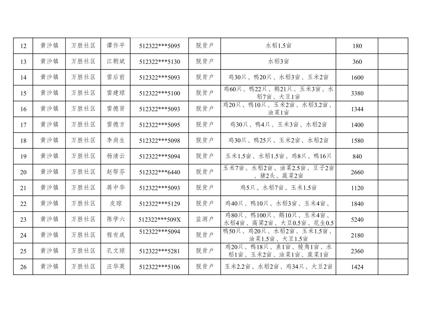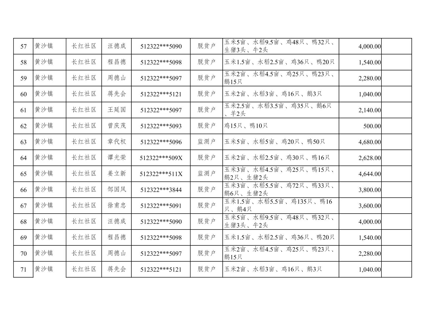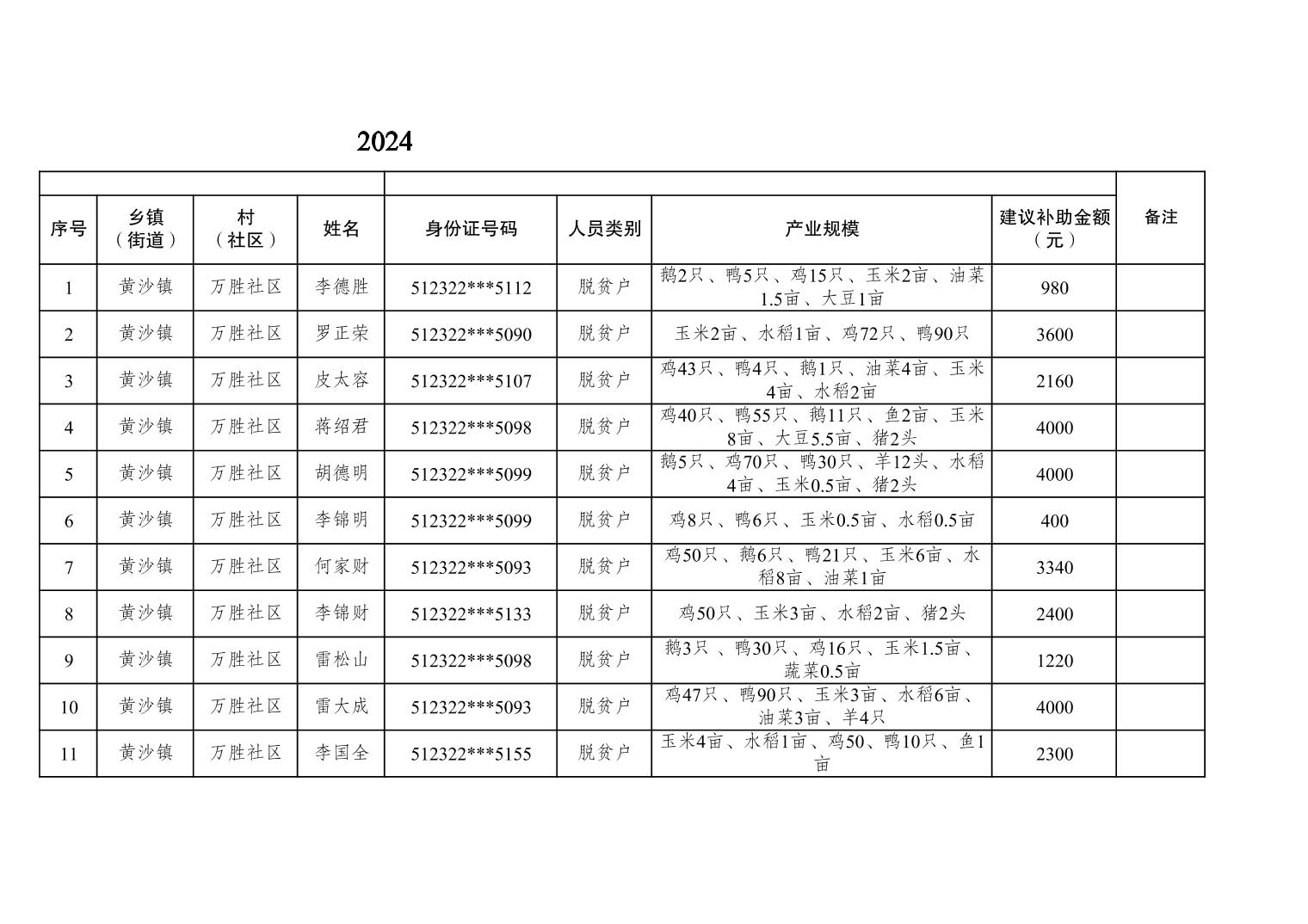 黄沙镇2024年产业到户扶持奖补项目资金发放表
