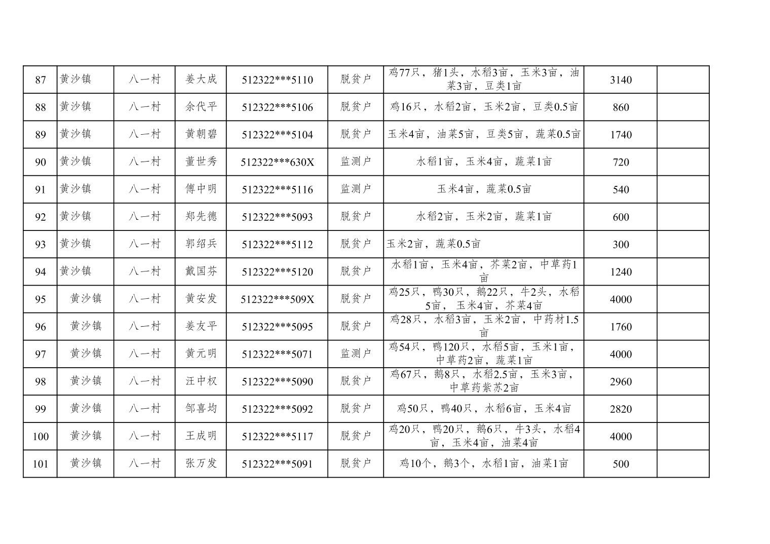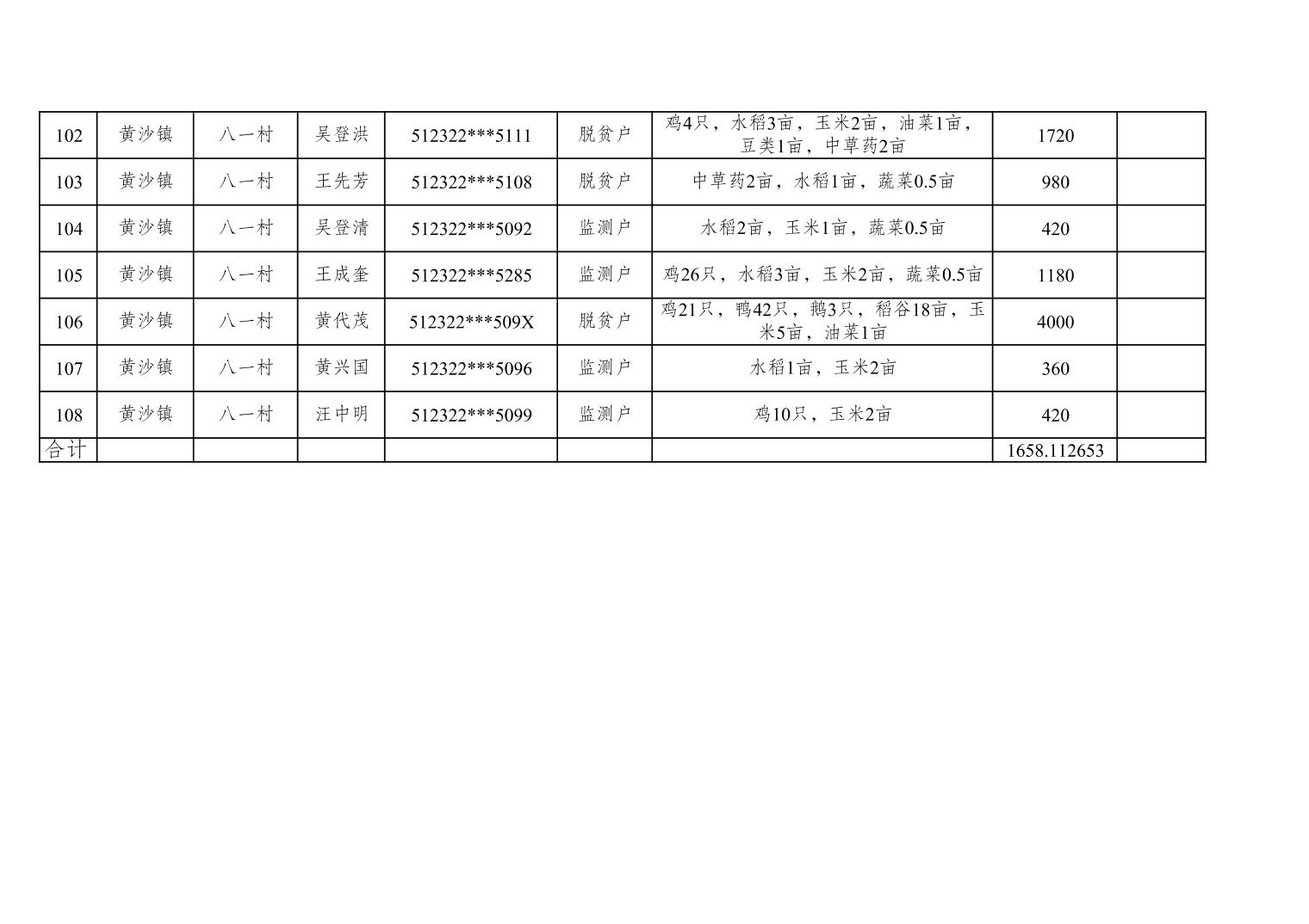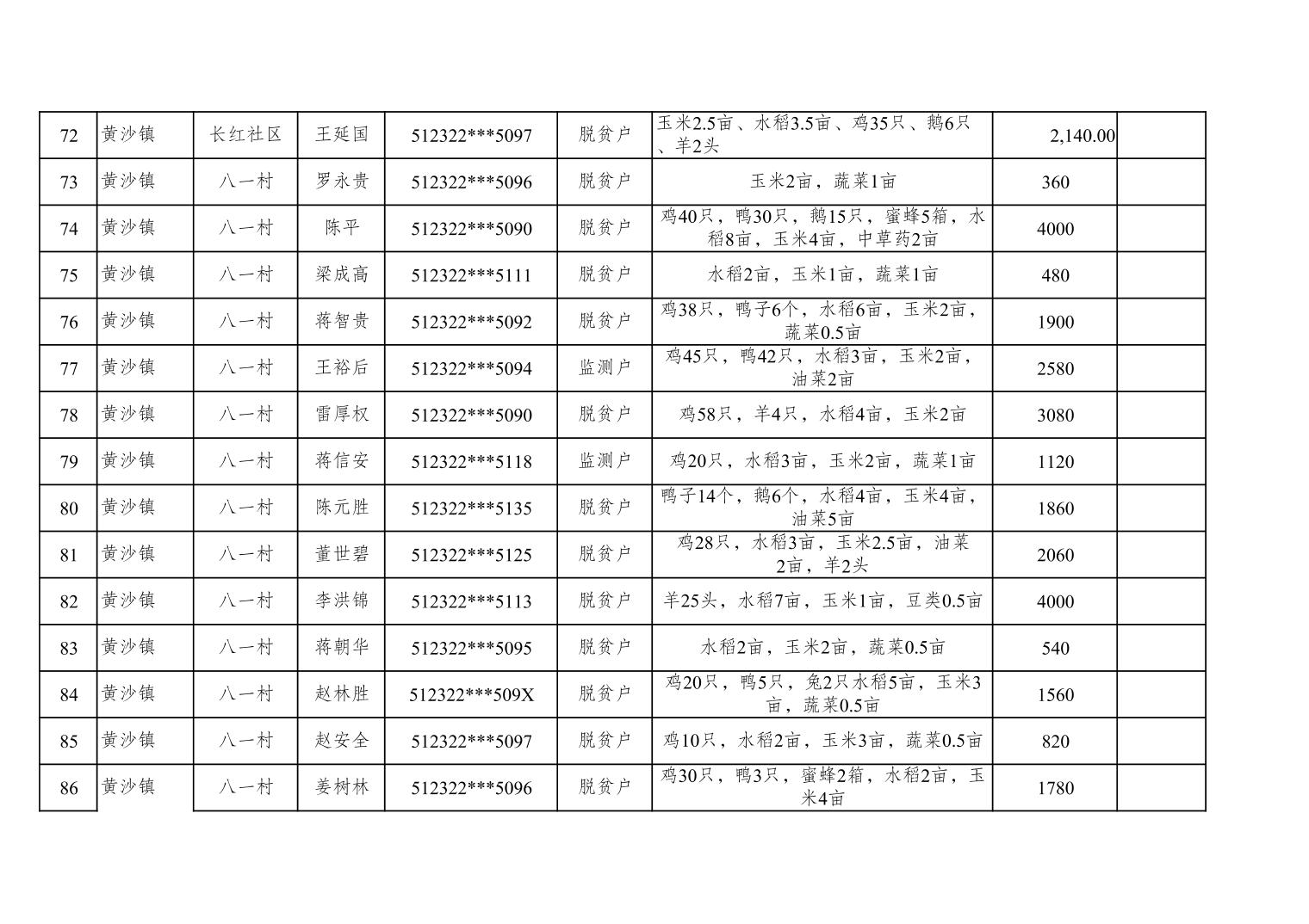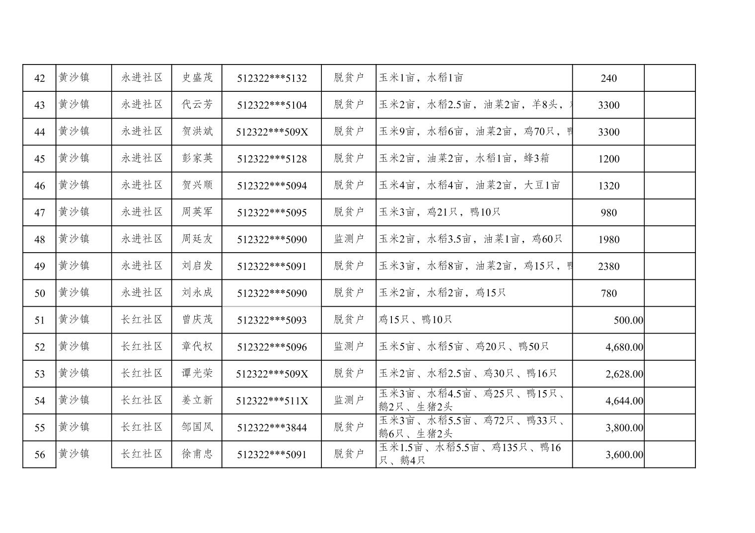 黄沙镇2024年产业到户扶持奖补项目资金发放表