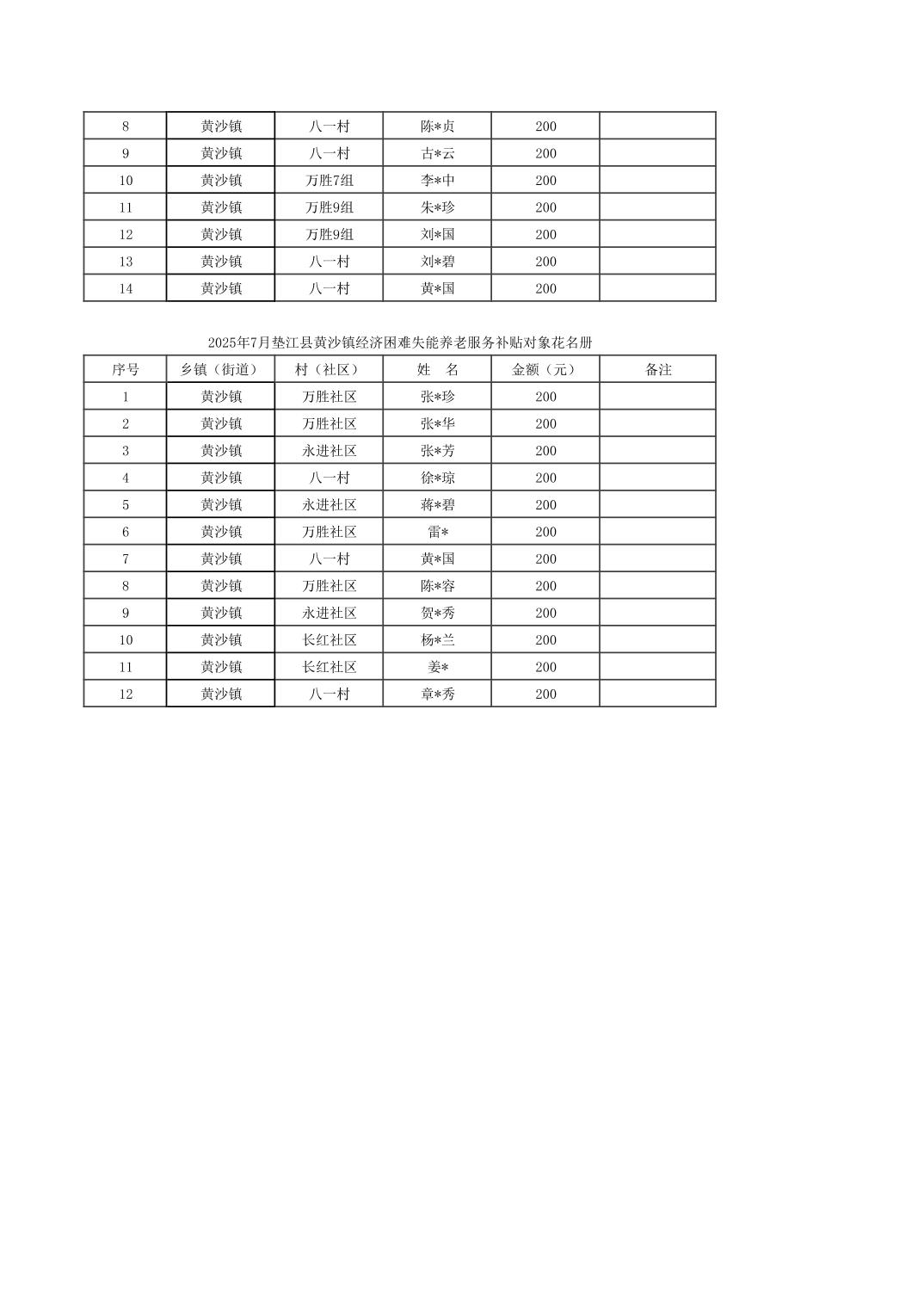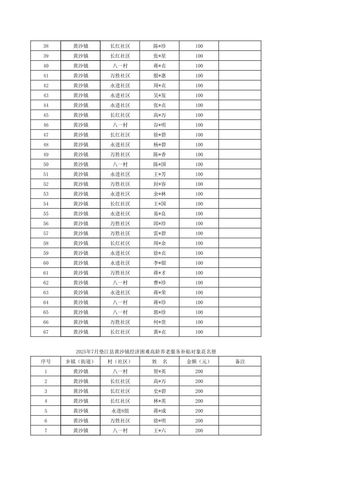 2025年7月黄沙镇高龄三项补贴对象公示.pdf2025年7月黄沙镇高龄三项补贴对象公示.xlsx