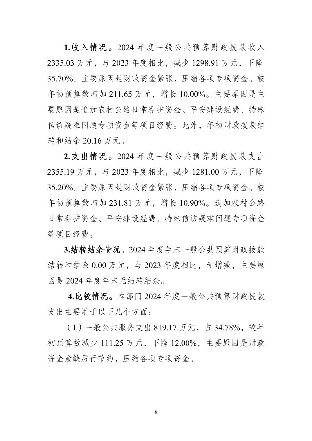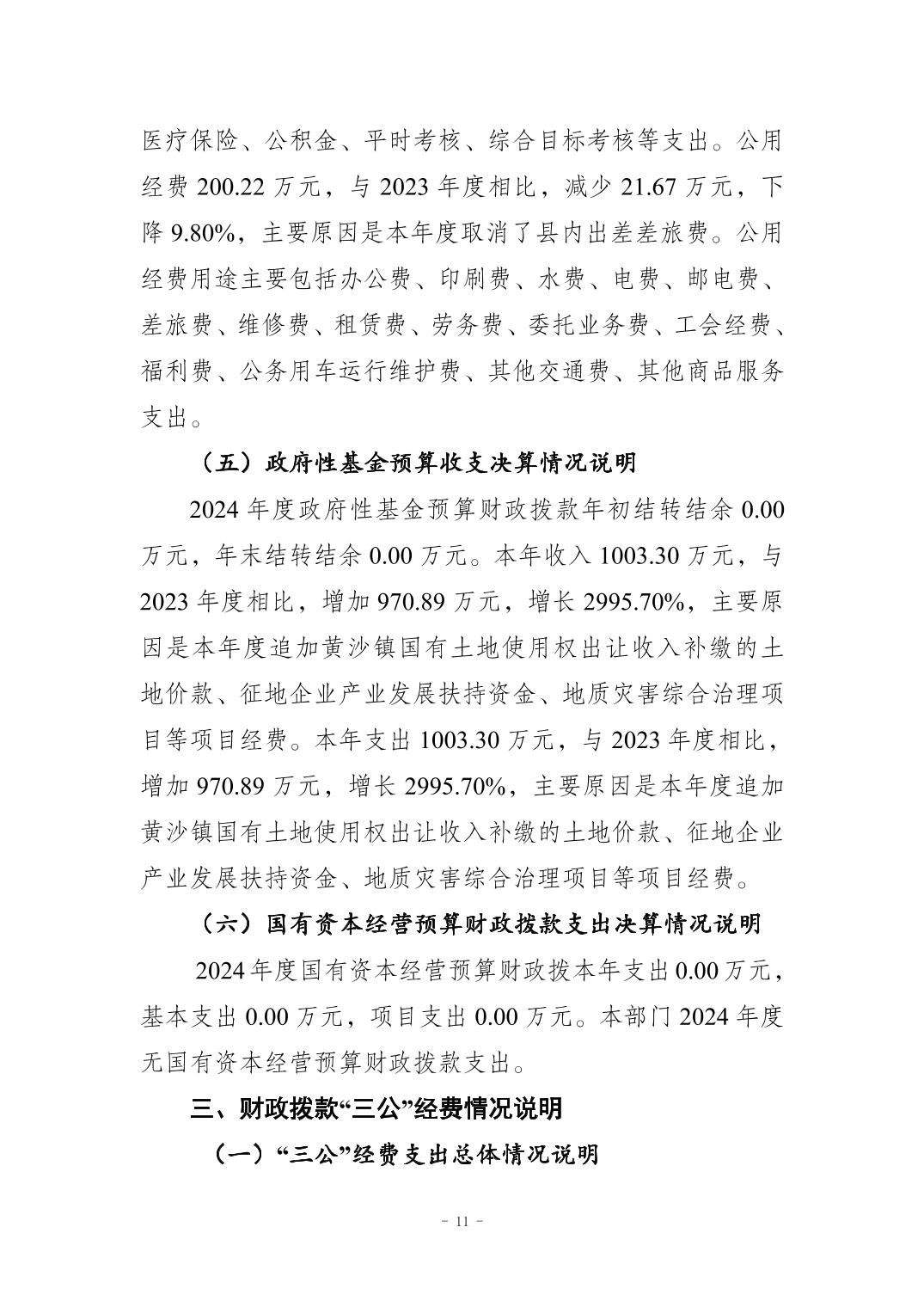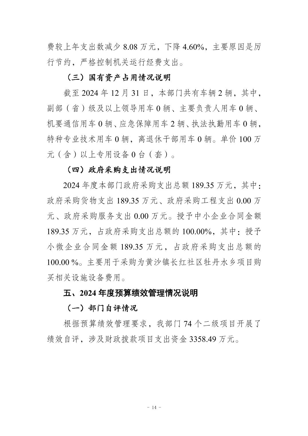 垫江县黄沙镇人民政府2024年度决算公开说明