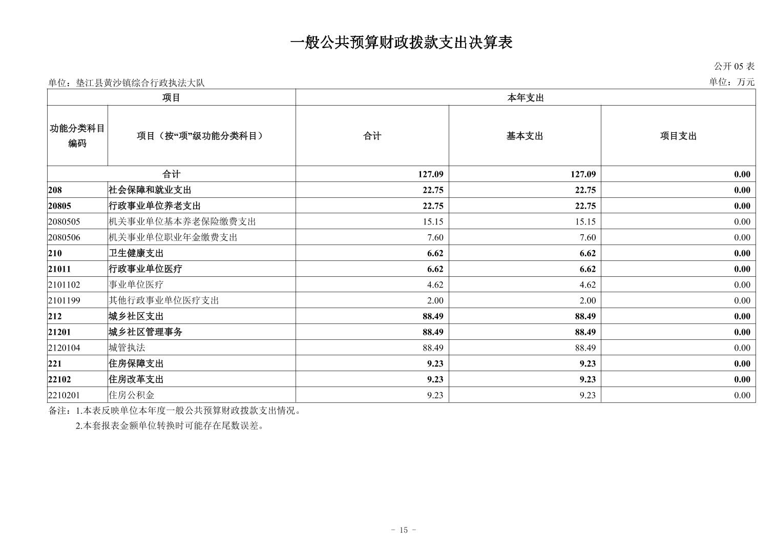垫江县黄沙镇综合行政执法大队2024年度决算公开说明