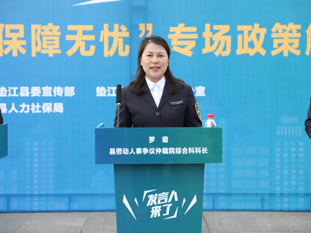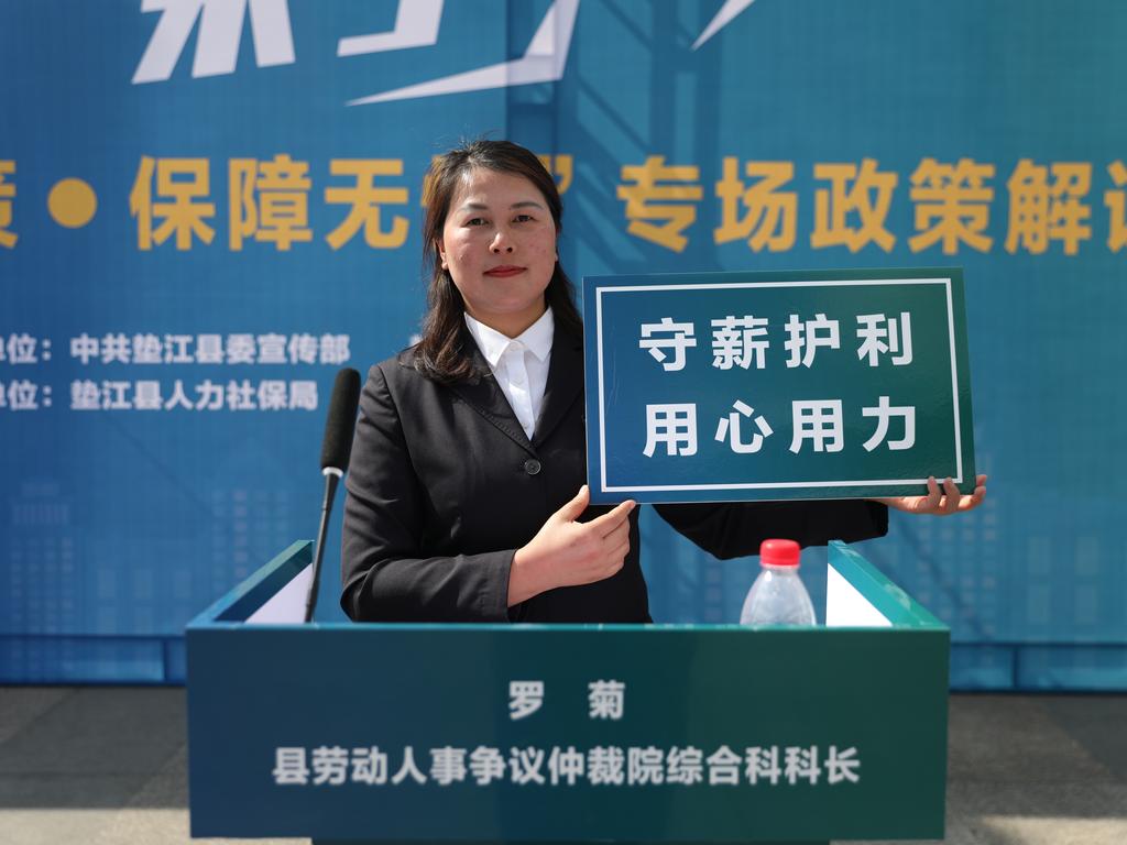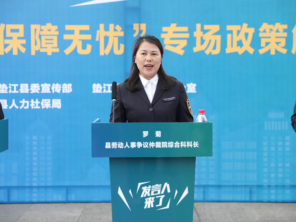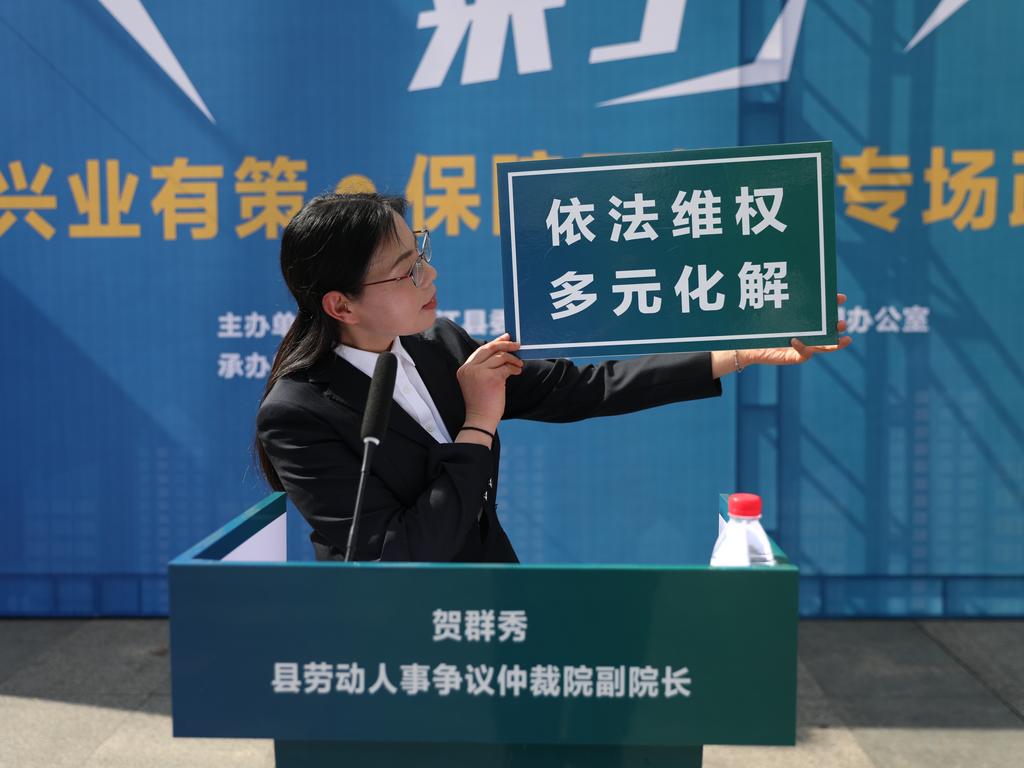 县劳动人事争议仲裁院综合科科长 罗 菊:在座的各位朋友,大家好!我是县劳动人事争议仲裁院罗菊。我们的工作职责主要是开展劳动保障监察行政执法,着力规范企业用工秩序,维护劳动者合法权益,用心、用情、用力守护好劳动者的“钱袋子”。谢谢大家!