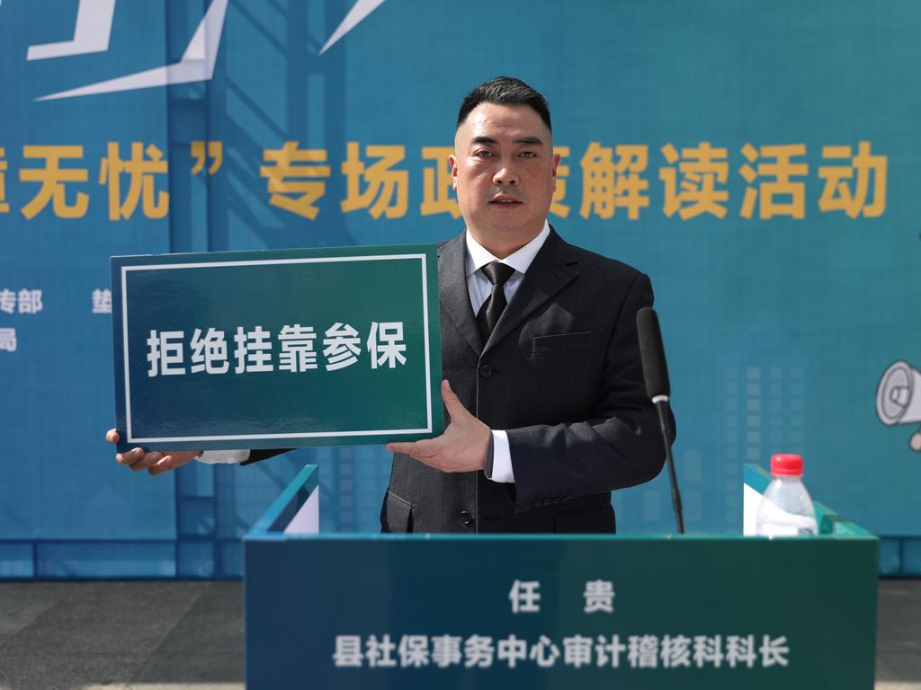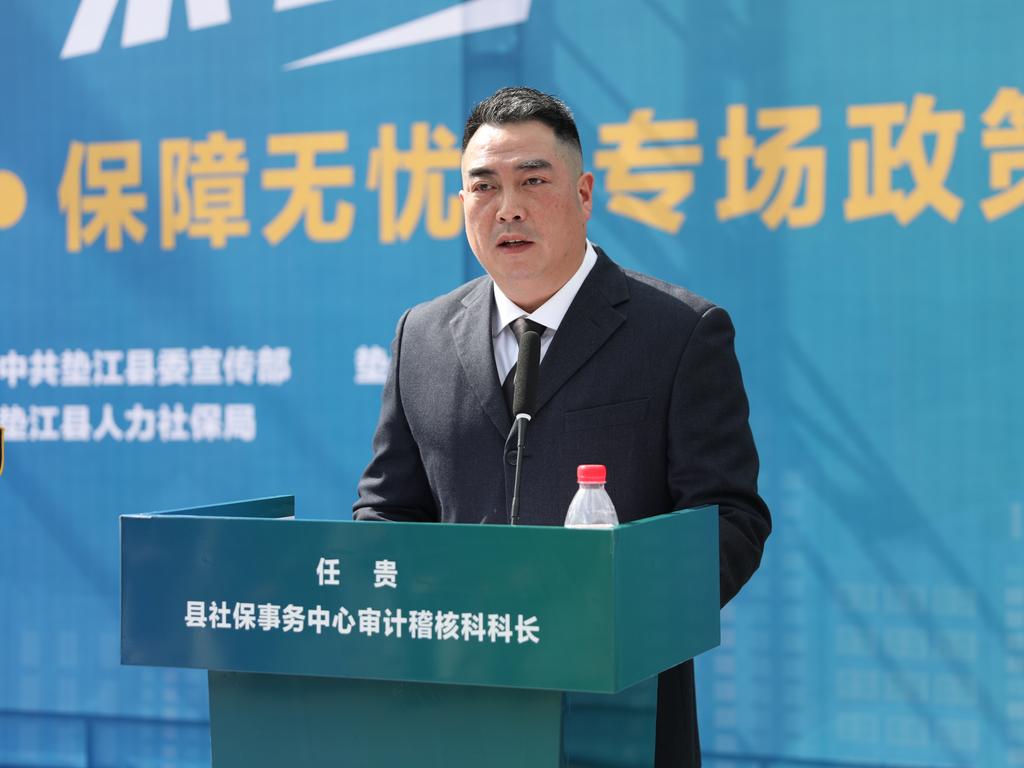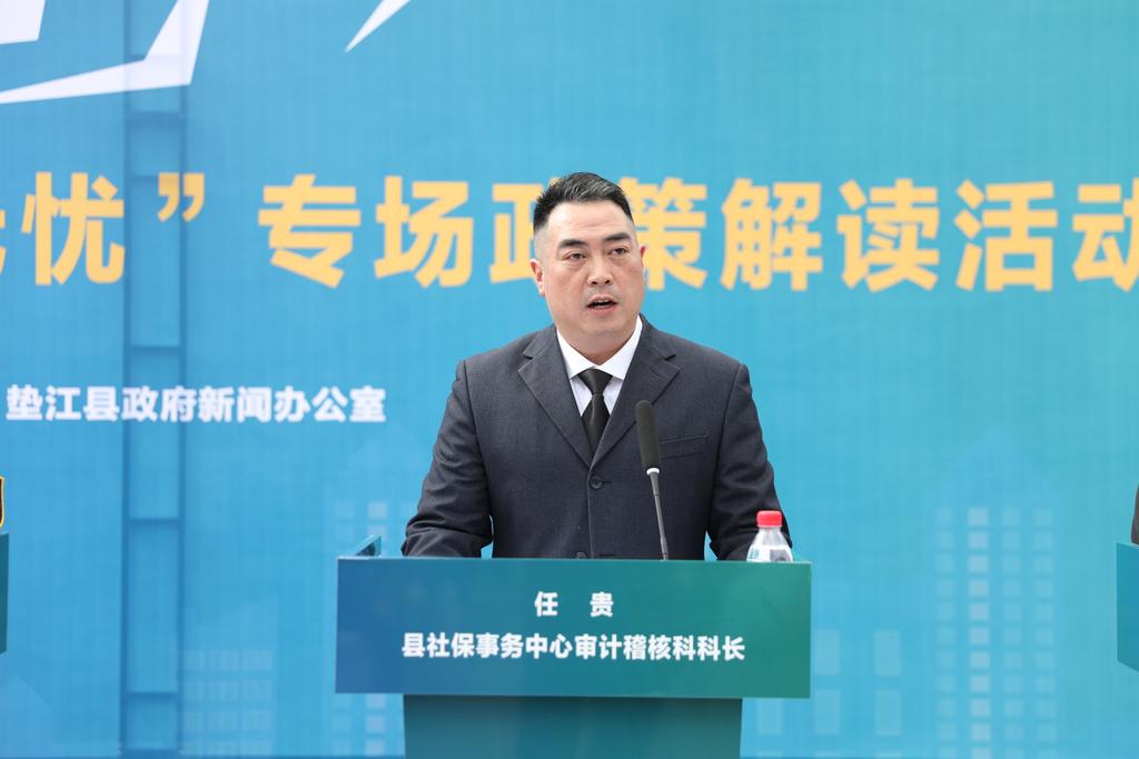 县社会保险事务中心审计稽核科科长 任贵:“社保进万家,幸福你我他!”各位媒体朋友、父老乡亲,大家好!我是垫江县社会保险事务中心审计稽核科科长任贵,很高兴来到这里,与大家面对面沟通交流。我们科室主要承担全县养老待遇领取资格核查、违规问题查处、基金风险防控等工作,简单来说,就是当好全县养老、工伤基金的“监督员”“守门人”,守护好大家的养老钱、救命钱。谢谢大家!