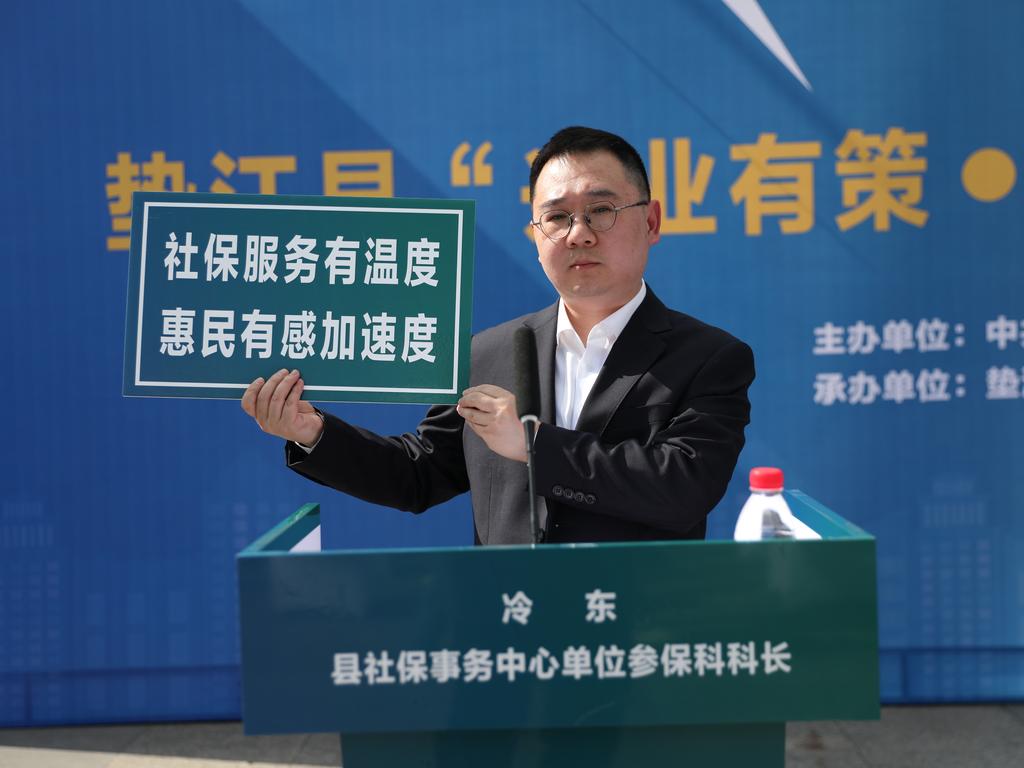 县社会保险事务中心单位参保科科长 冷东:在座的各位朋友,大家好!我是县社会保险事务中心单位参保科冷东。我们的工作是为用人单位及其录用的员工办理社会保险参保登记,也是为广大参保职工开启社会保险权益的起点。记录一生、保障一生、服务一生既是我们的工作宣言,也是我们的工作宗旨。谢谢大家!