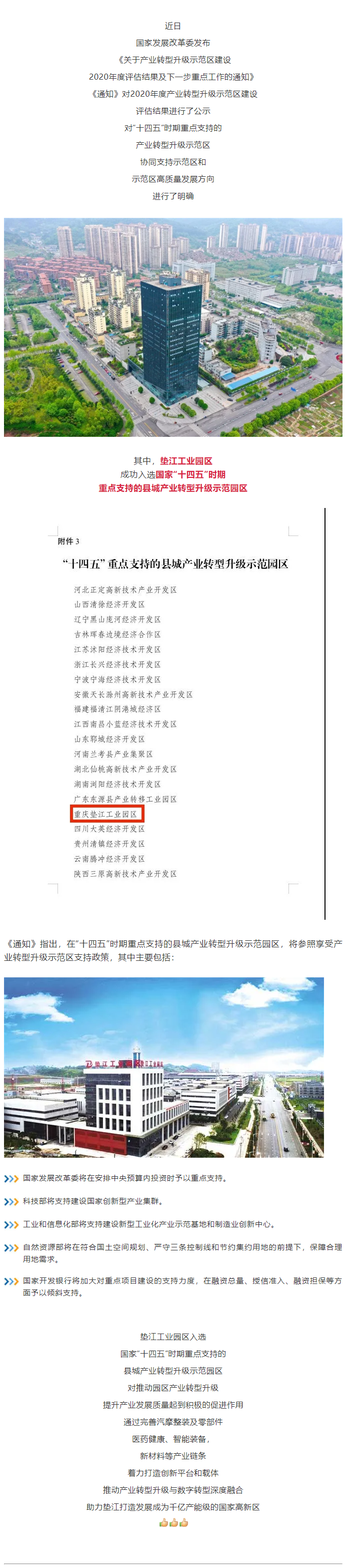 垫江工业园区成功入选! 国家“十四五”时期重点支持的县城产业转型升级示范园区名单发布!
